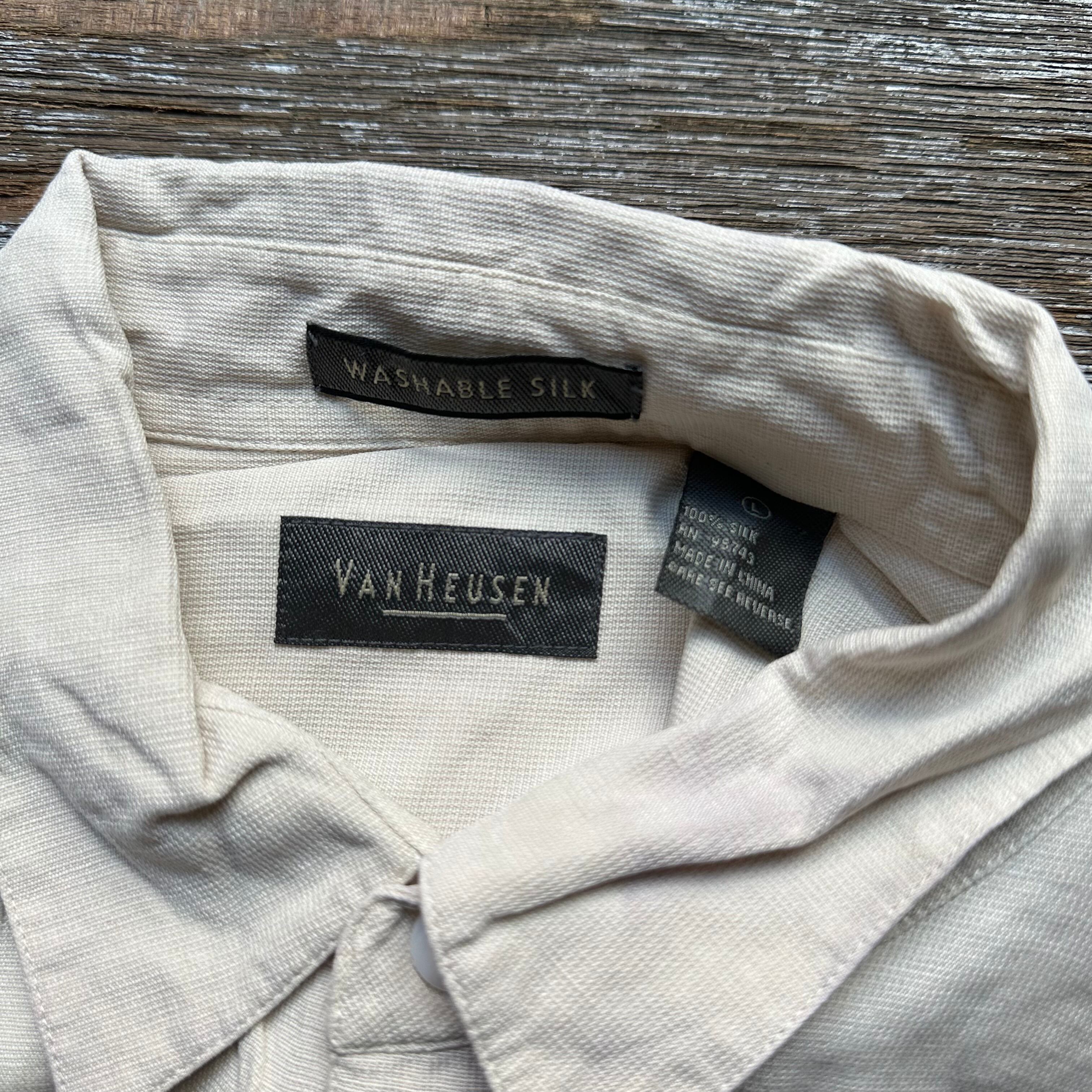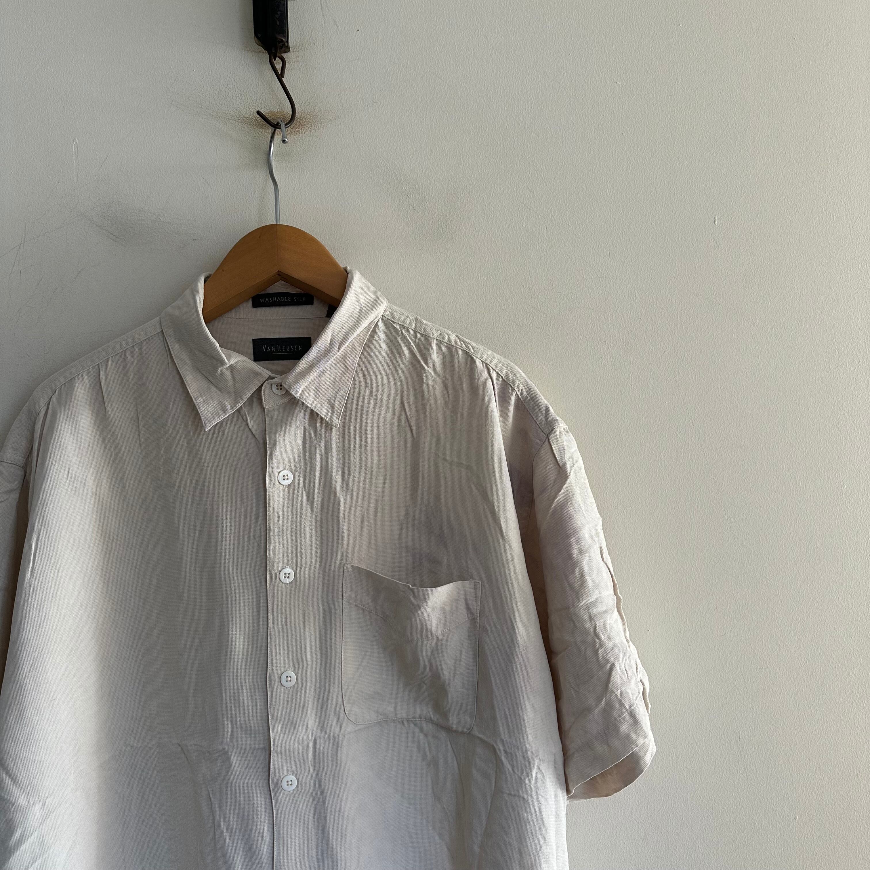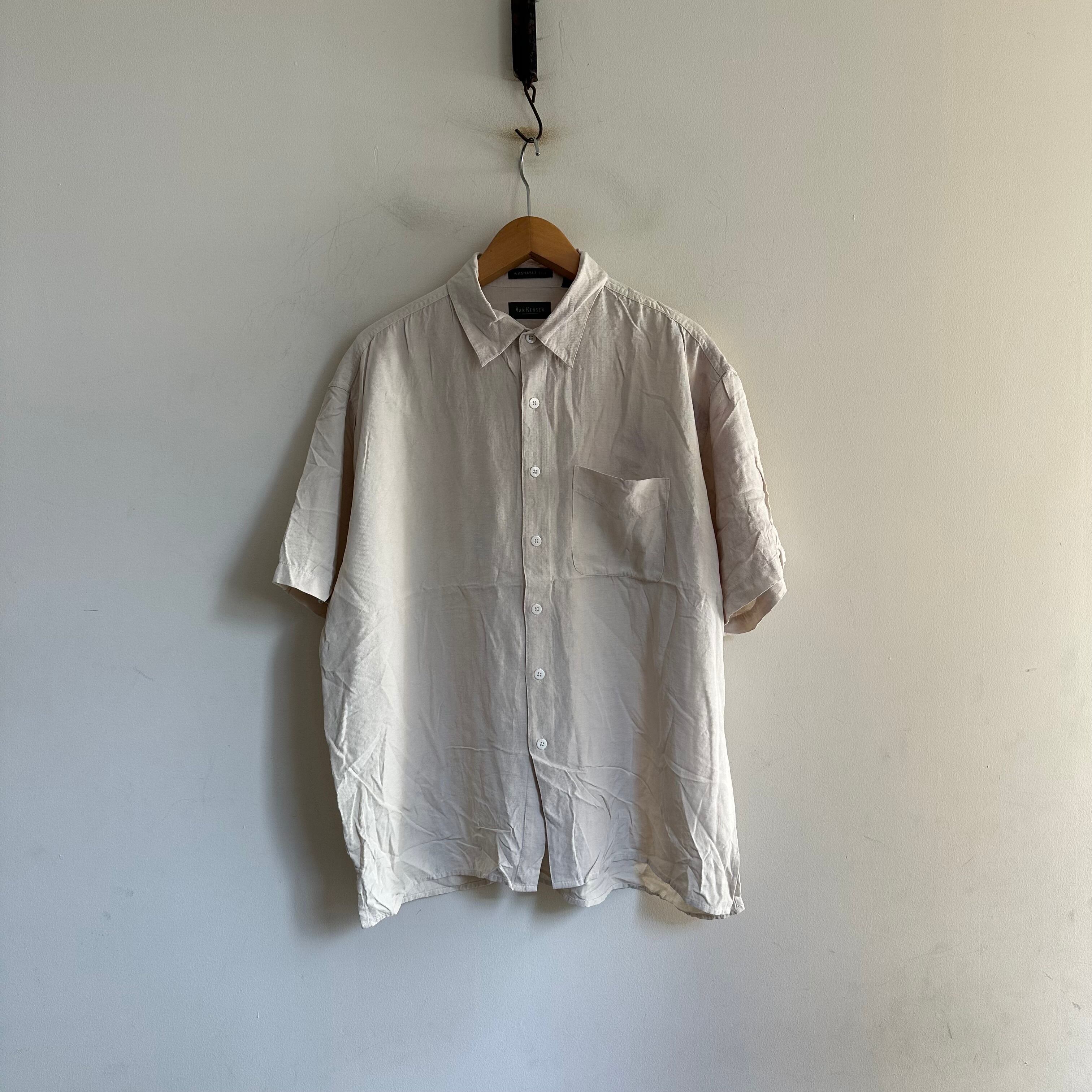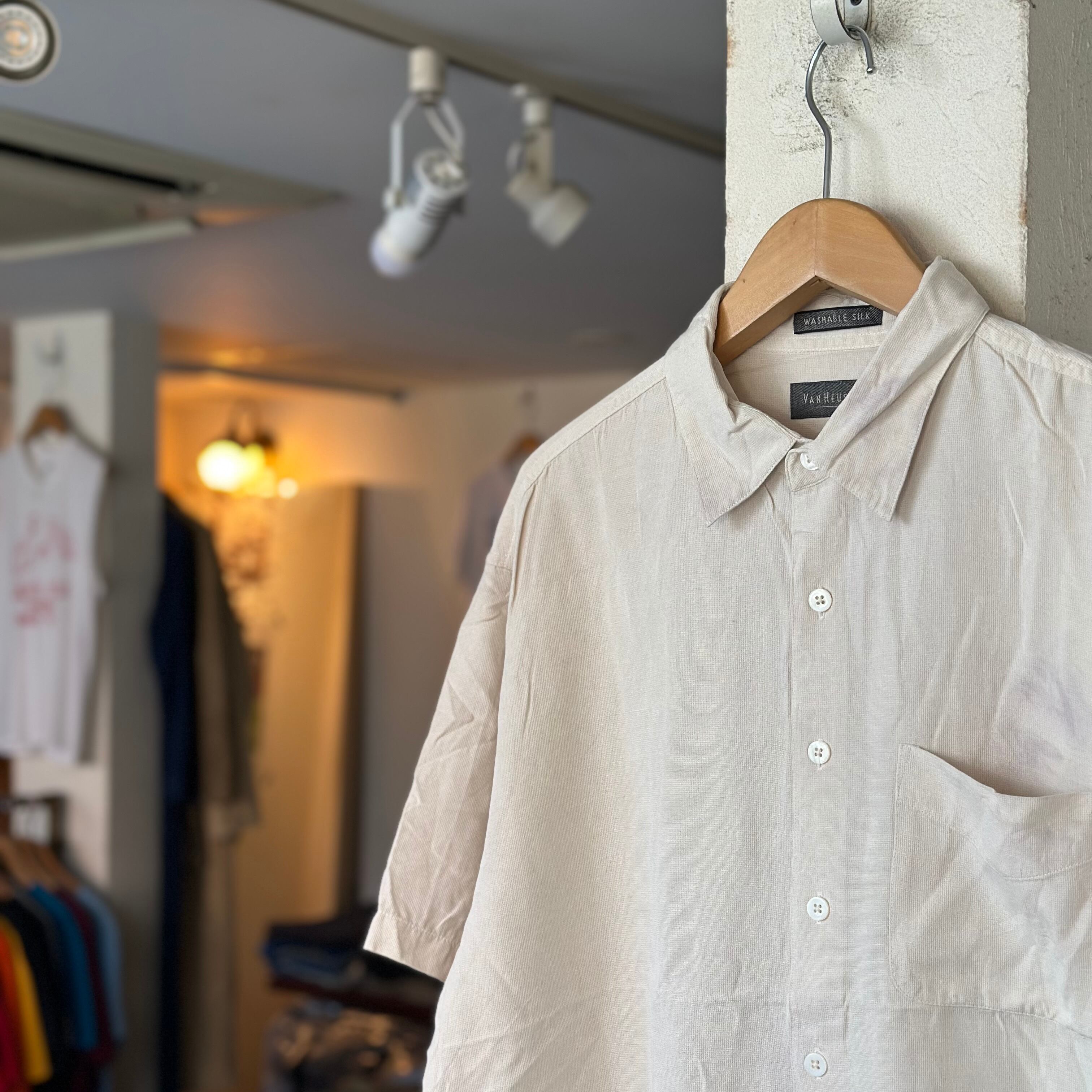 半袖シャツです。silk100%生地。白生成り。若干の色染み有りのコンディションですが、形も良いですよ。お好きな方、いかがでしょうか。