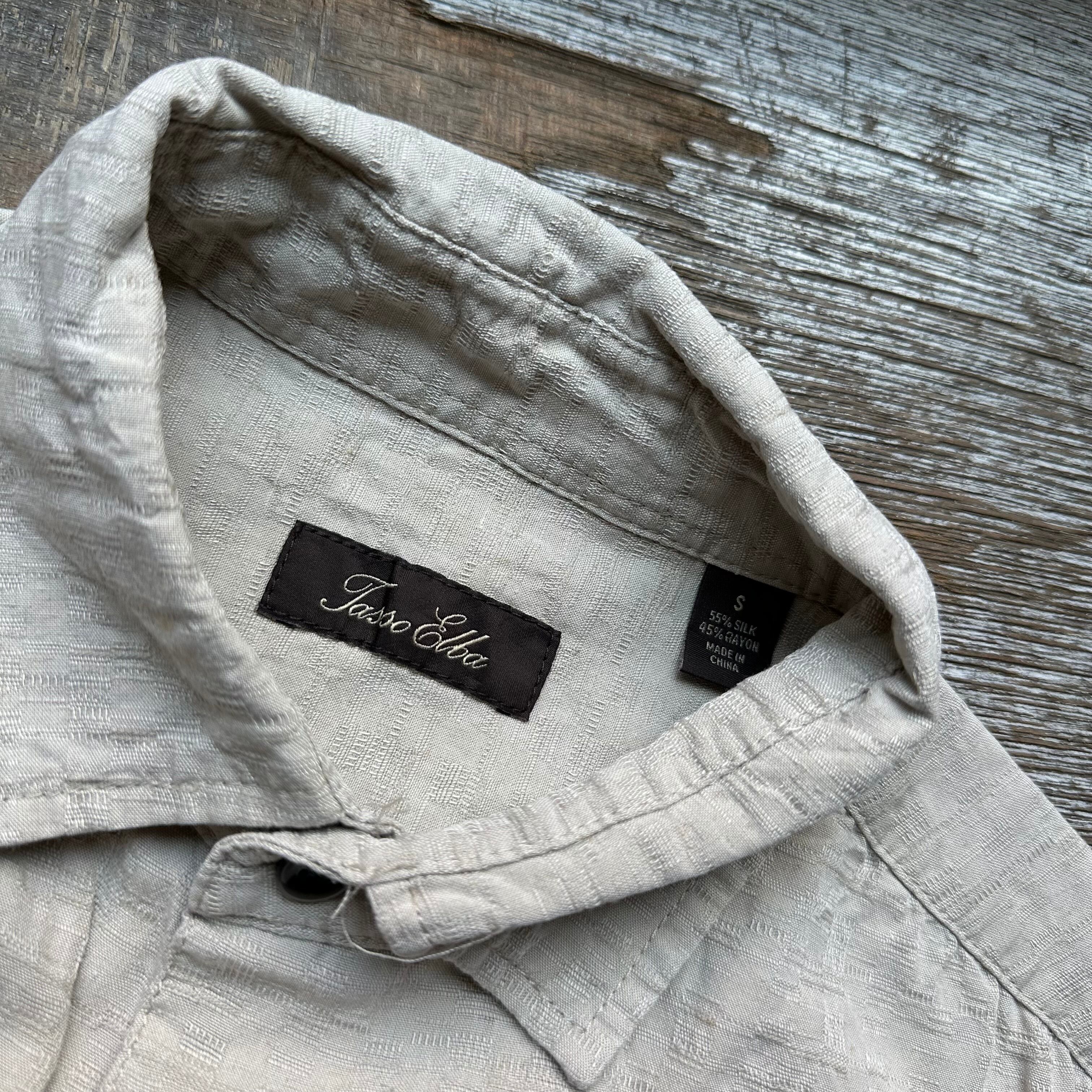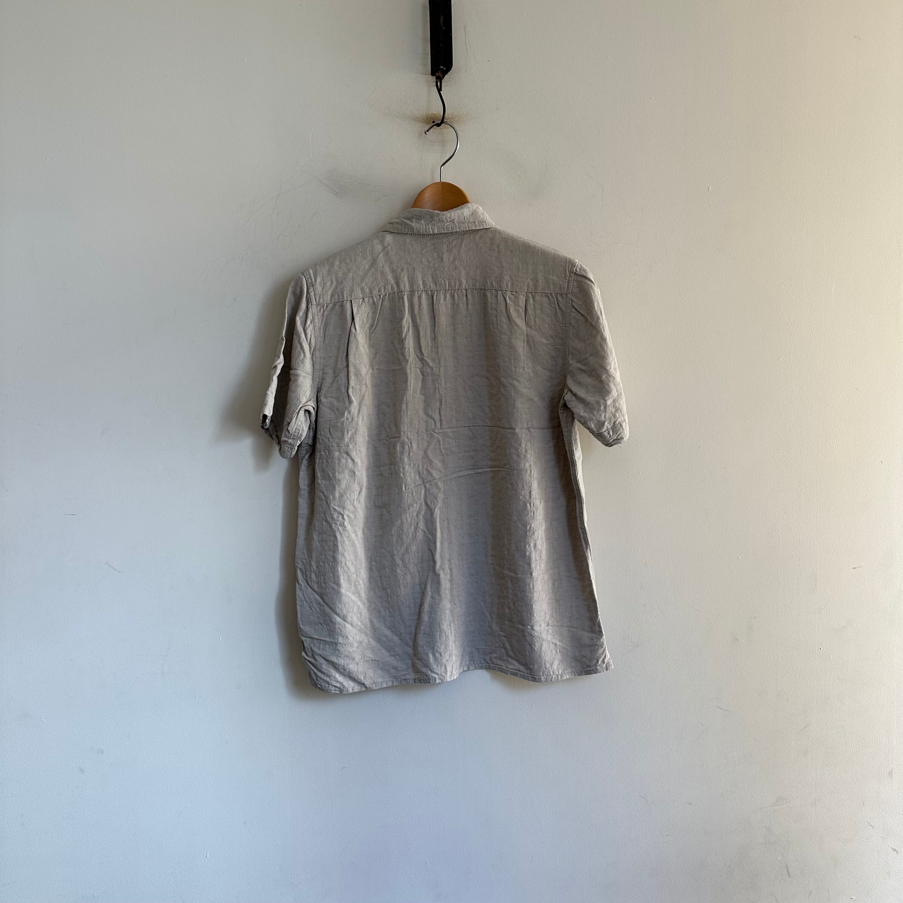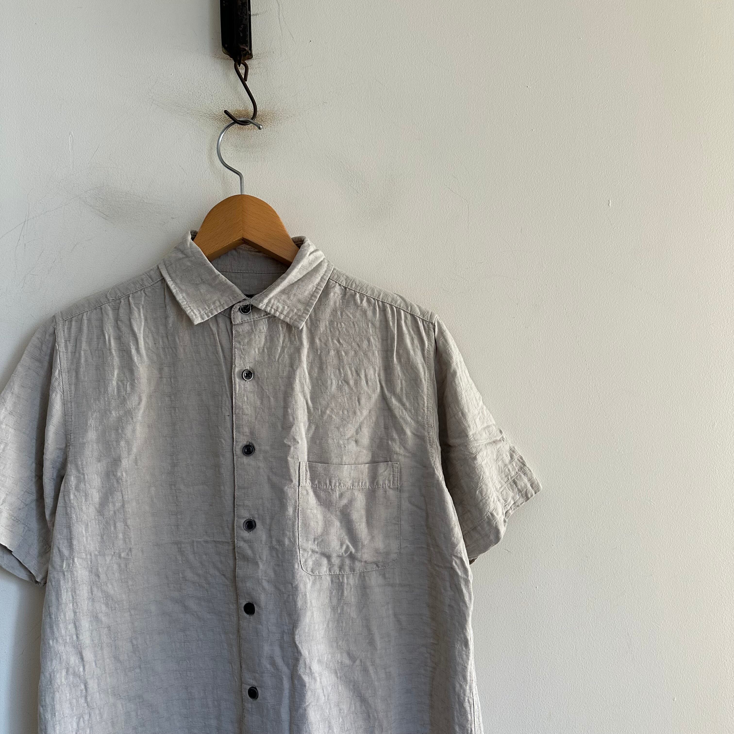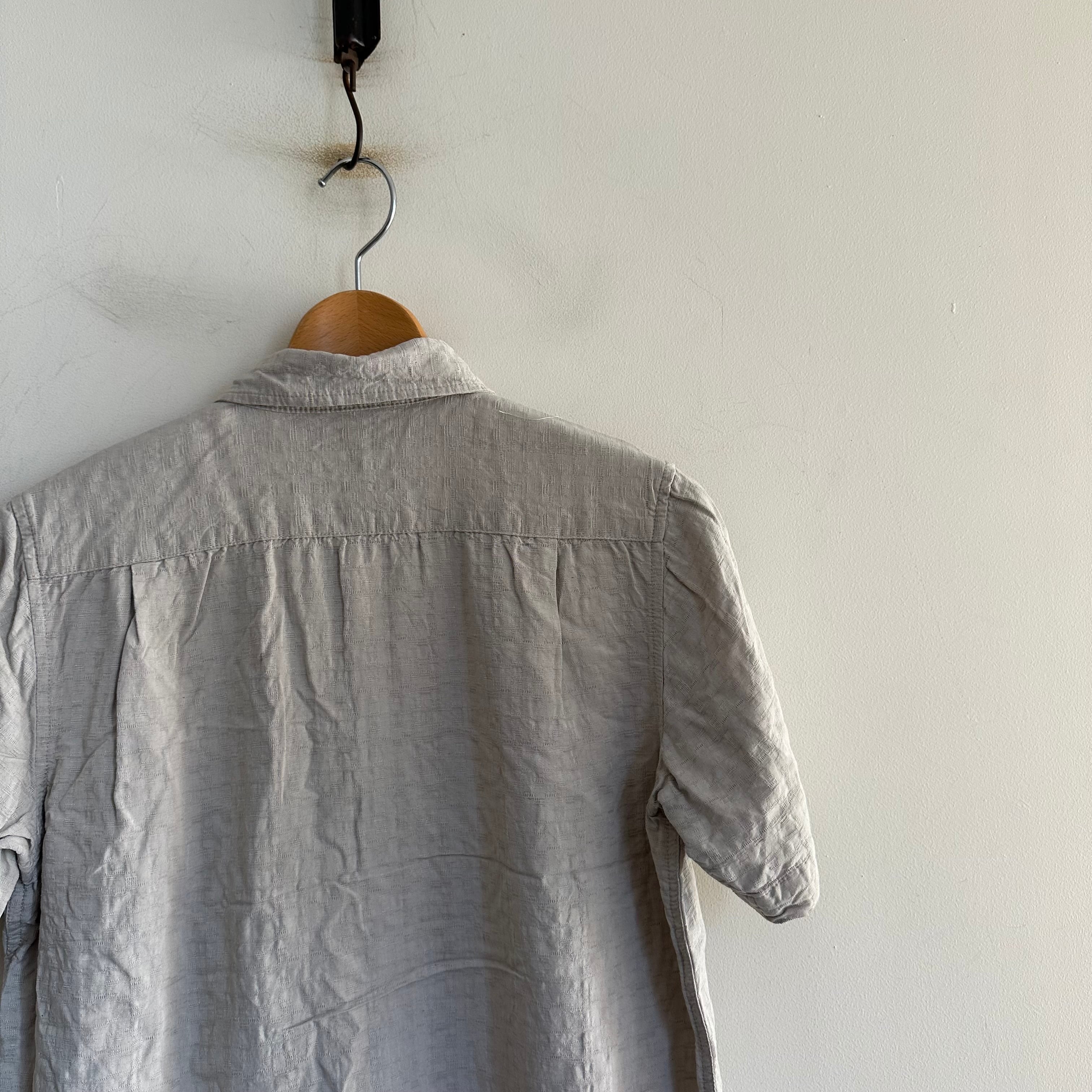 半袖シャツです。silkとrayonのmix生地。アイボリーのような良いトーンです。サイズ小さめお探しの方、お好きな方、いかがでしょうか。