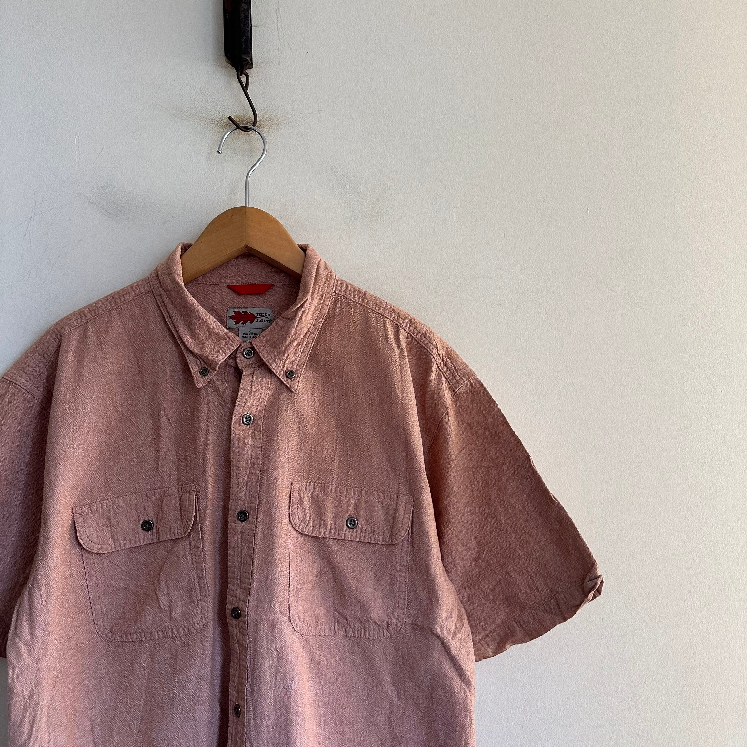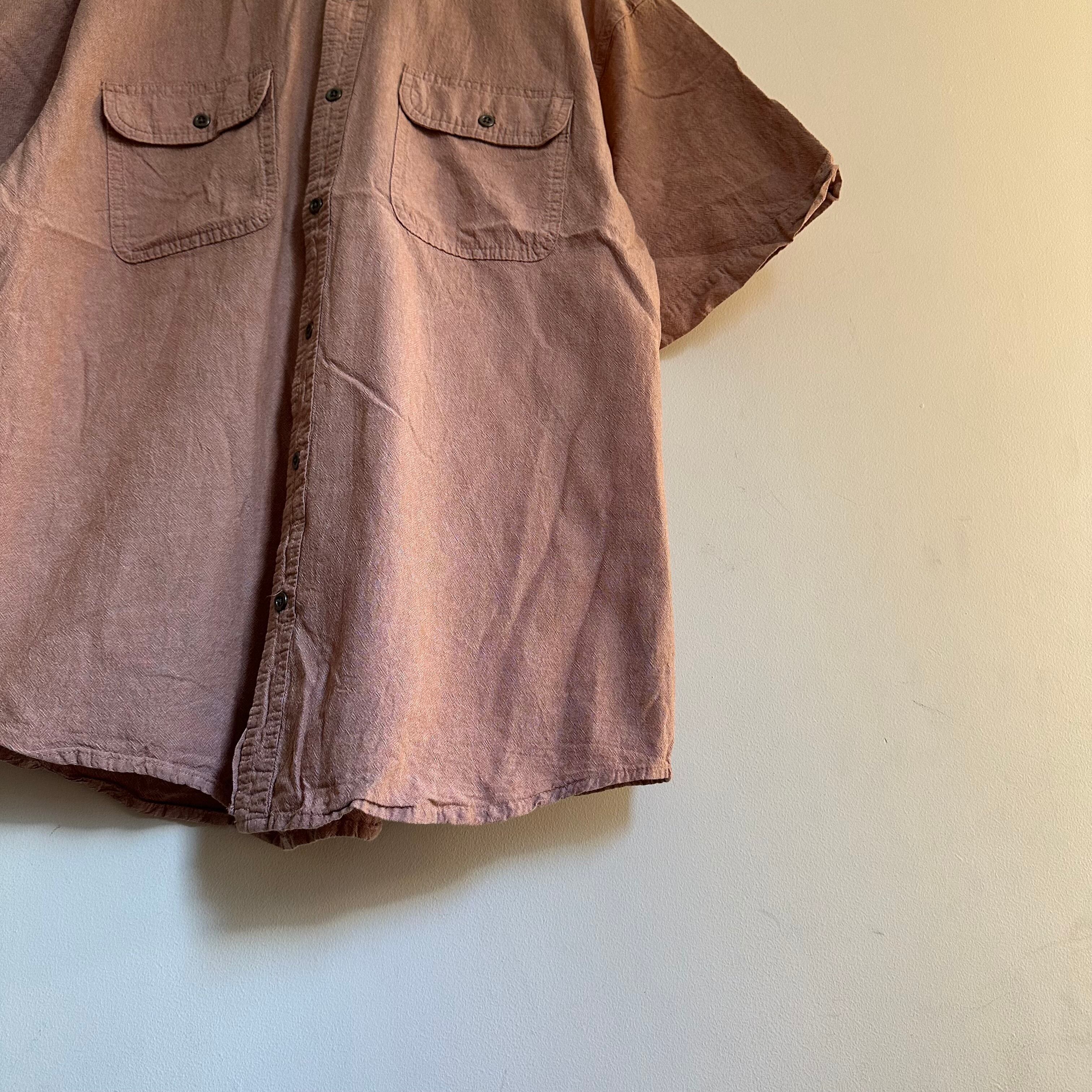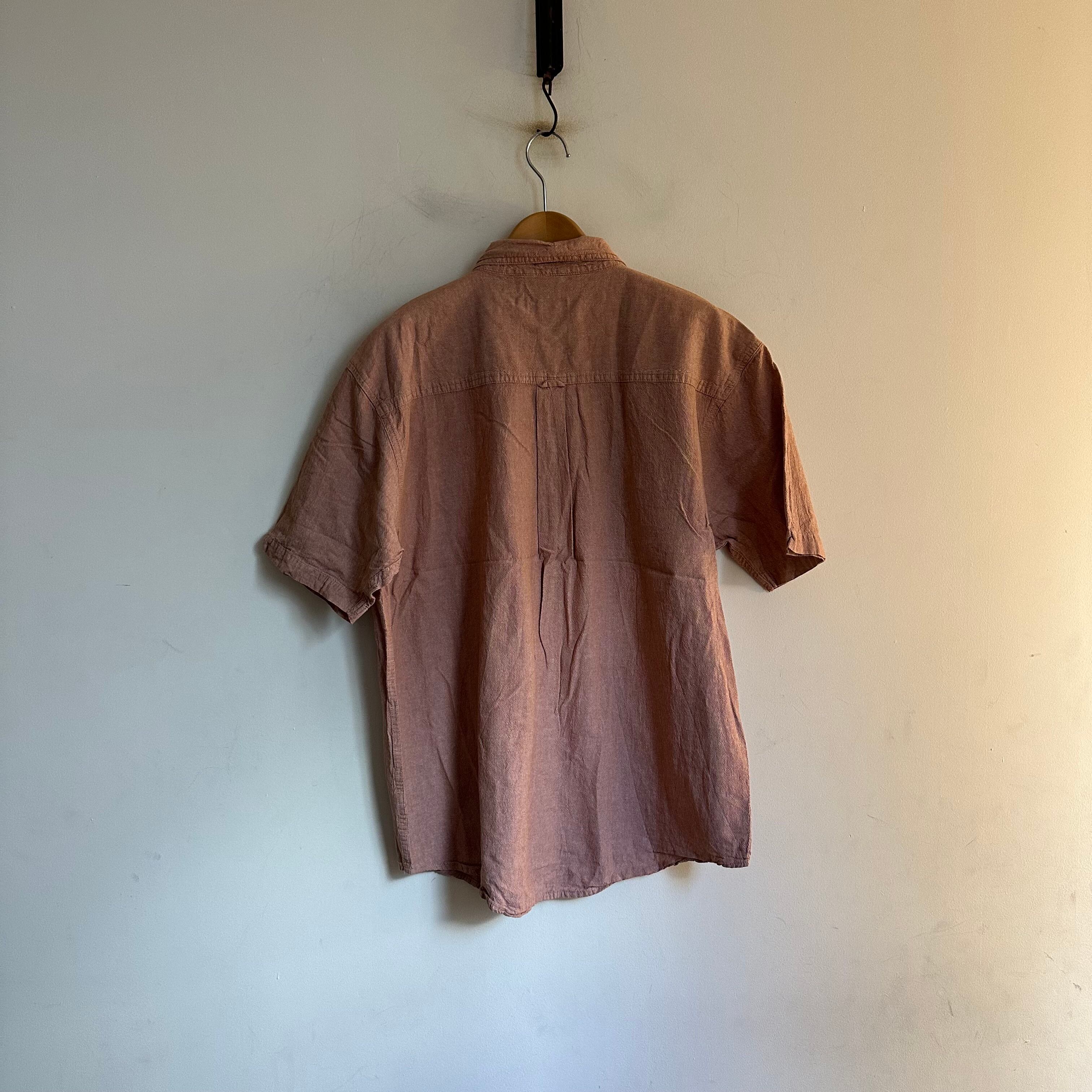 半袖シャツです。薄手でパサっとしたcotton100%生地。凹凸感のある細かい織りにメタルボタン。良いですね。お好きな方、いかがでしょうか。