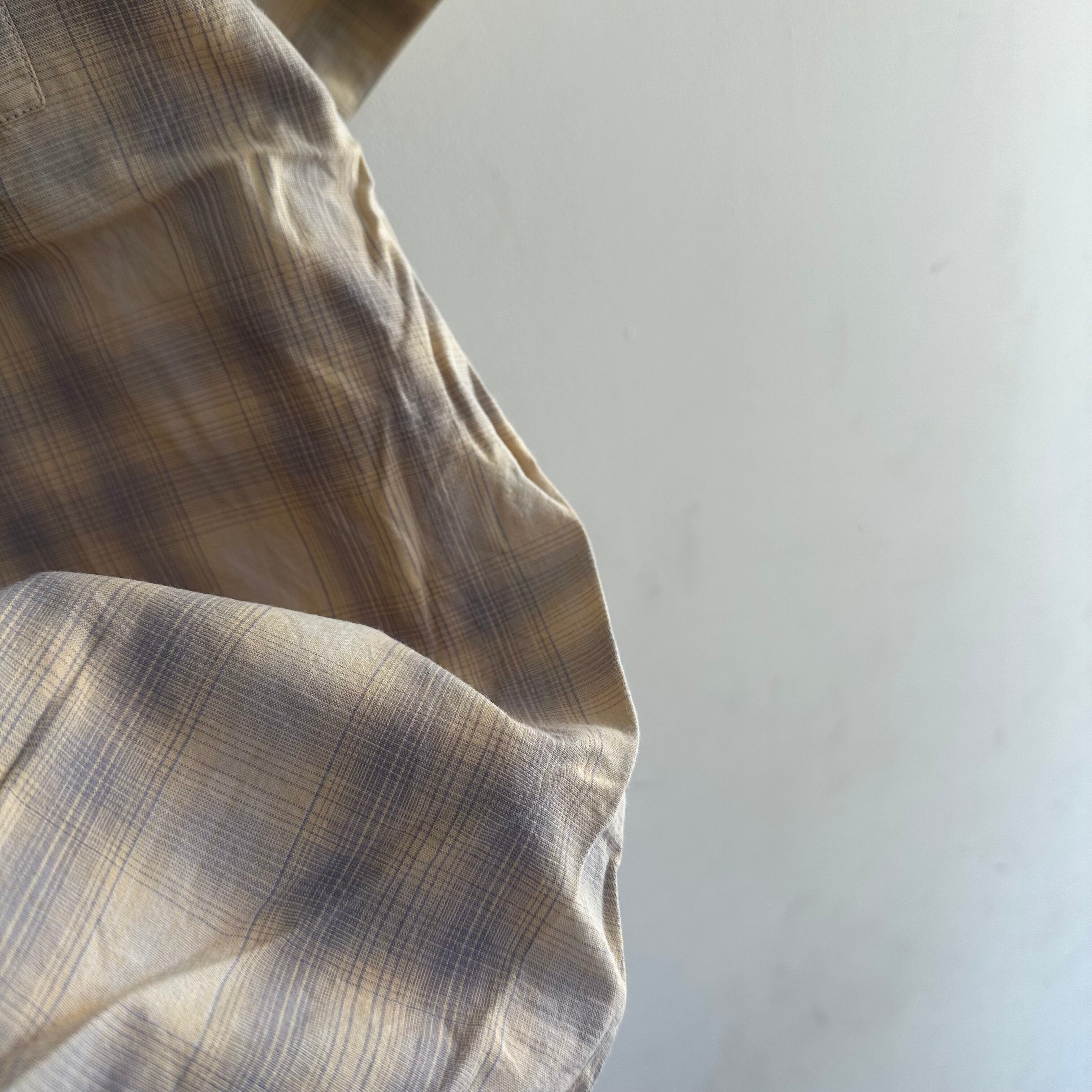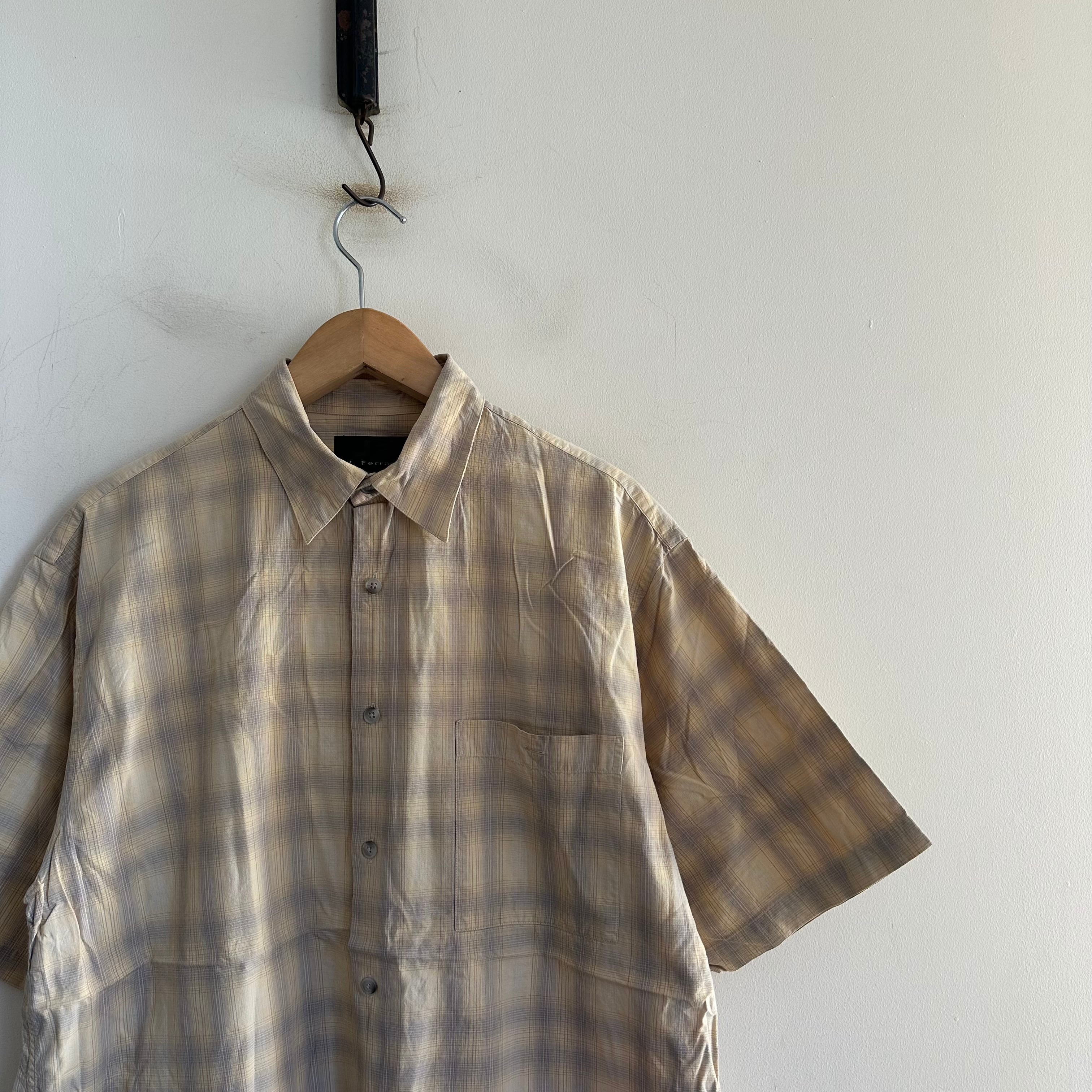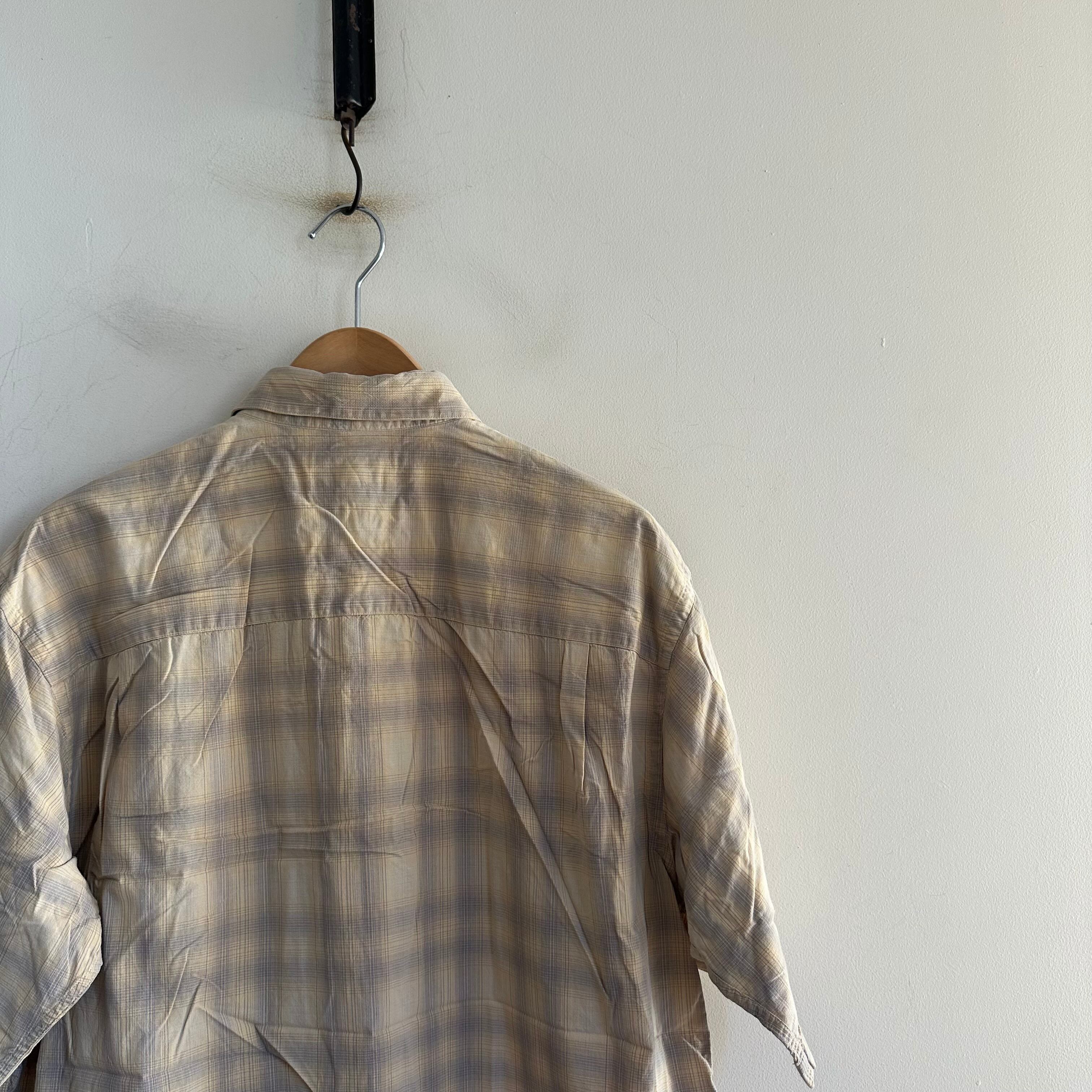 半袖シャツです。薄手のcotton100%生地。イエローベースのシャドーがかったチェック。カッコいいですね。お好きな方、いかがでしょうか。