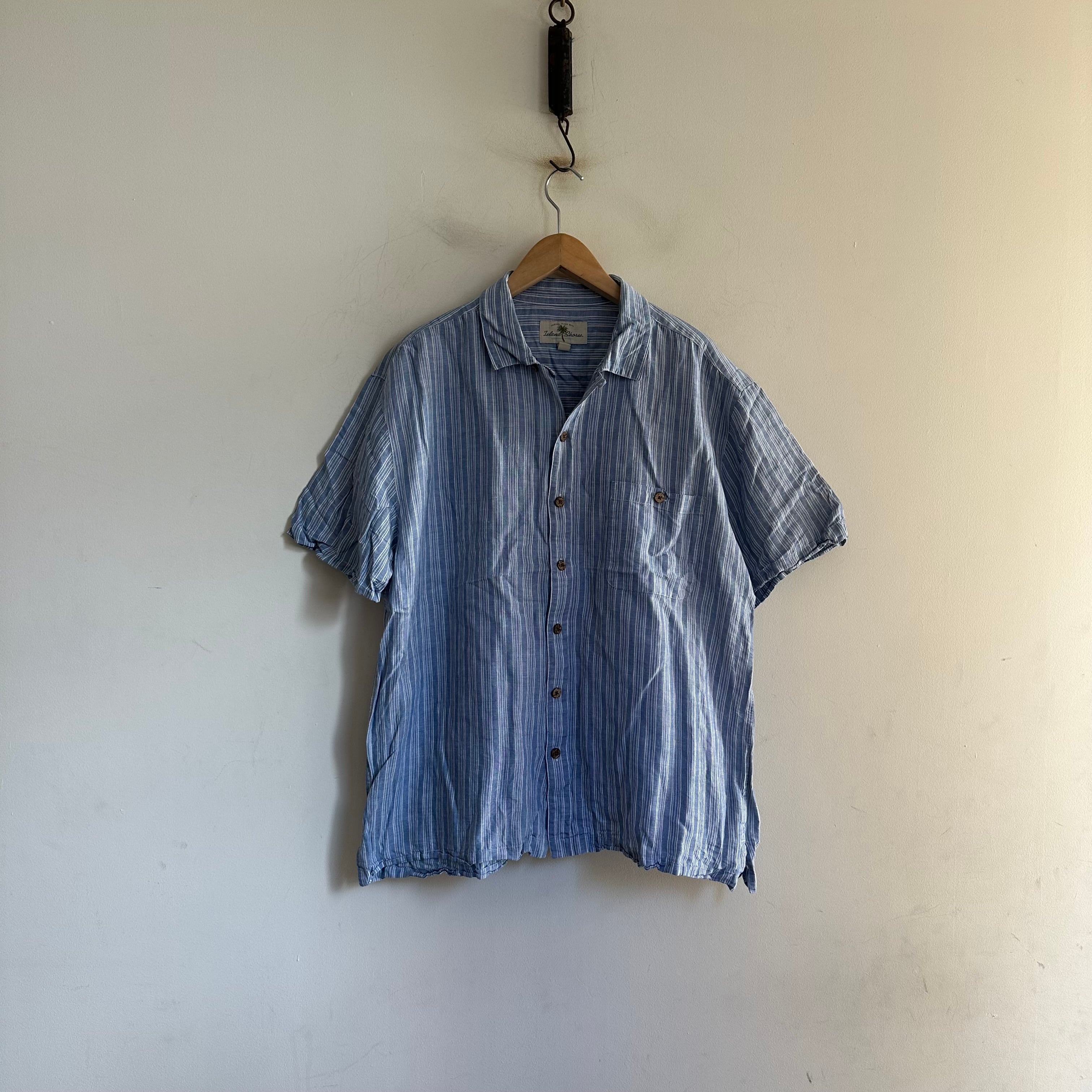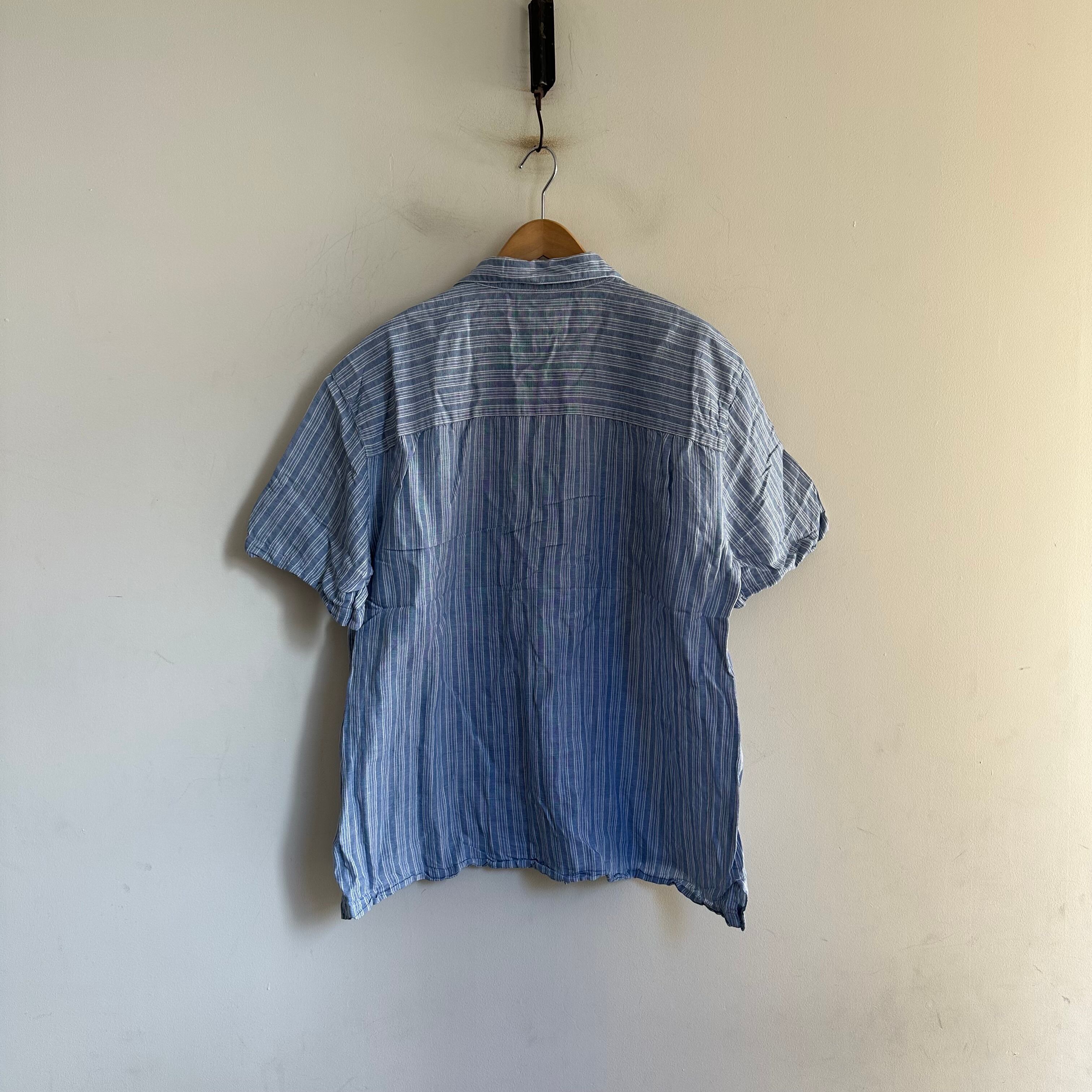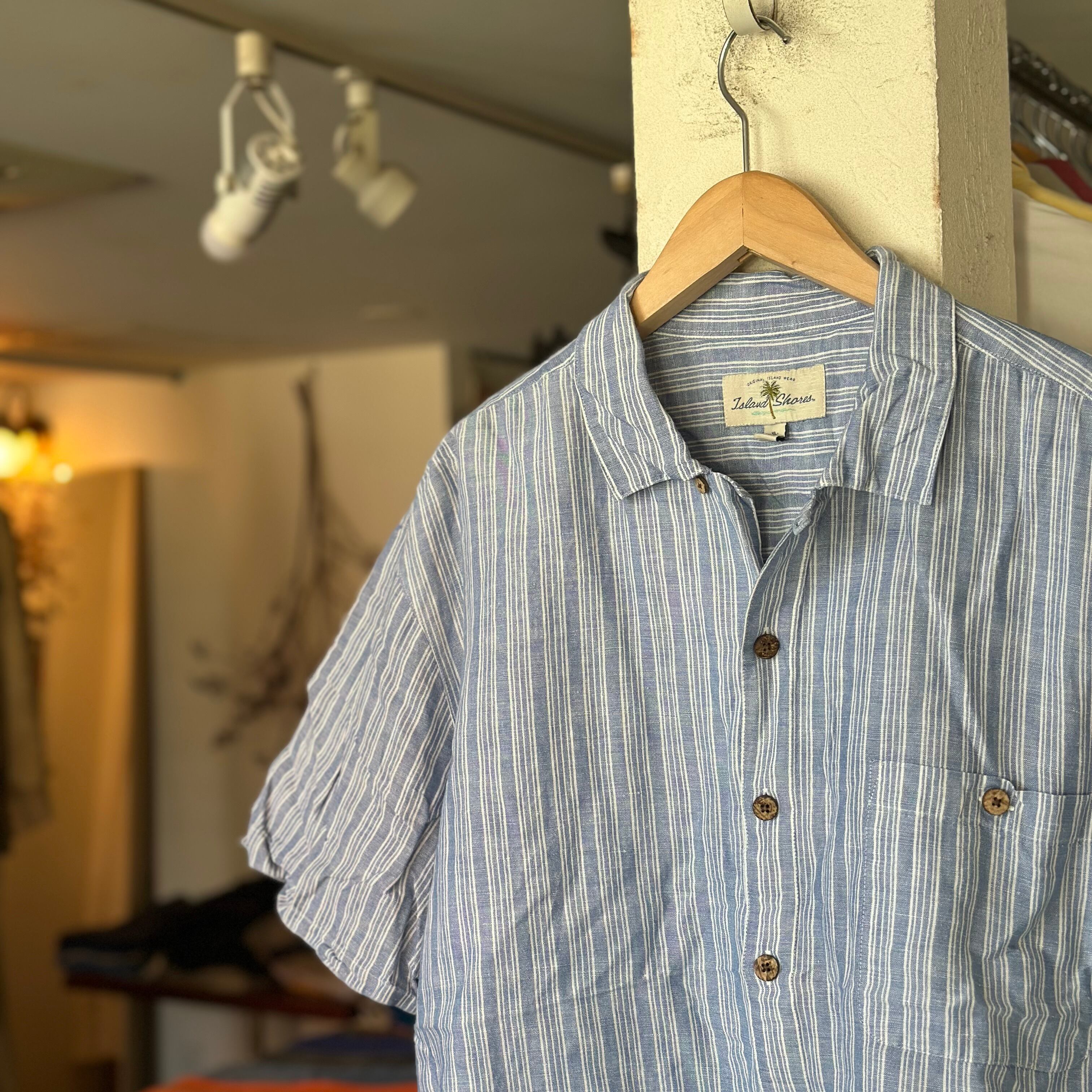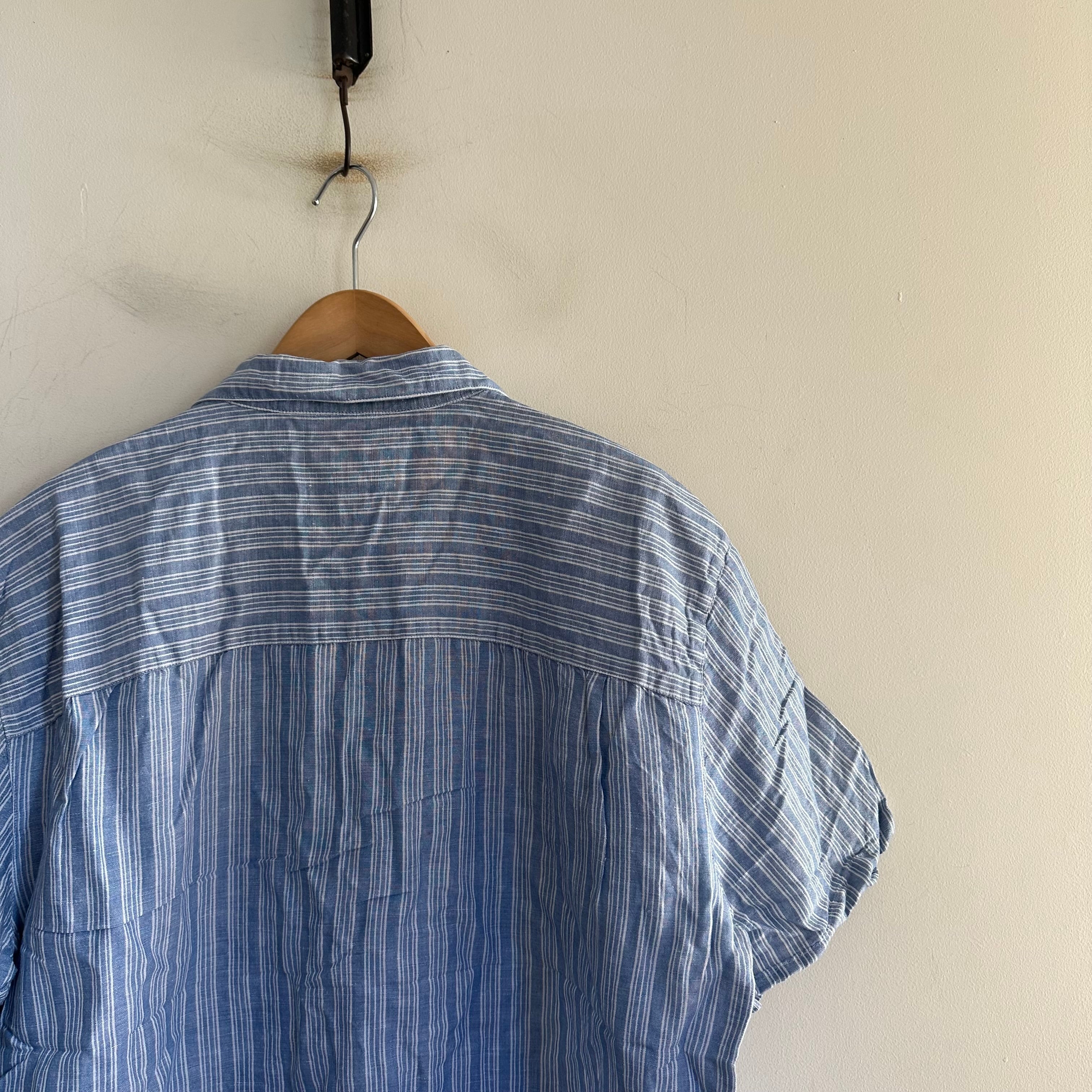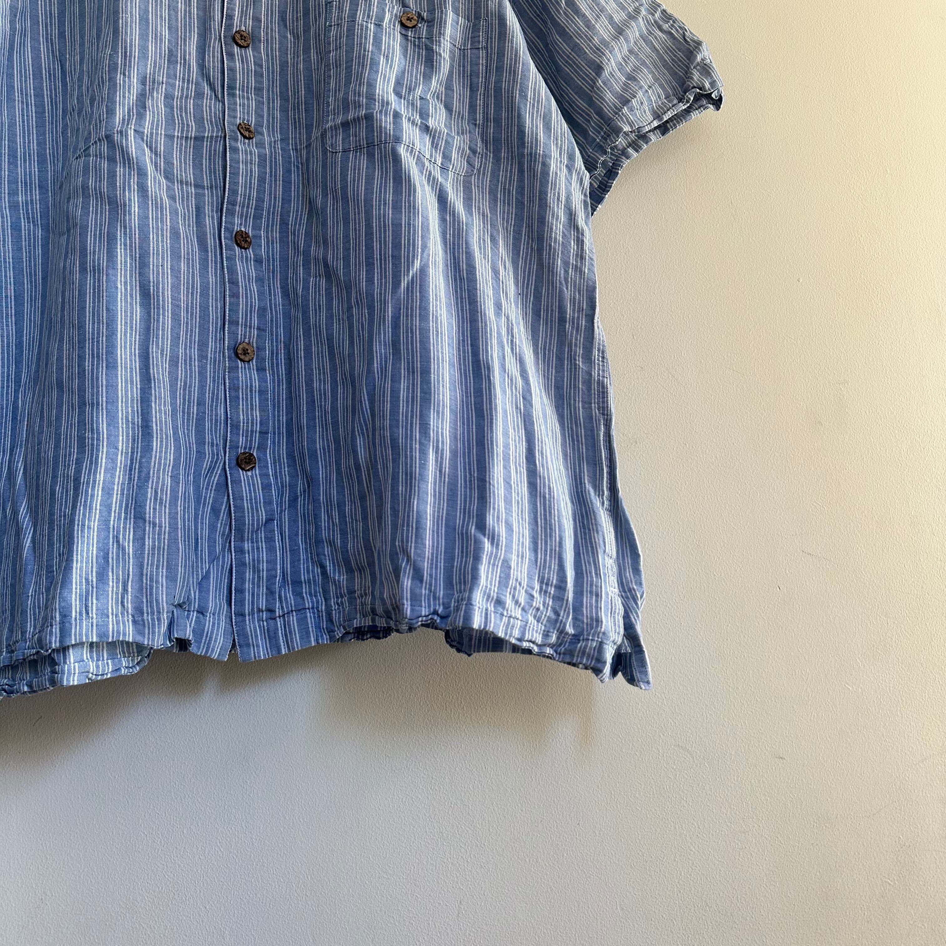 半袖シャツです。cotton × LINENのmix生地。オープンカラー。形と生地感と色と、バランス良いですよ。お好きな方、いかがでしょうか。