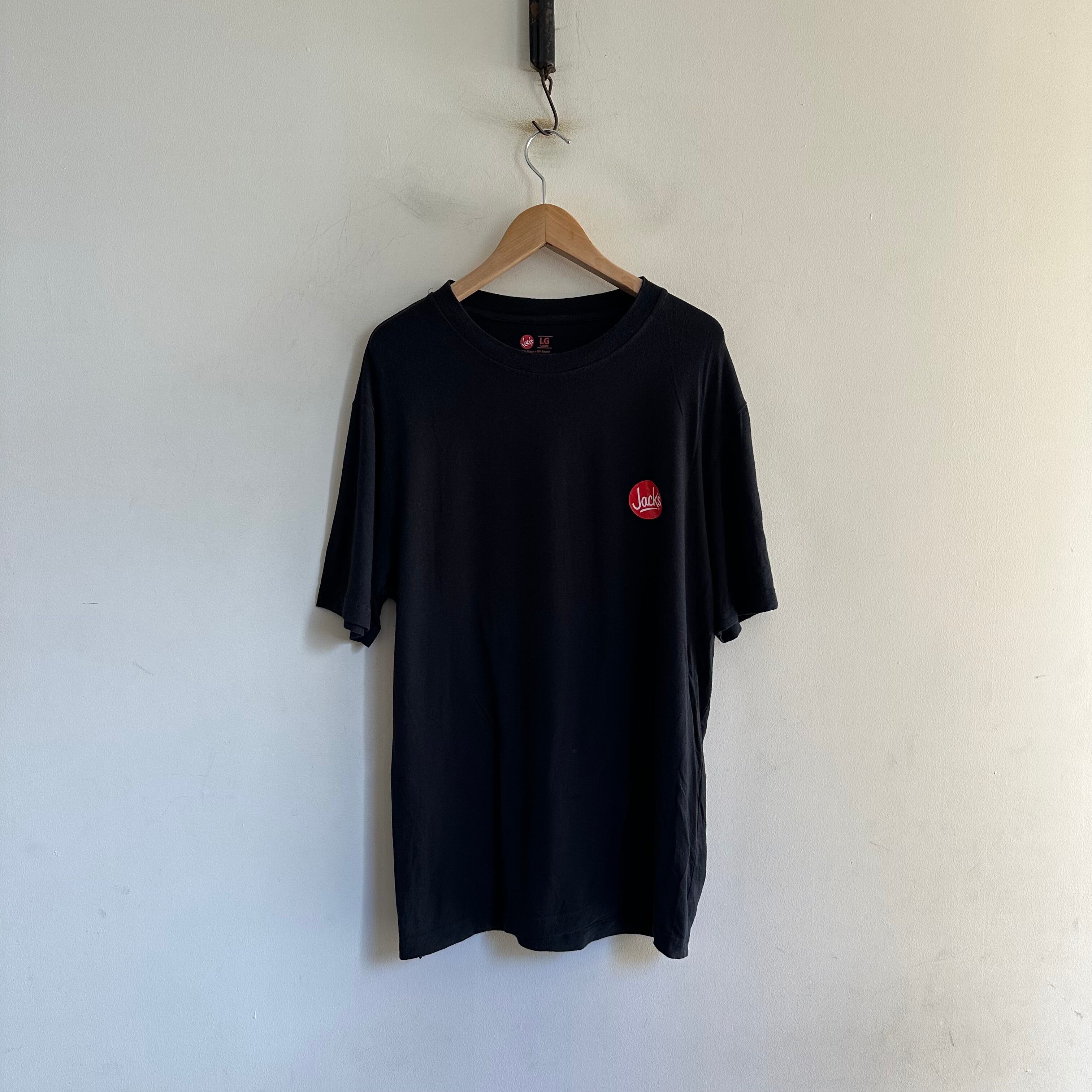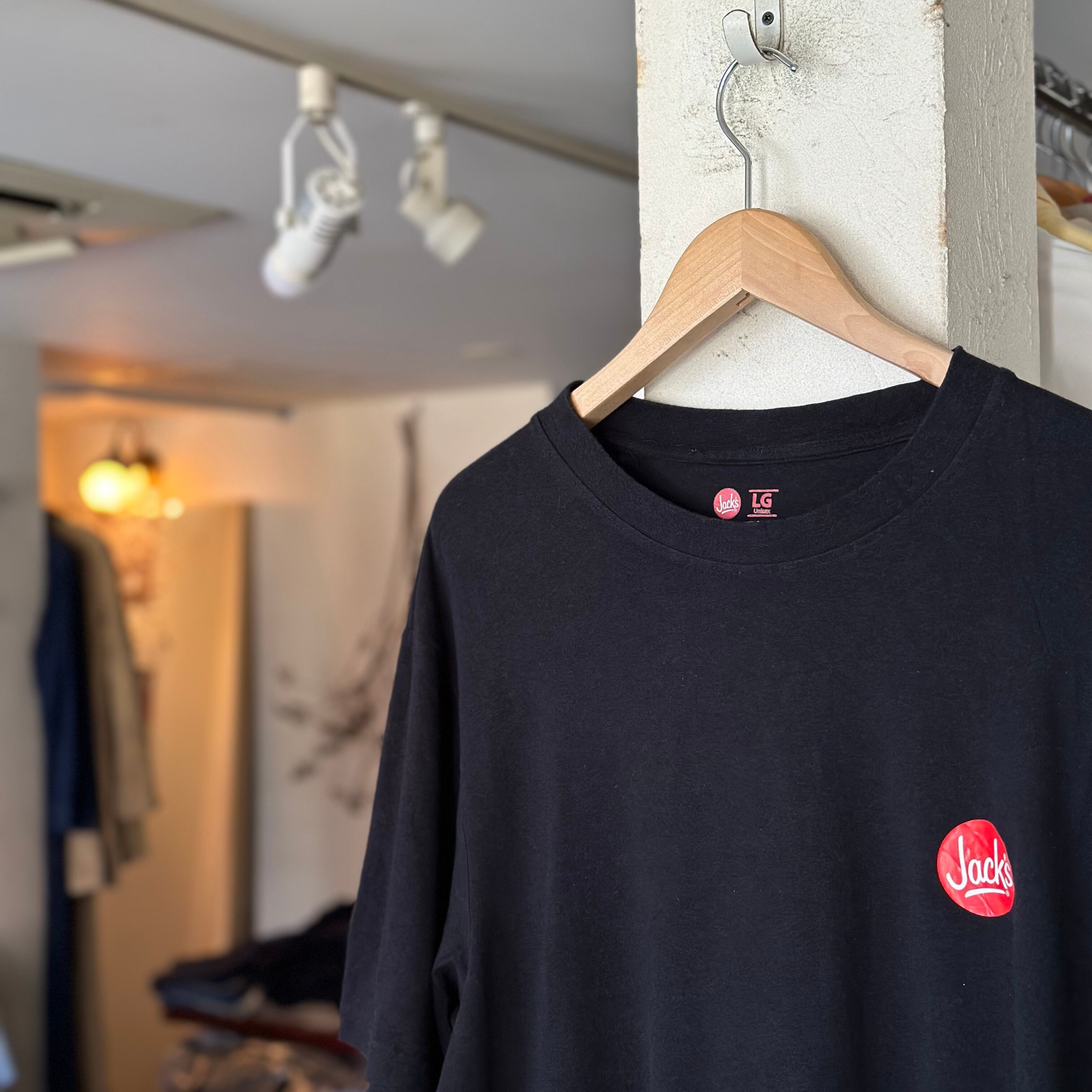 プリントTです。胸ワンポイントと背中と、両面プリント。rayon混じりの生地感で、滑らかな着心地です。お好きな方、いかがでしょうか。