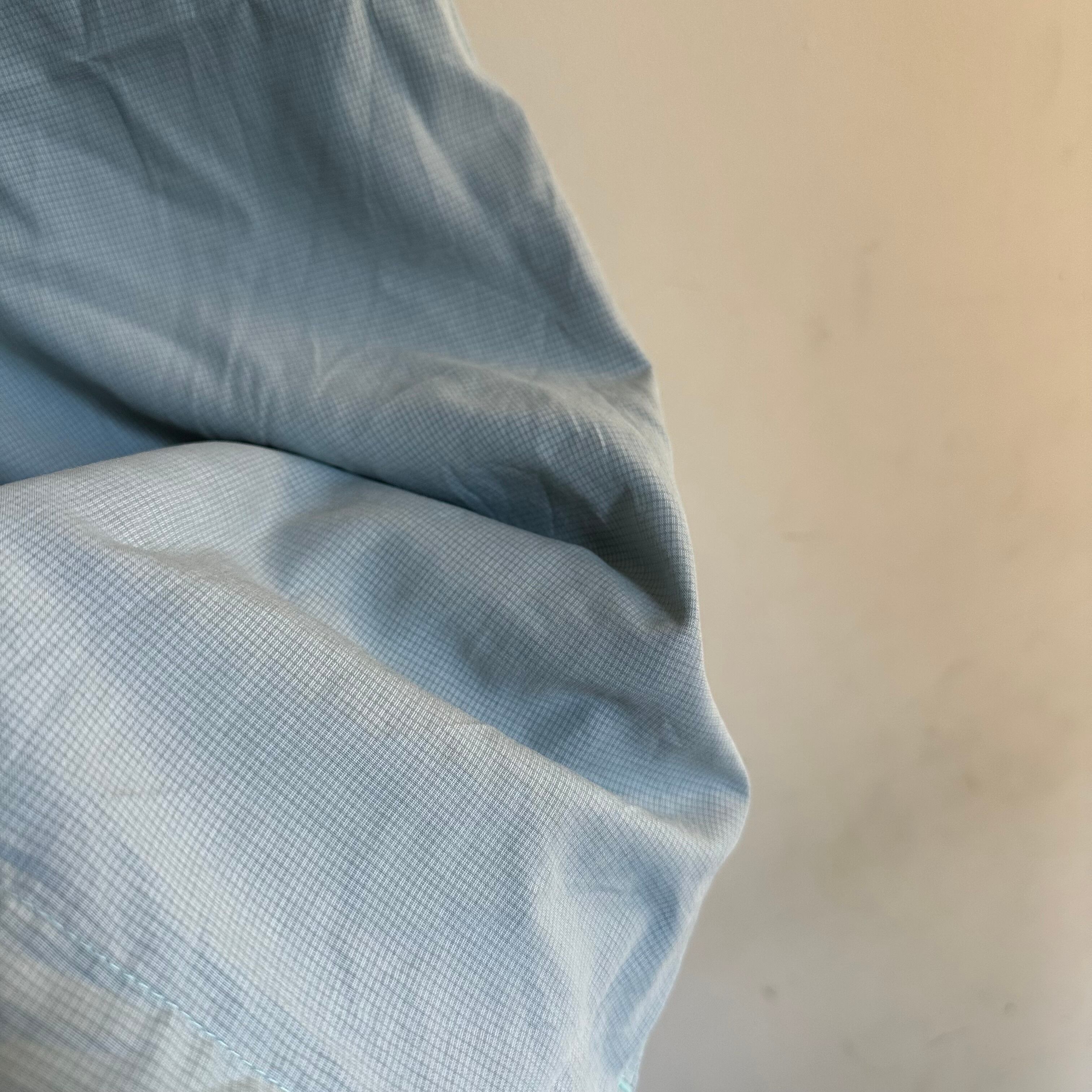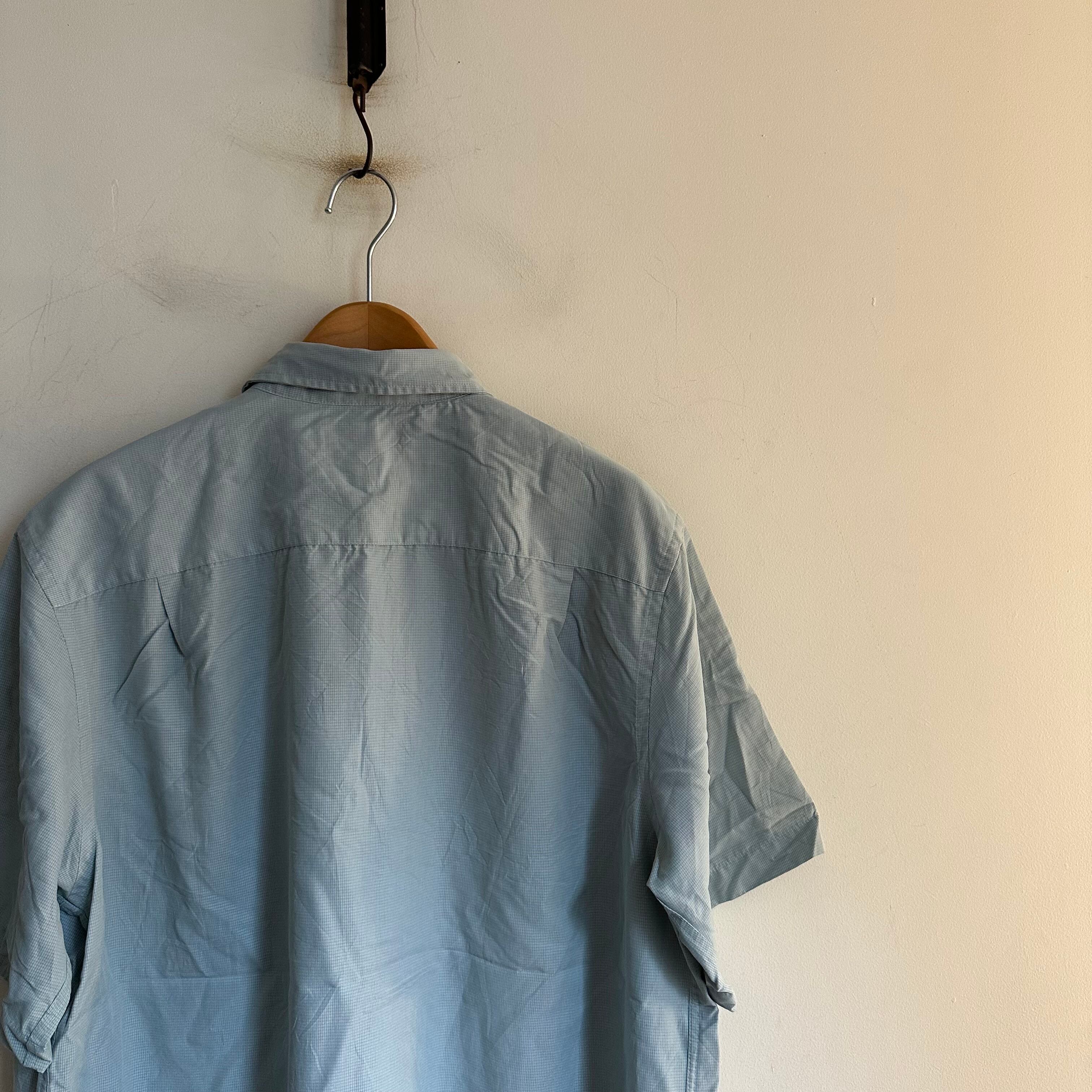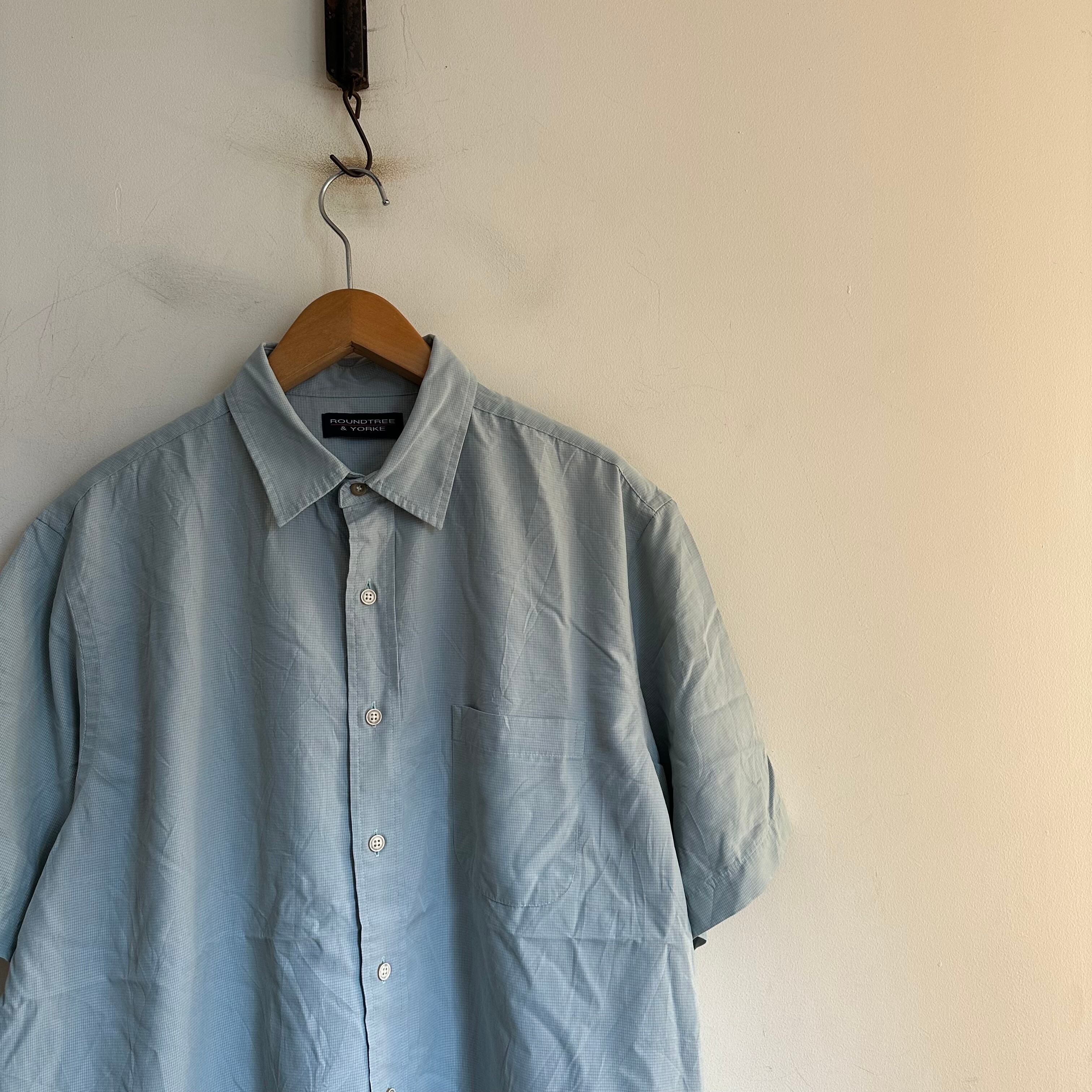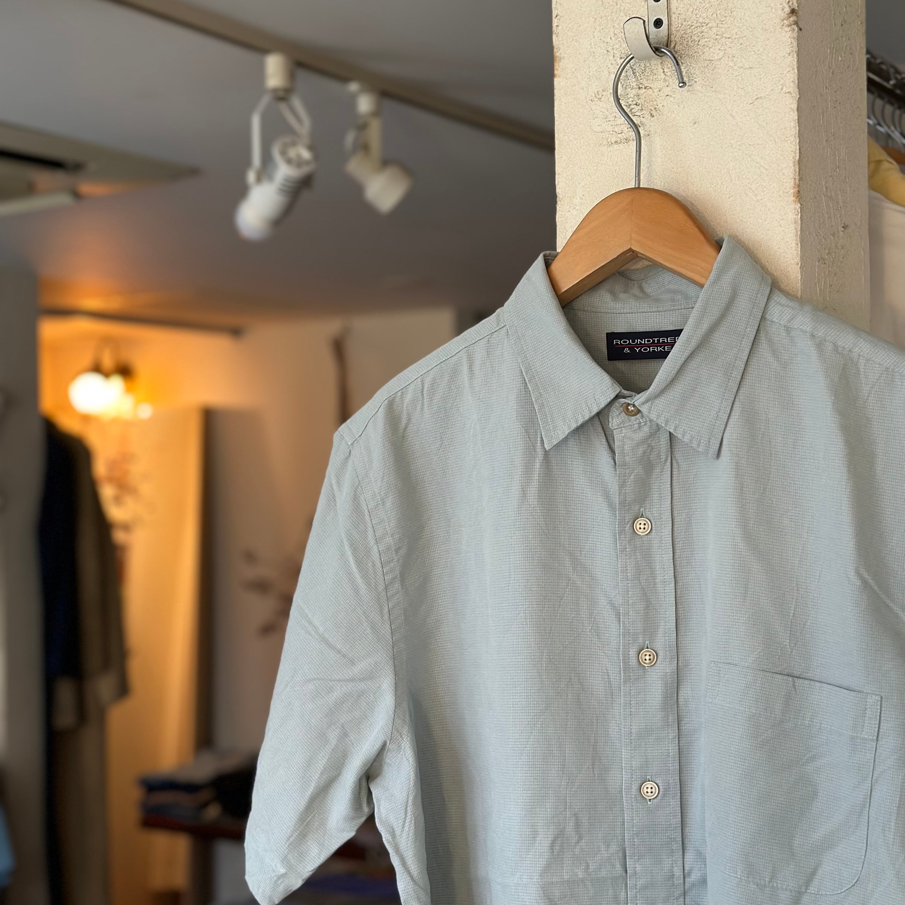 半袖シャツです。rayonベースの生地感。淡めのミントグリーンに、うっすらチェック。たっぷりの身幅を生かしたシルエットで。お好きな方、いかがでしょうか。