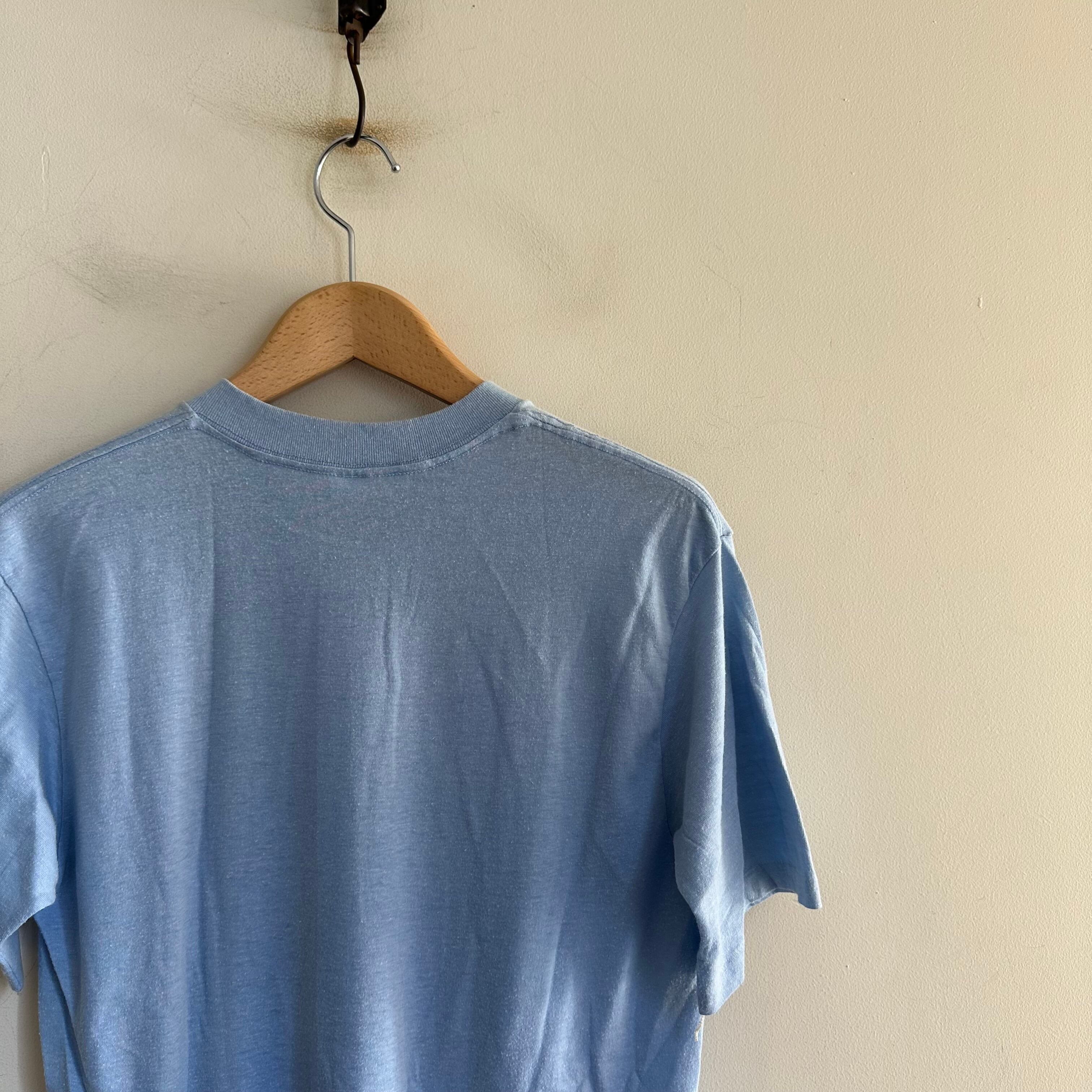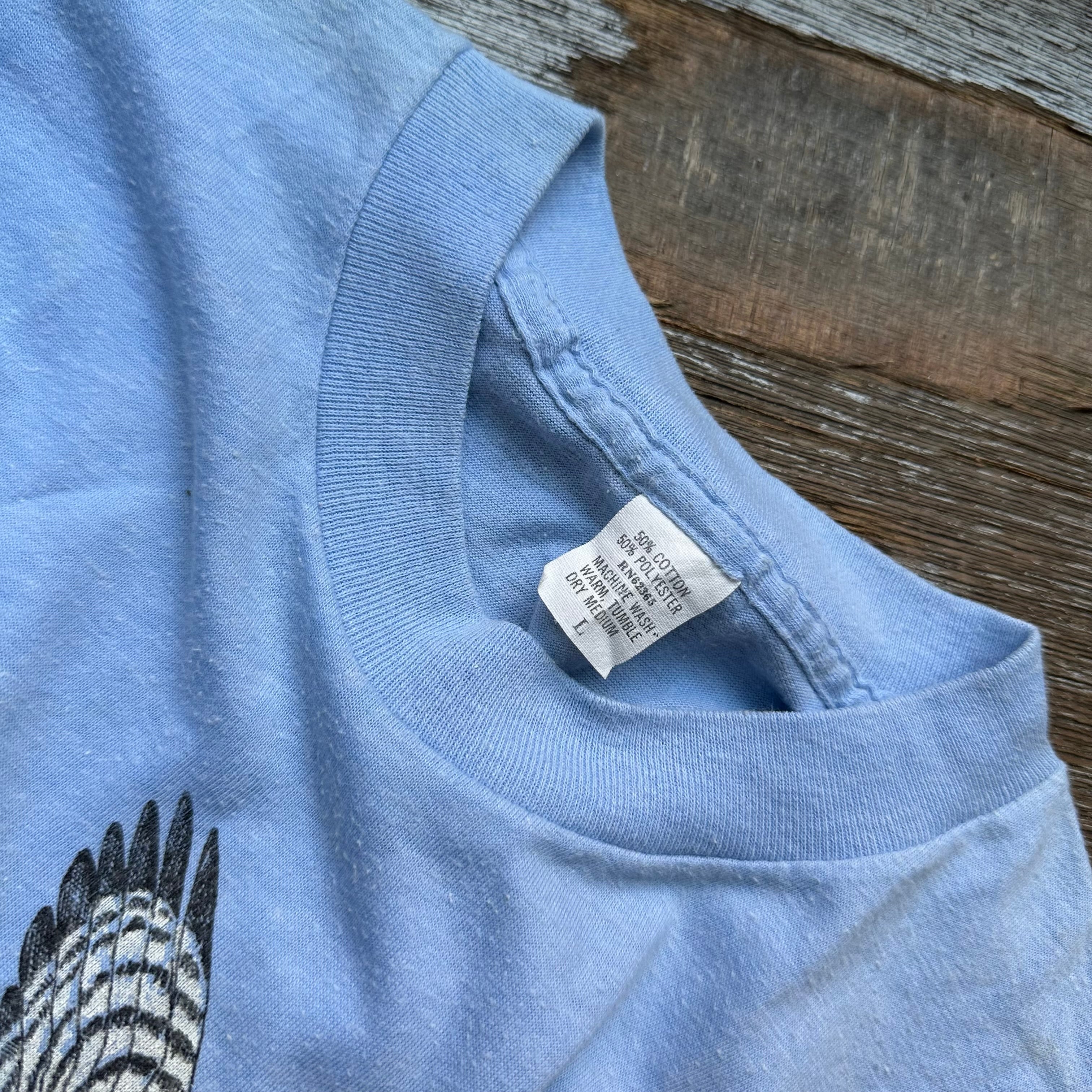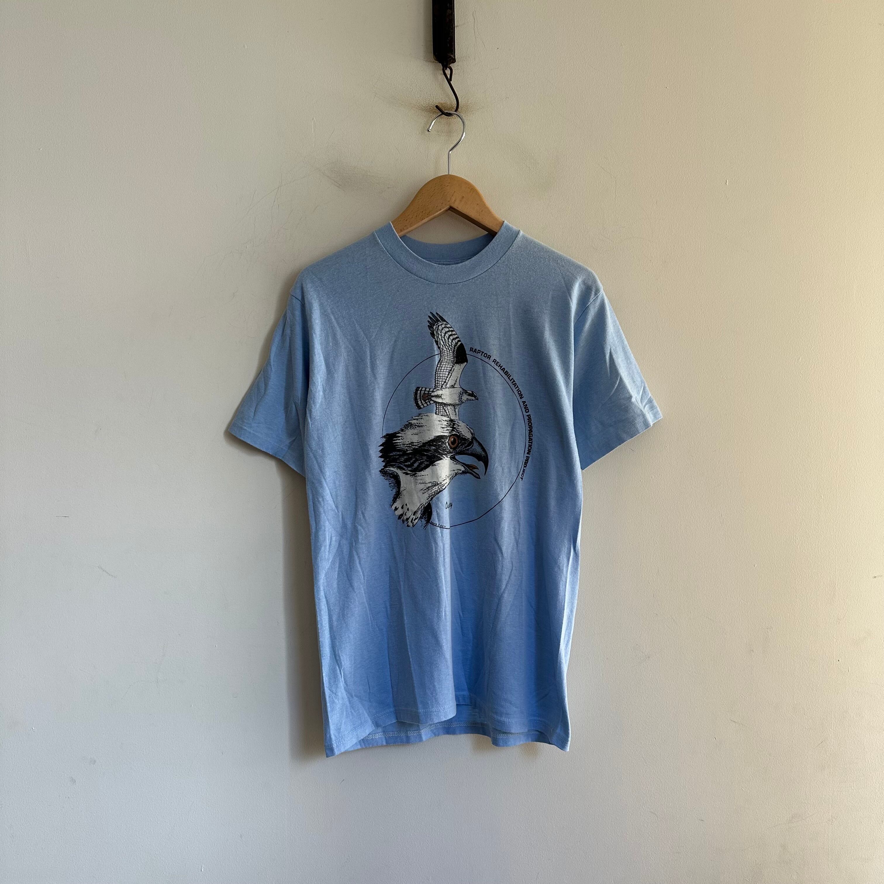 プリントTです。淡めの水色にバランスの良いプリント。猛禽類、鳥類の繁殖プロジェクトみたいです。お好きな方、いかがでしょうか。