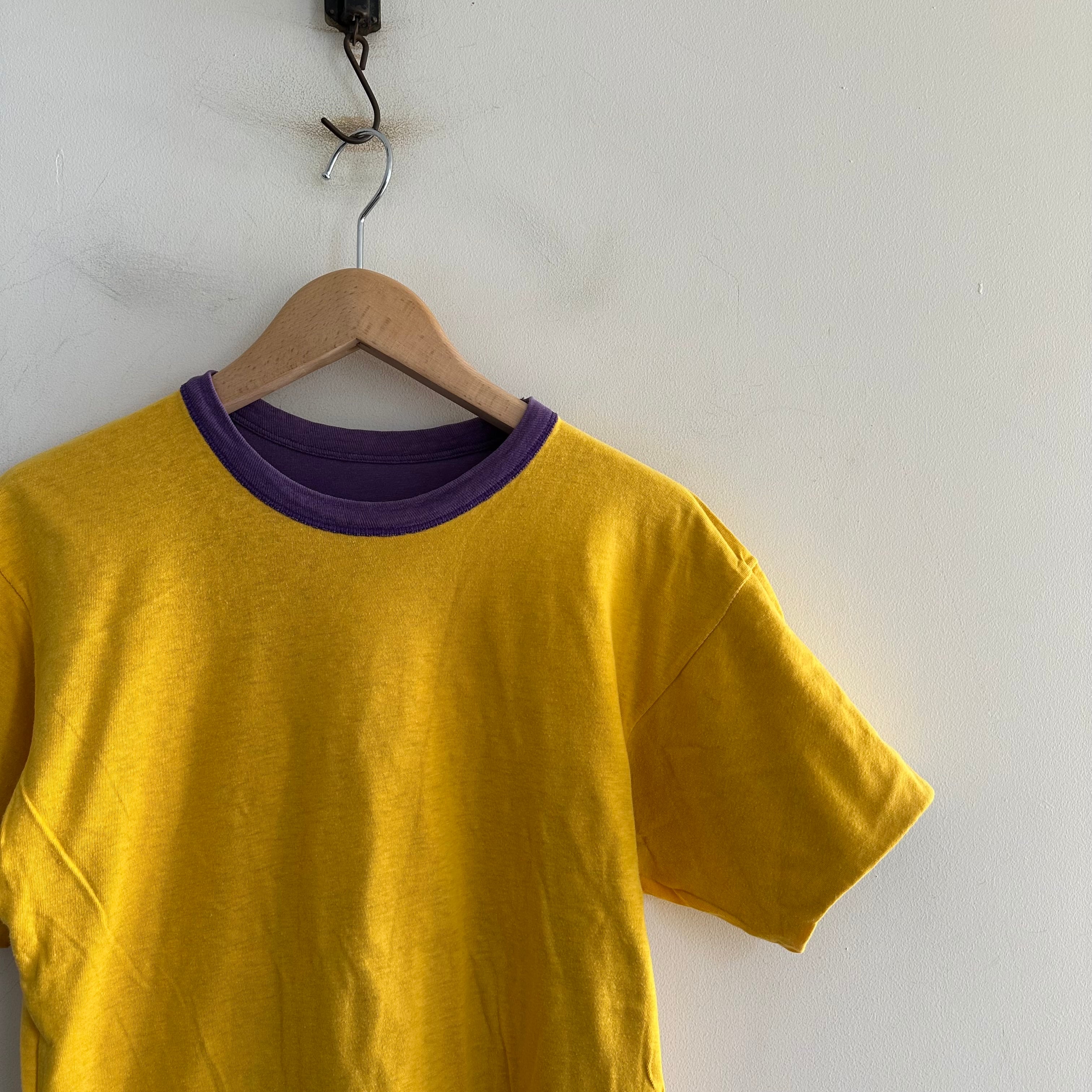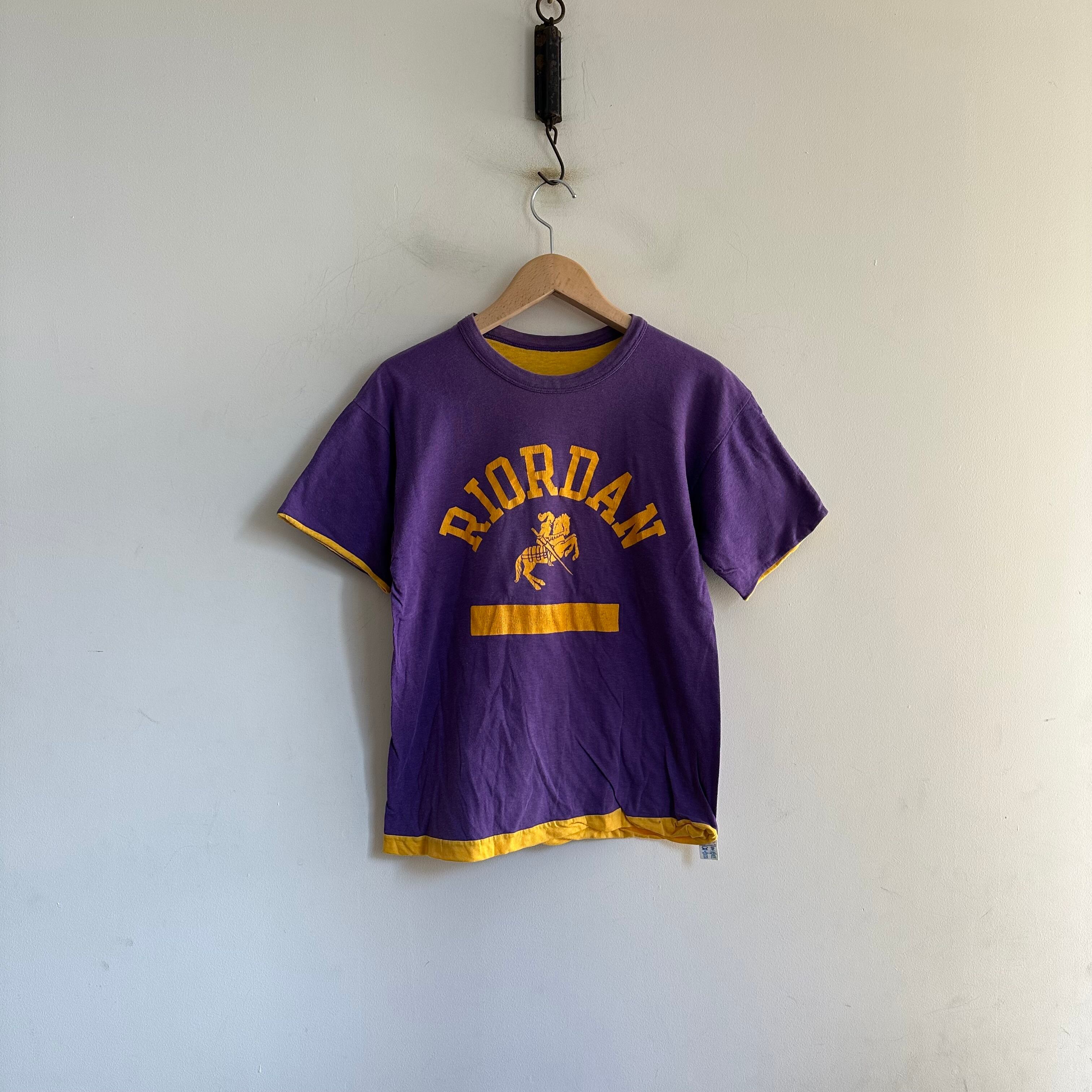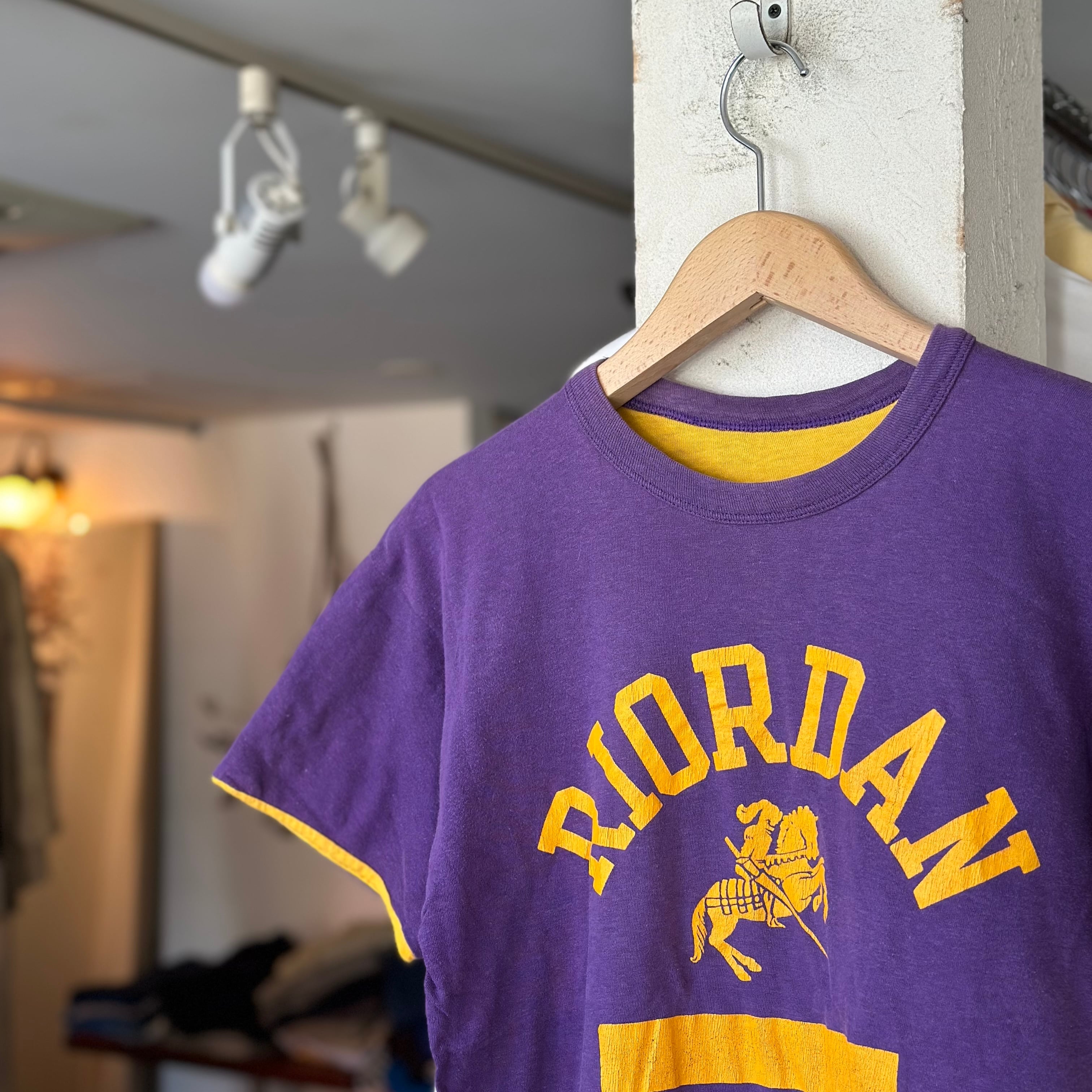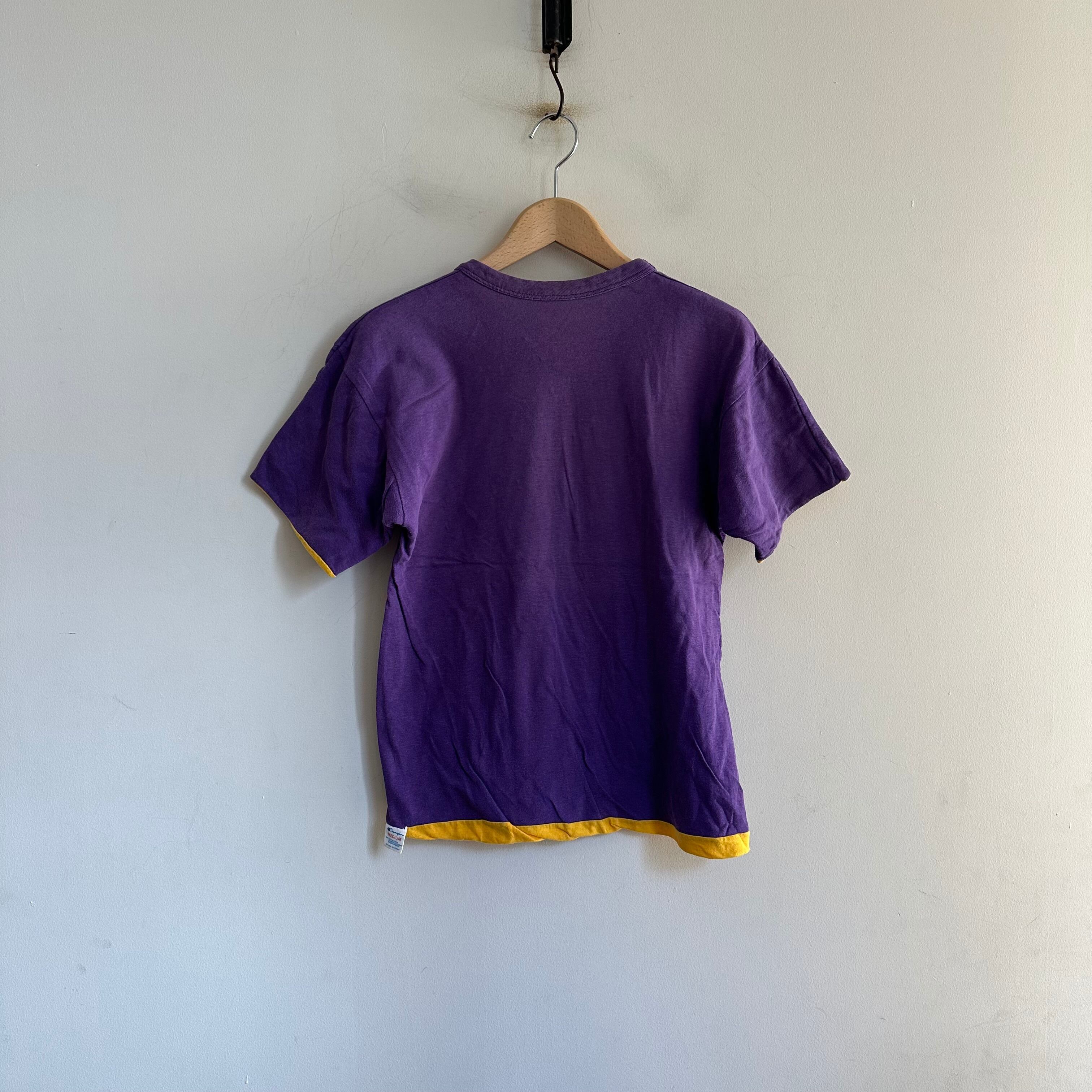 80sのchampion。プリントTです。トリコタグ。ムラサキ×イエローのリバーシブル。プリントのバランスも良いですね。お好きな方、いかがでしょうか。