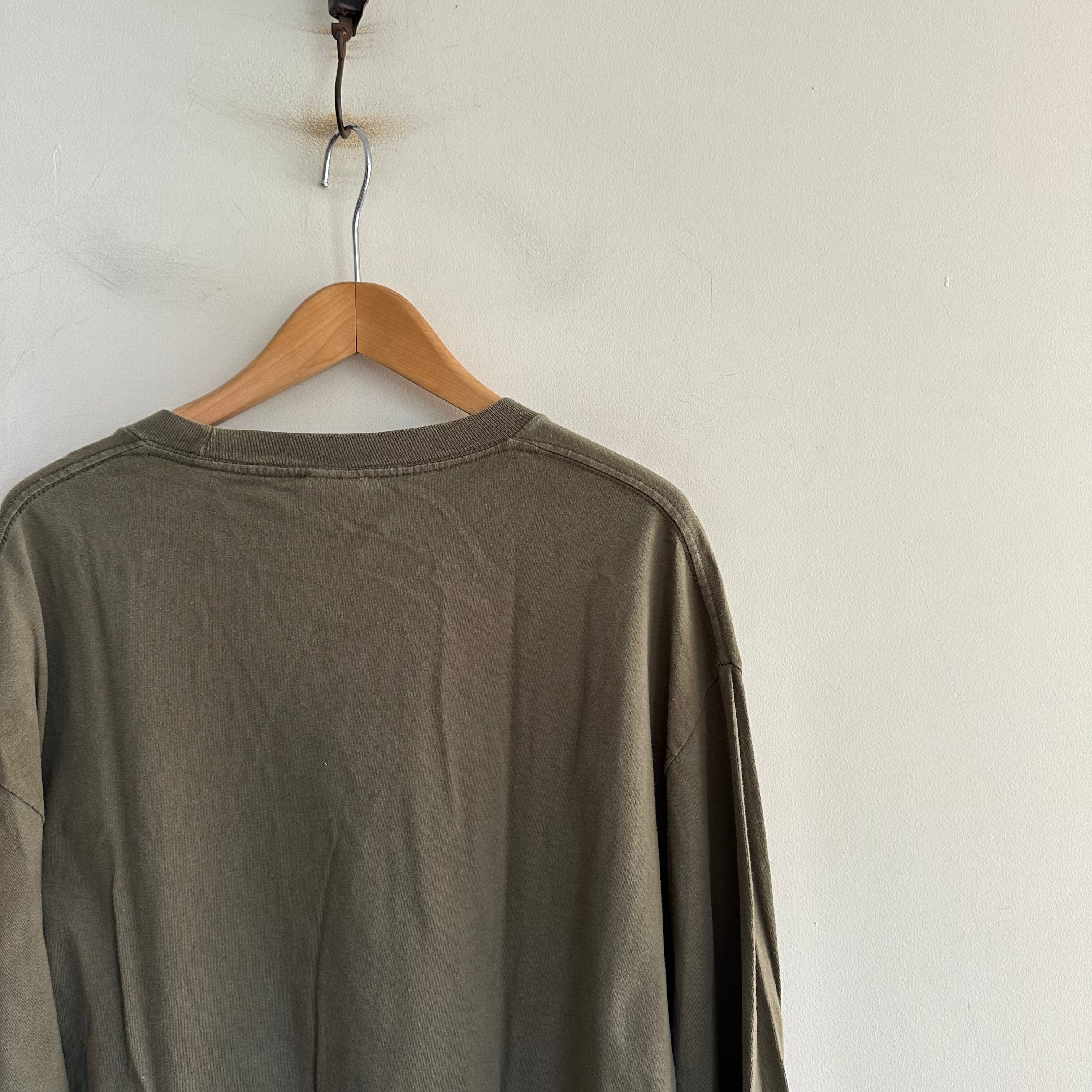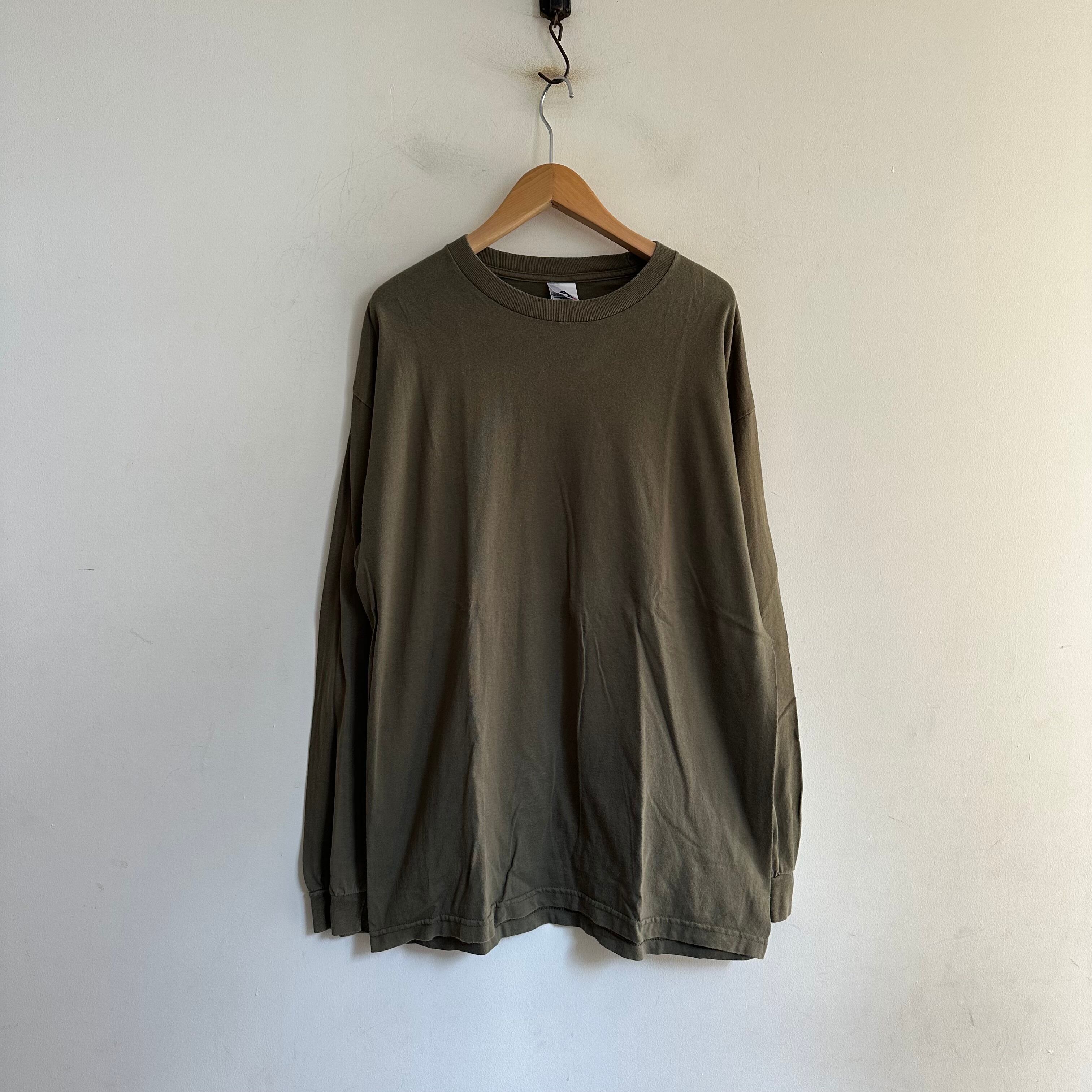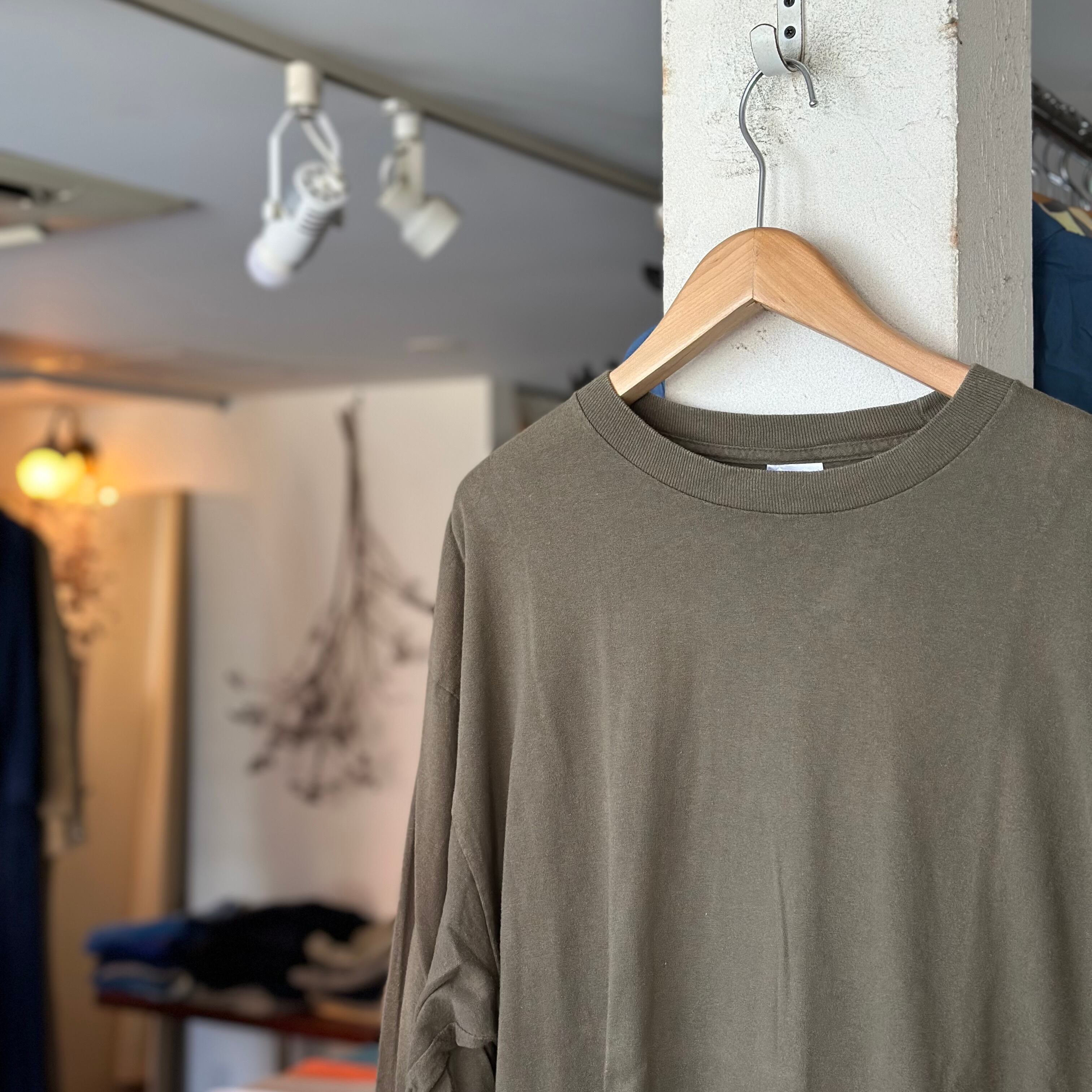 ロンTです。カーキ無地。ざっくり緩めのサイズ感で。お好きな方、いかがでしょうか。
