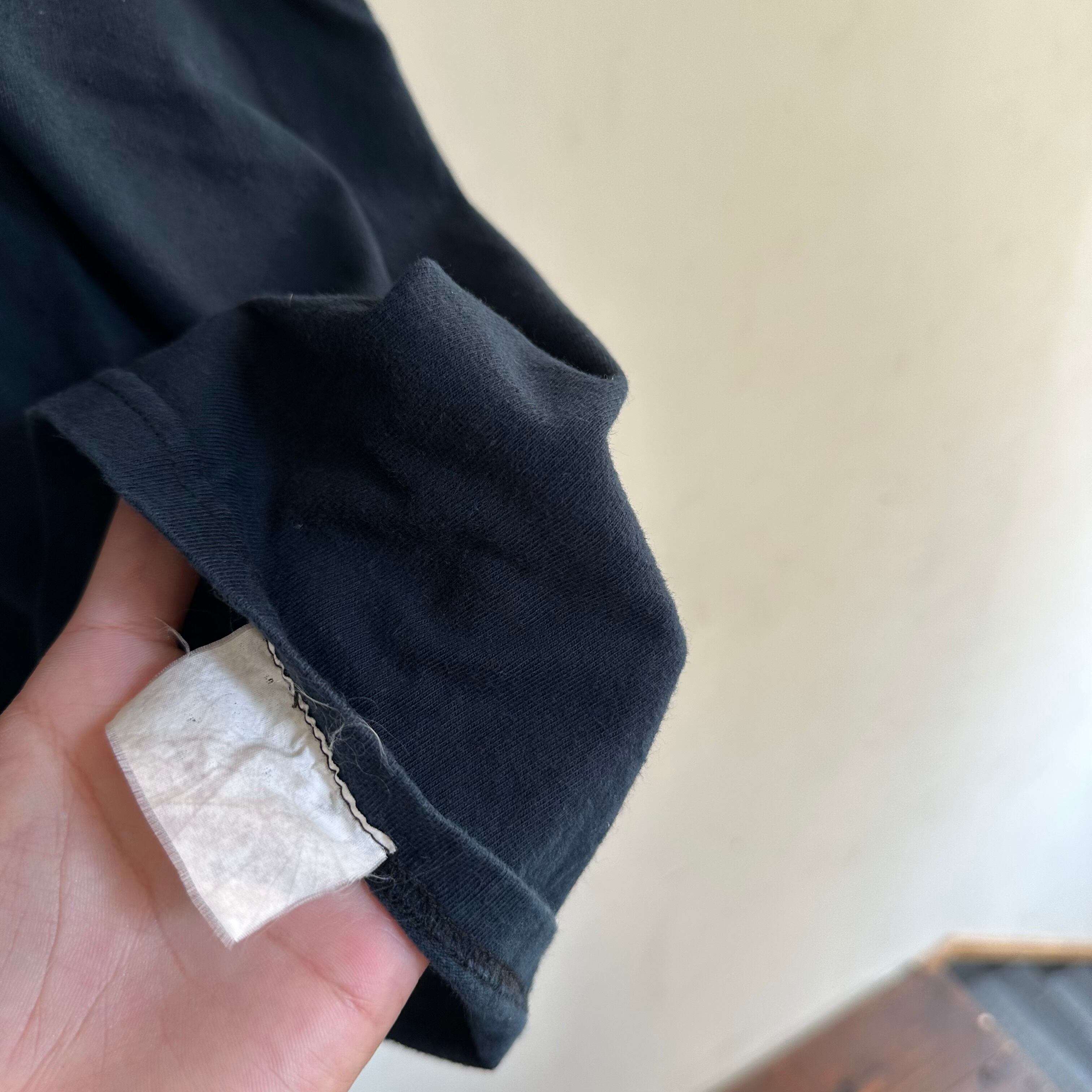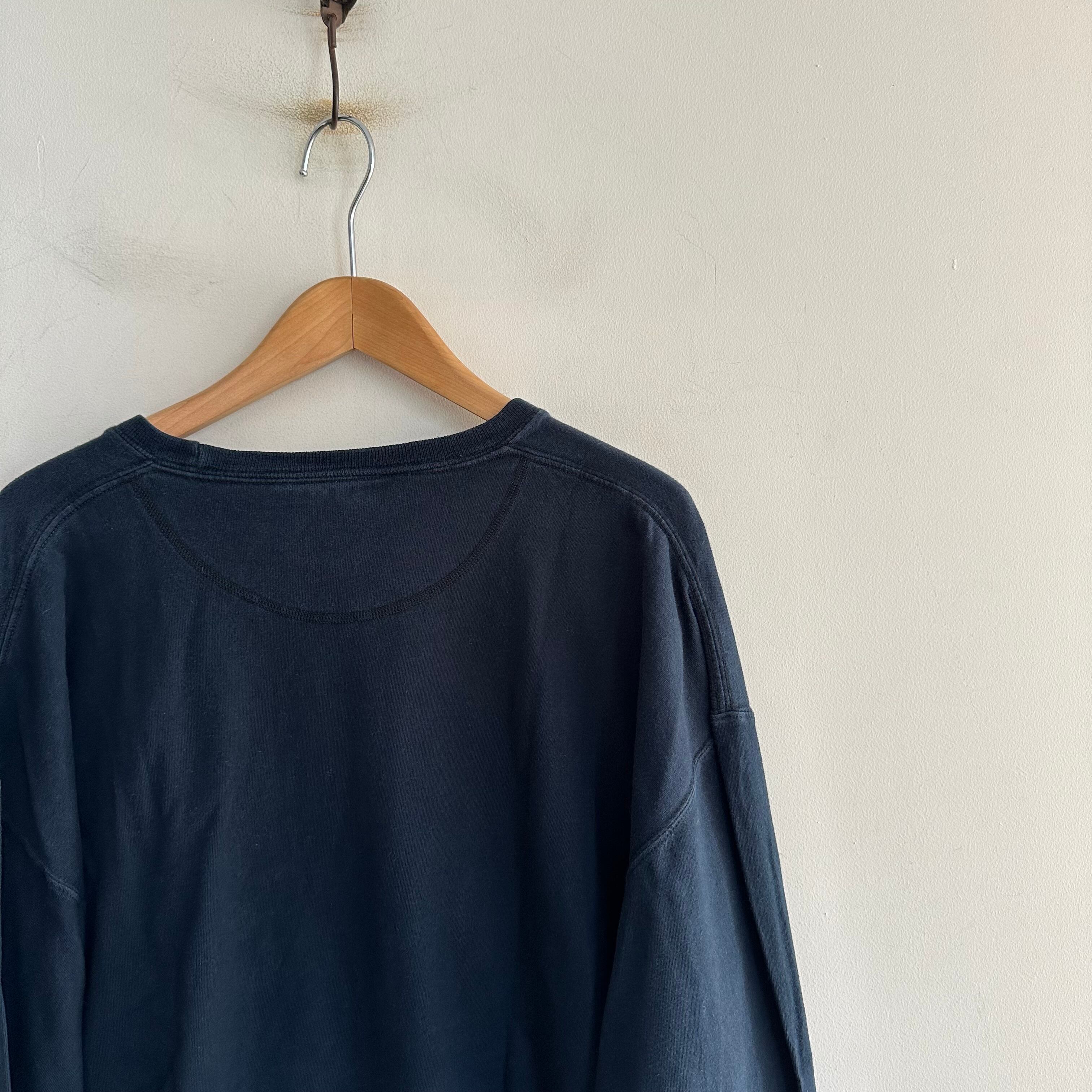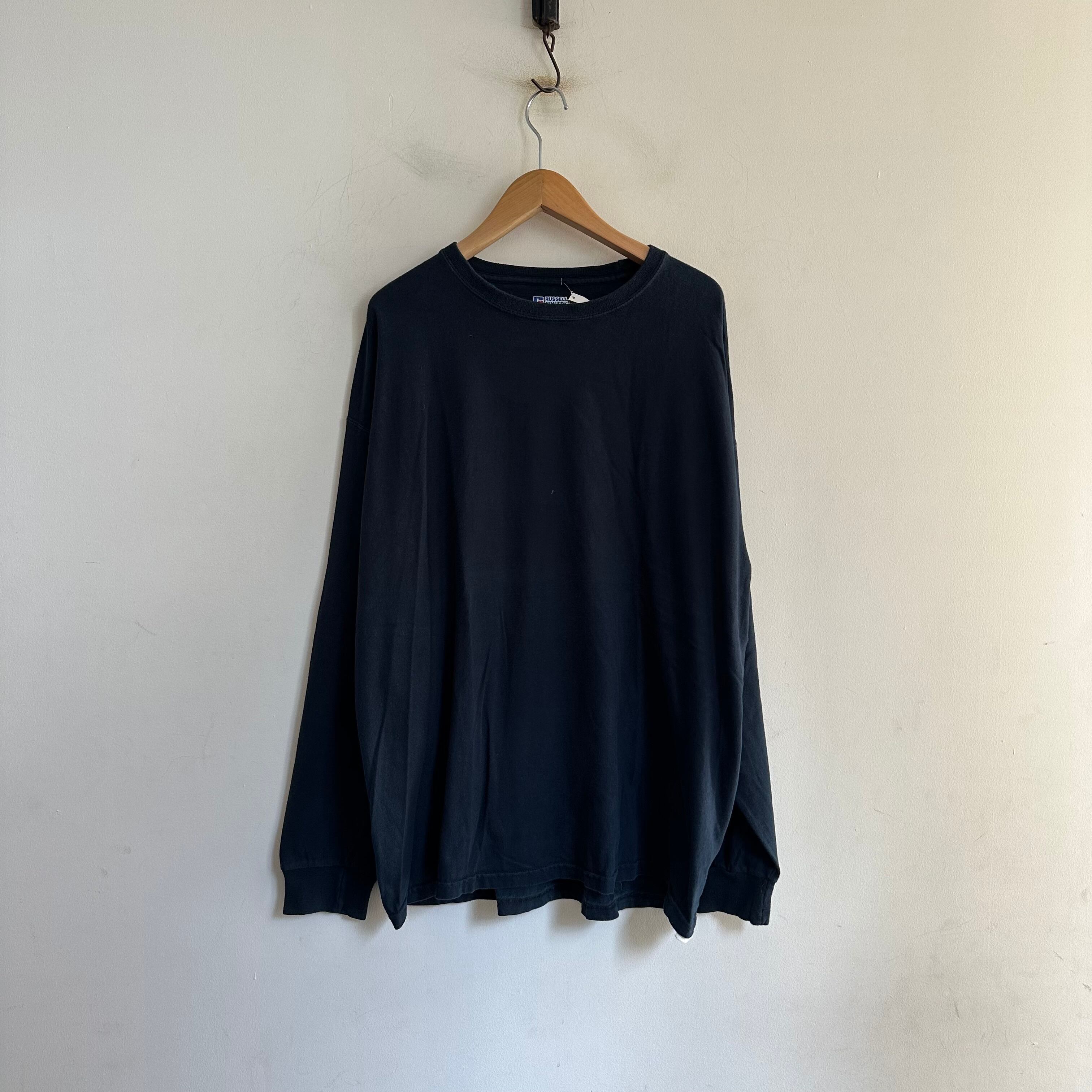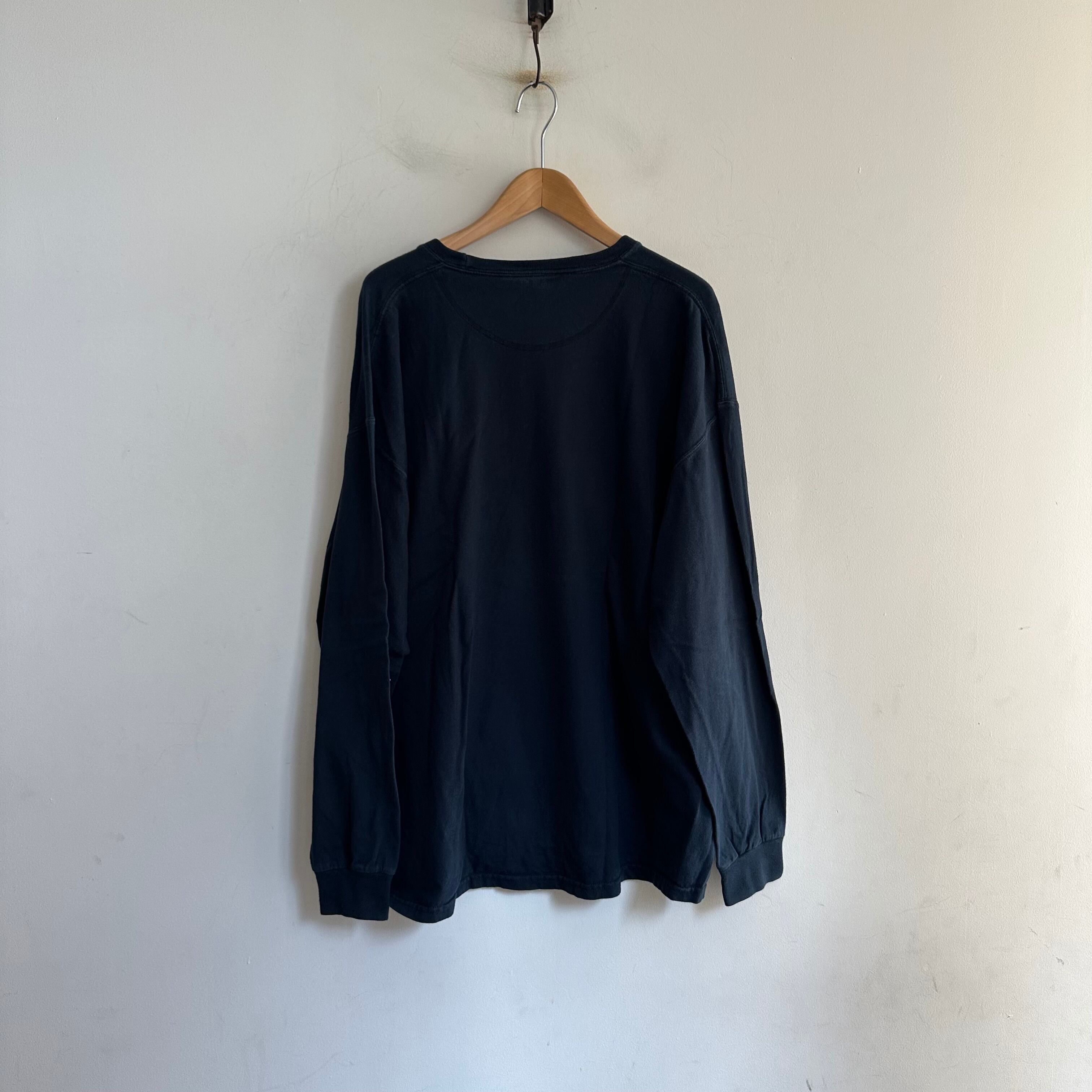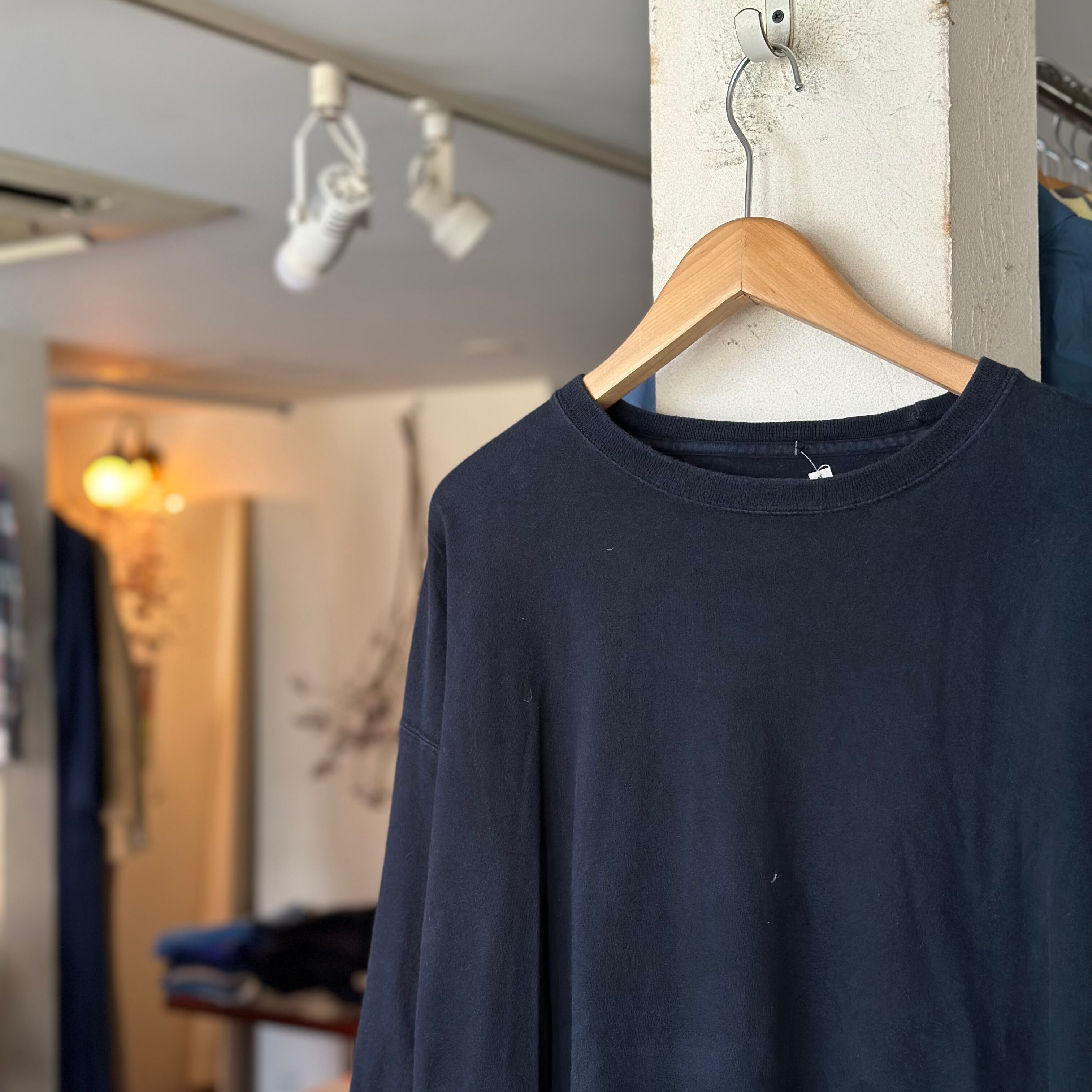ロンTです。黒無地。ざっくり緩めのサイズ感で。たくさん着て褪せ黒になってもカッコ良さそうです。お好きな方、いかがでしょうか。