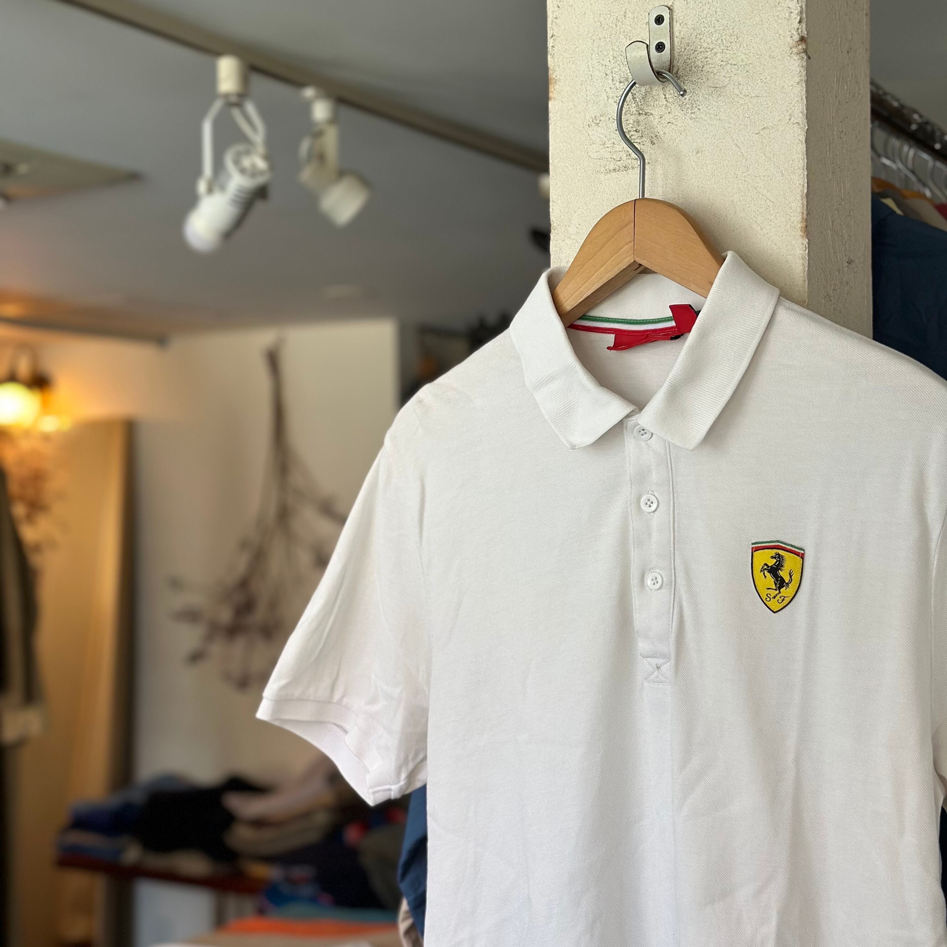 ポロシャツです。白ボディにFerrari。シンプルで良いですね〜。乗りたいとは思いませんが、なんかカッコよく見えてしまいます。お好きな方、いかがでしょうか。