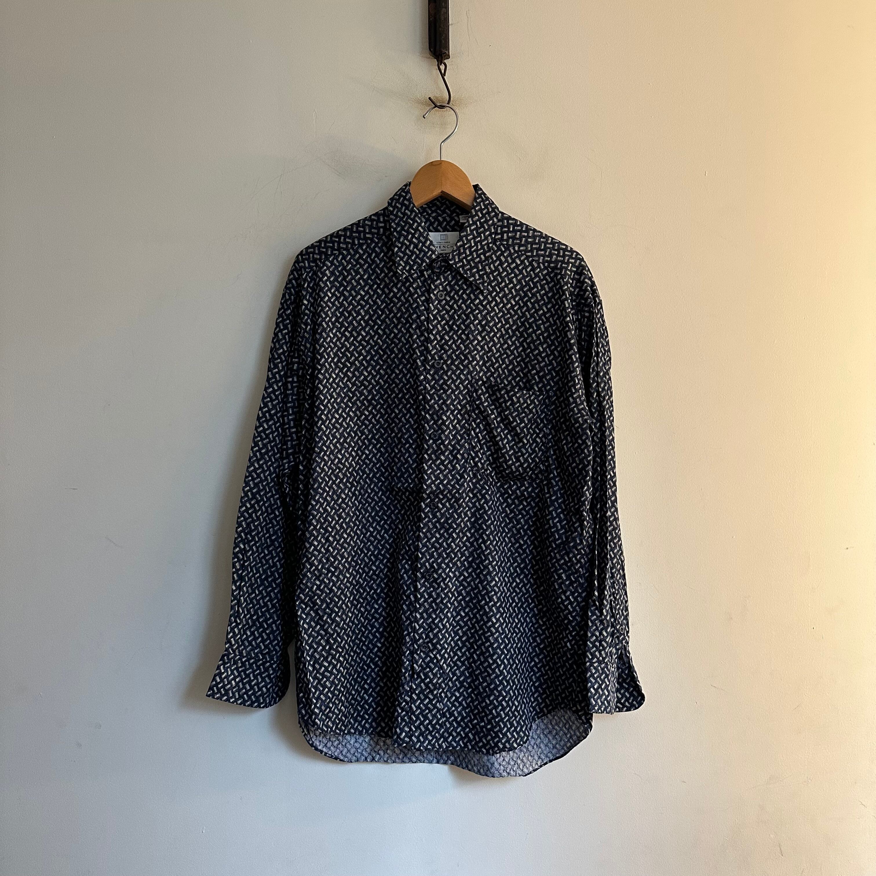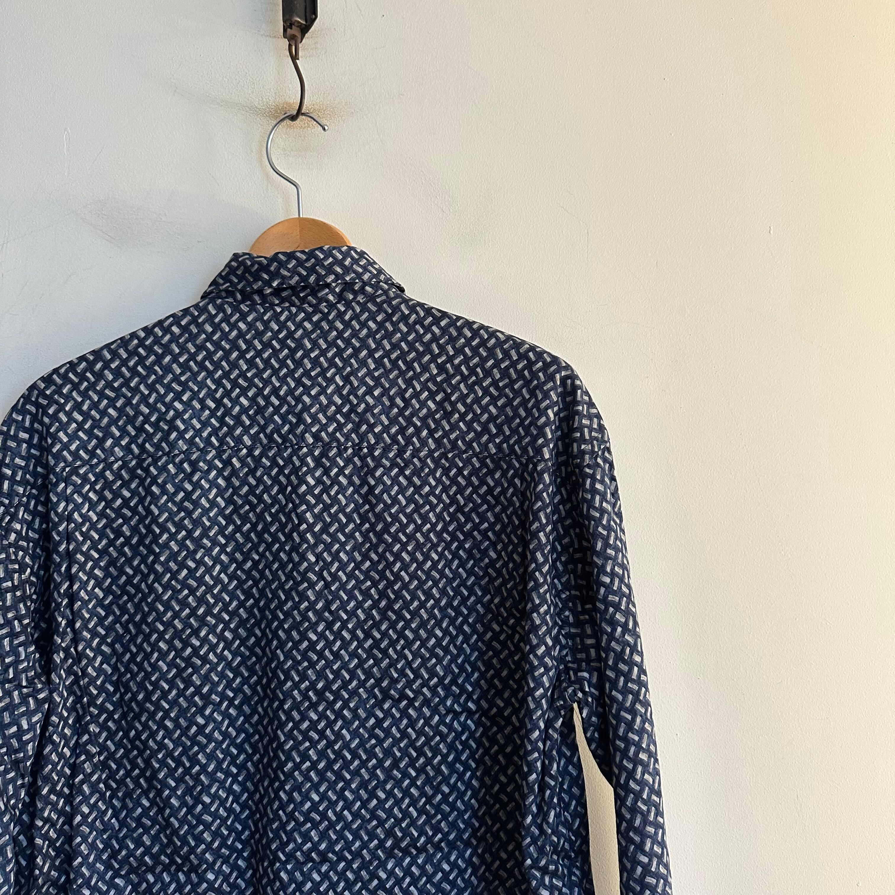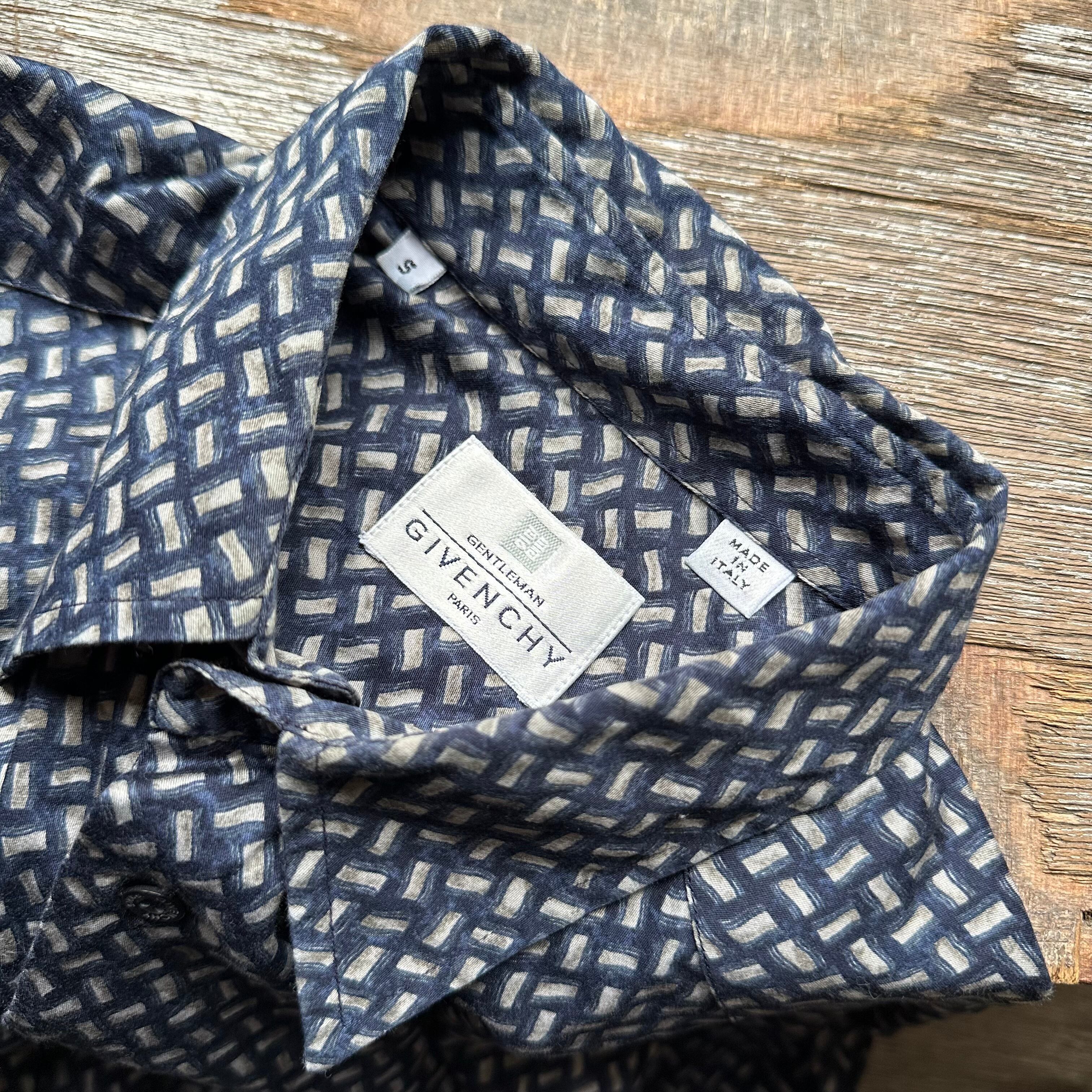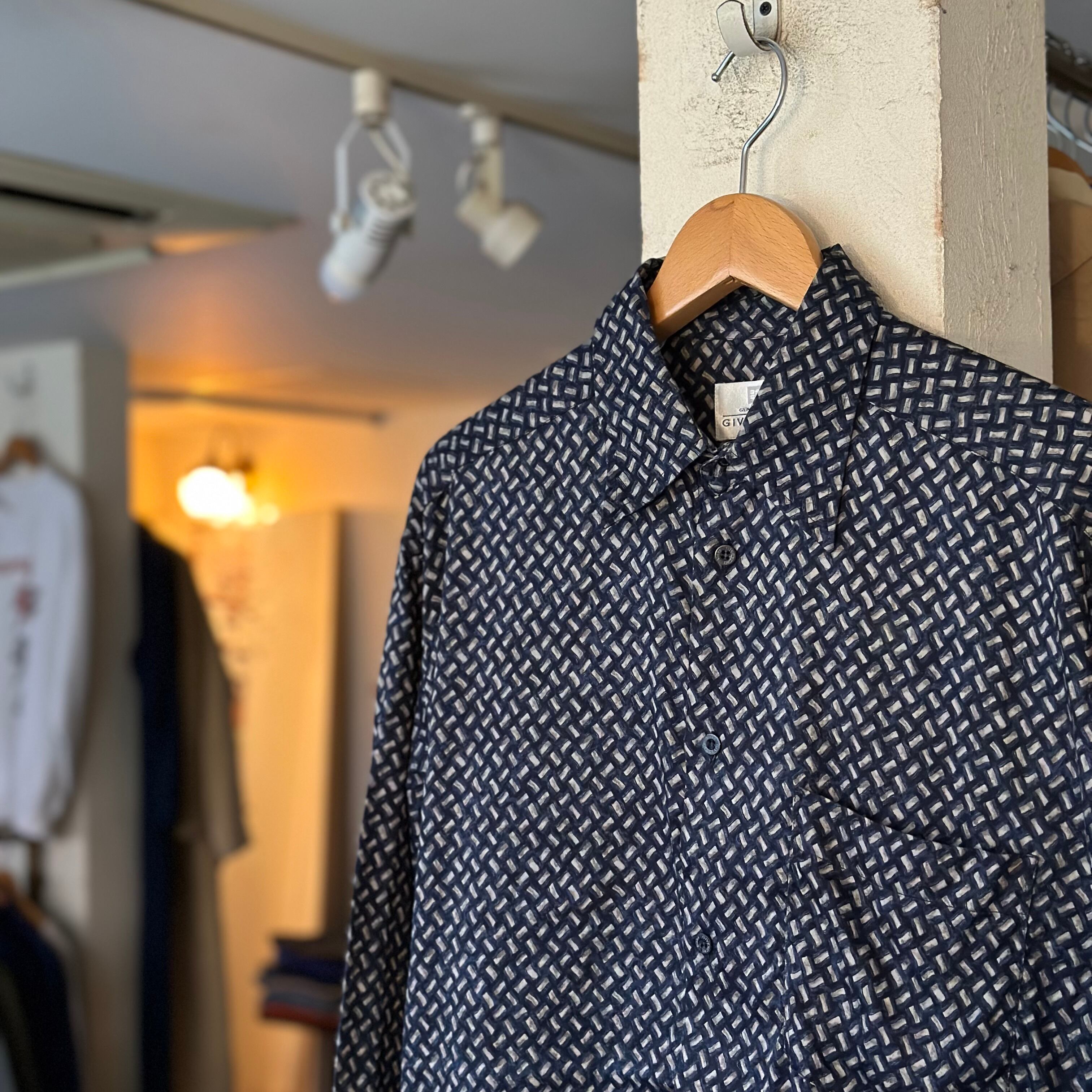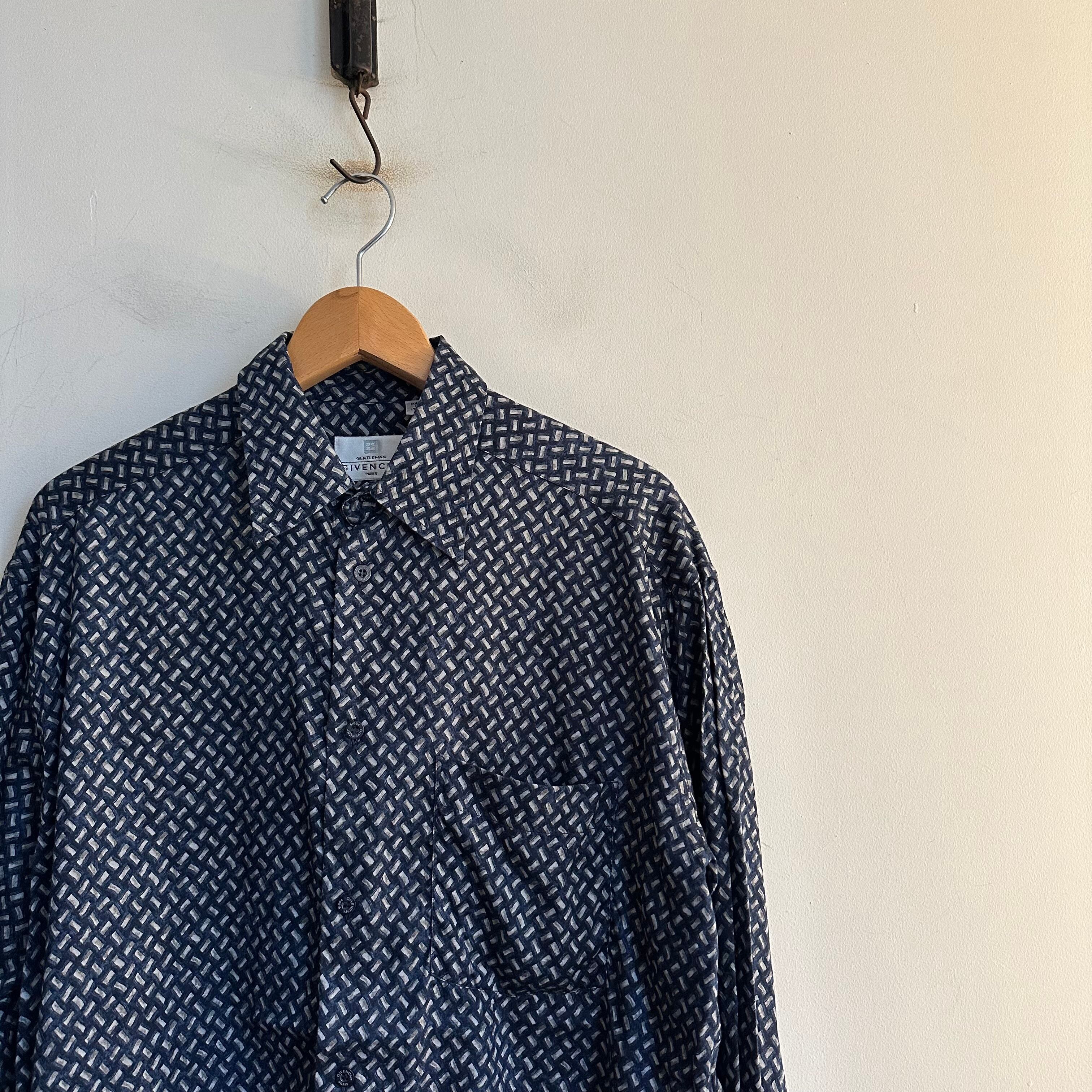 GIVENCHYのロングスリーブシャツです。madeinITALY。ネイビーベースの総柄。光沢感のある生地感が上品で洒落てます。お好きな方、いかがでしょうか。