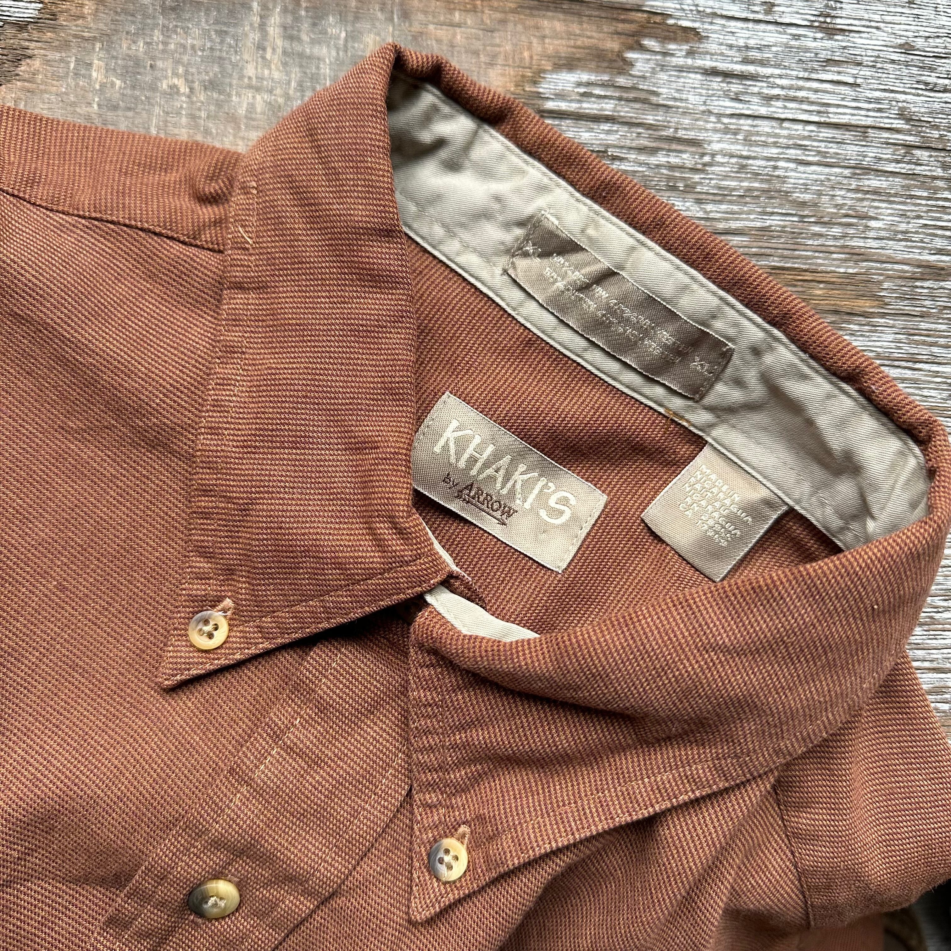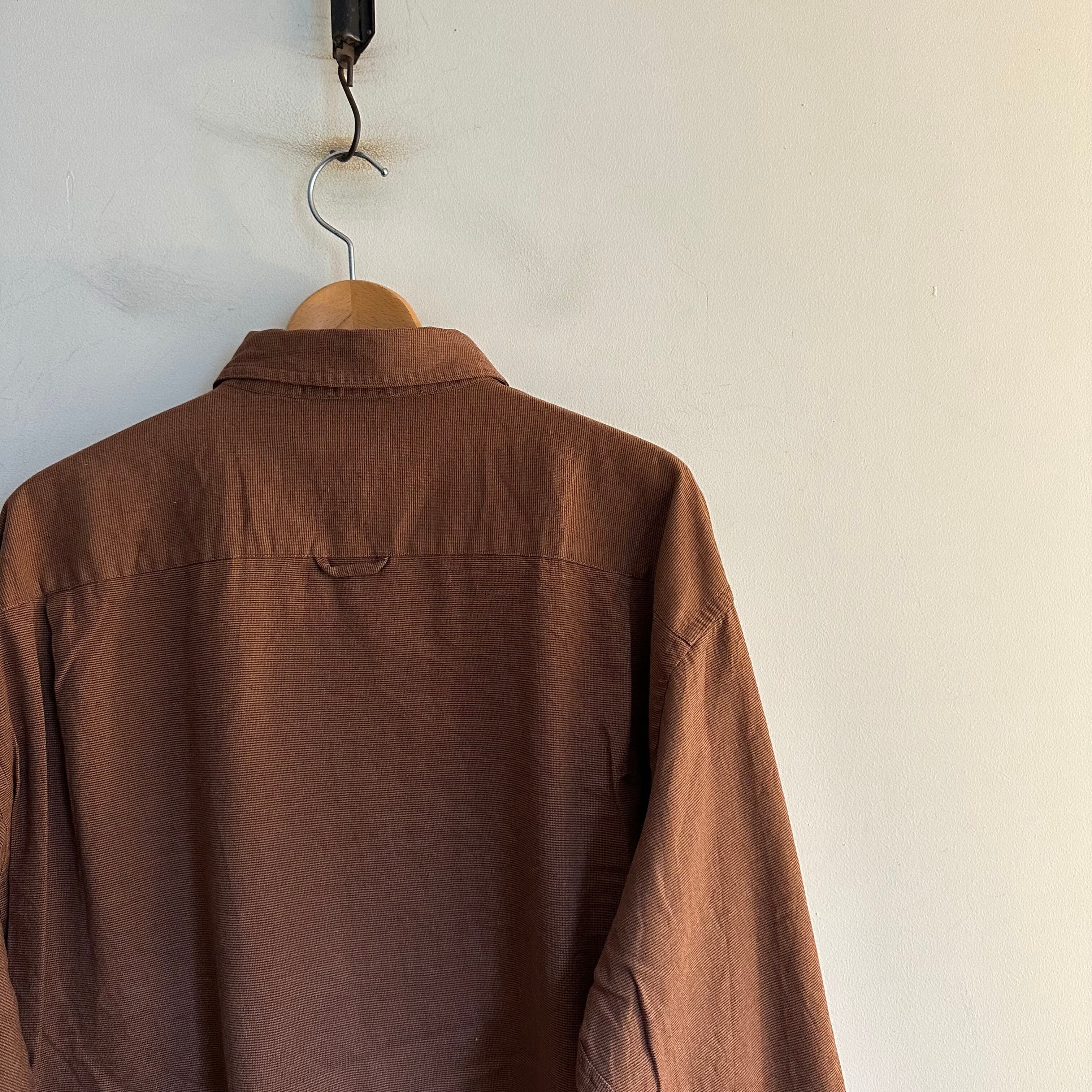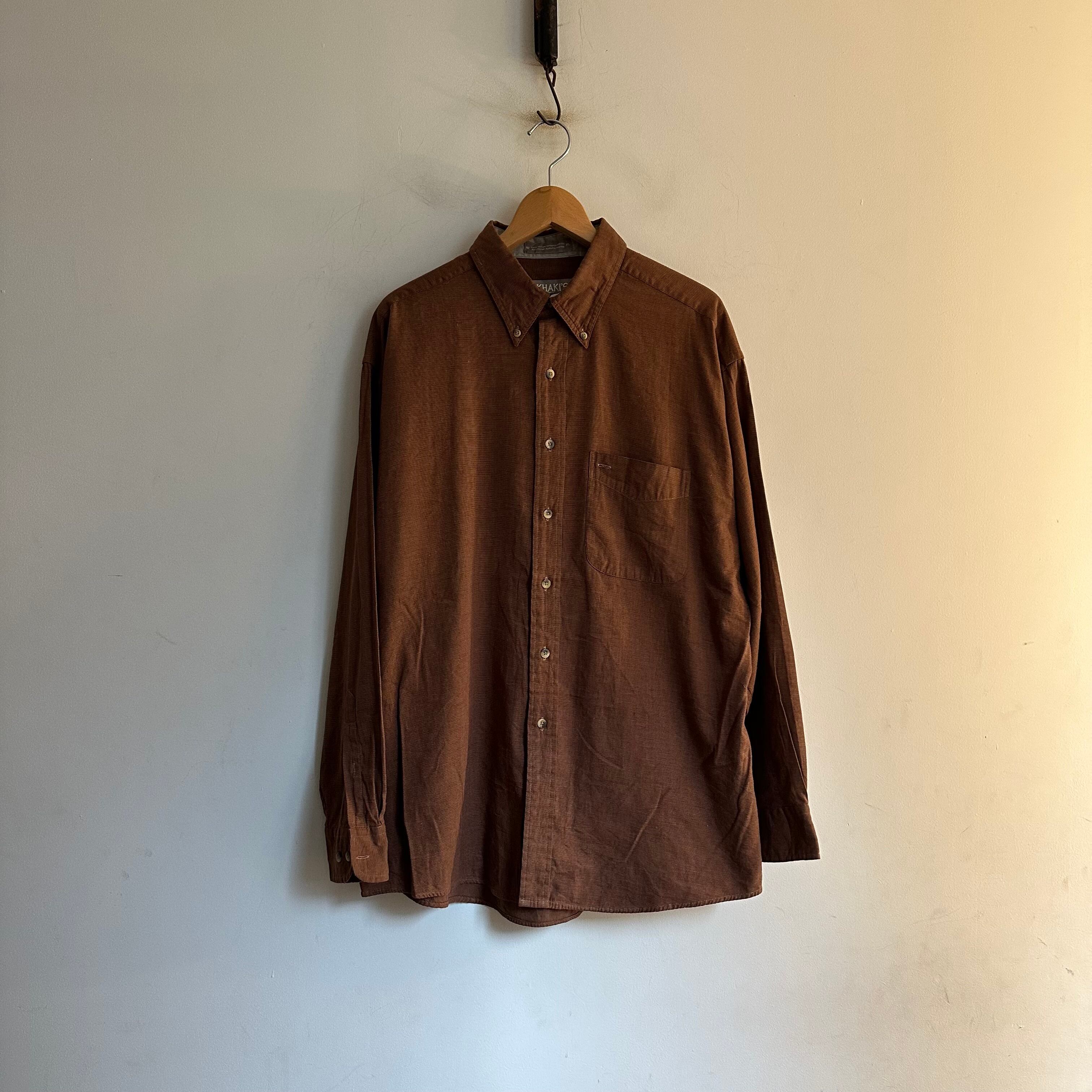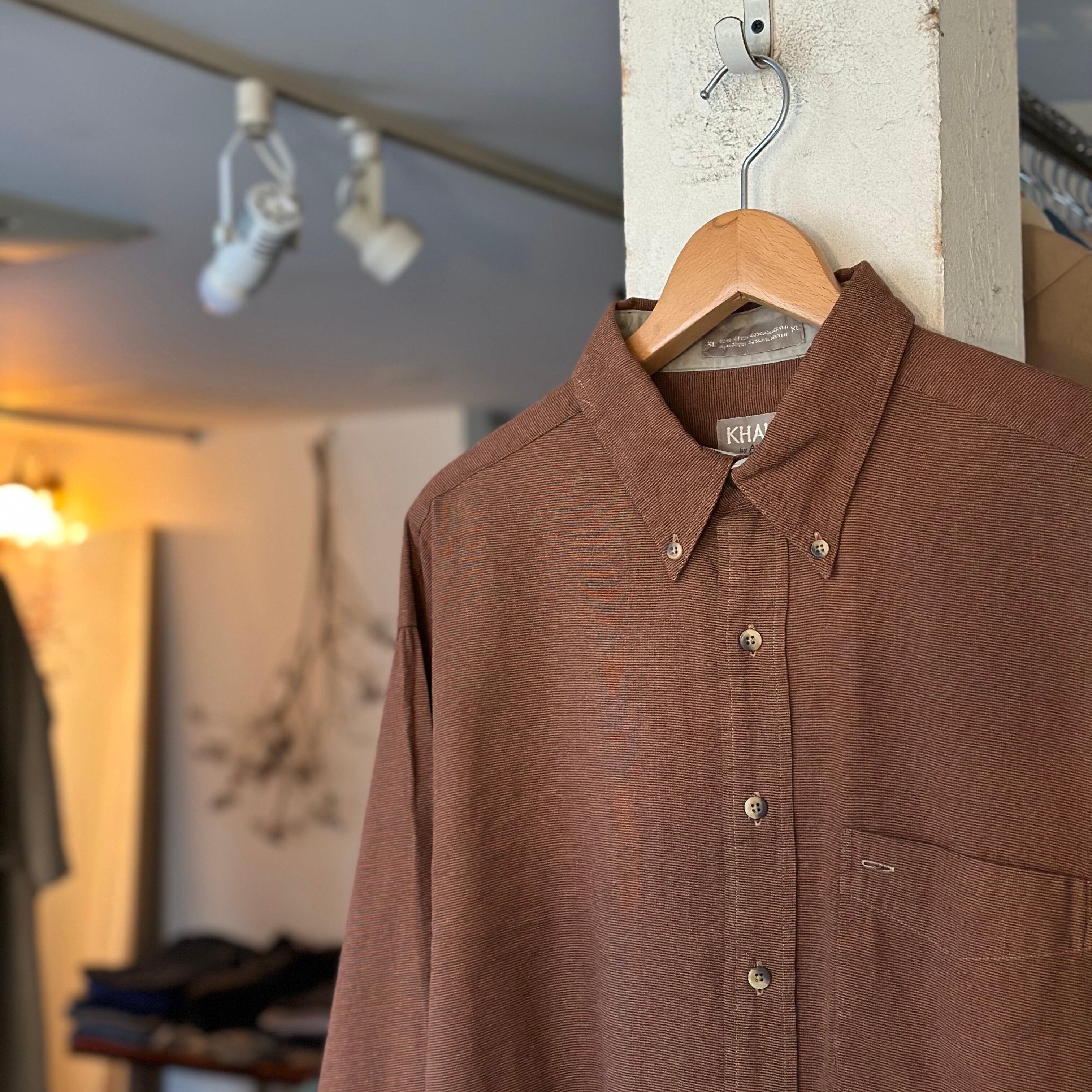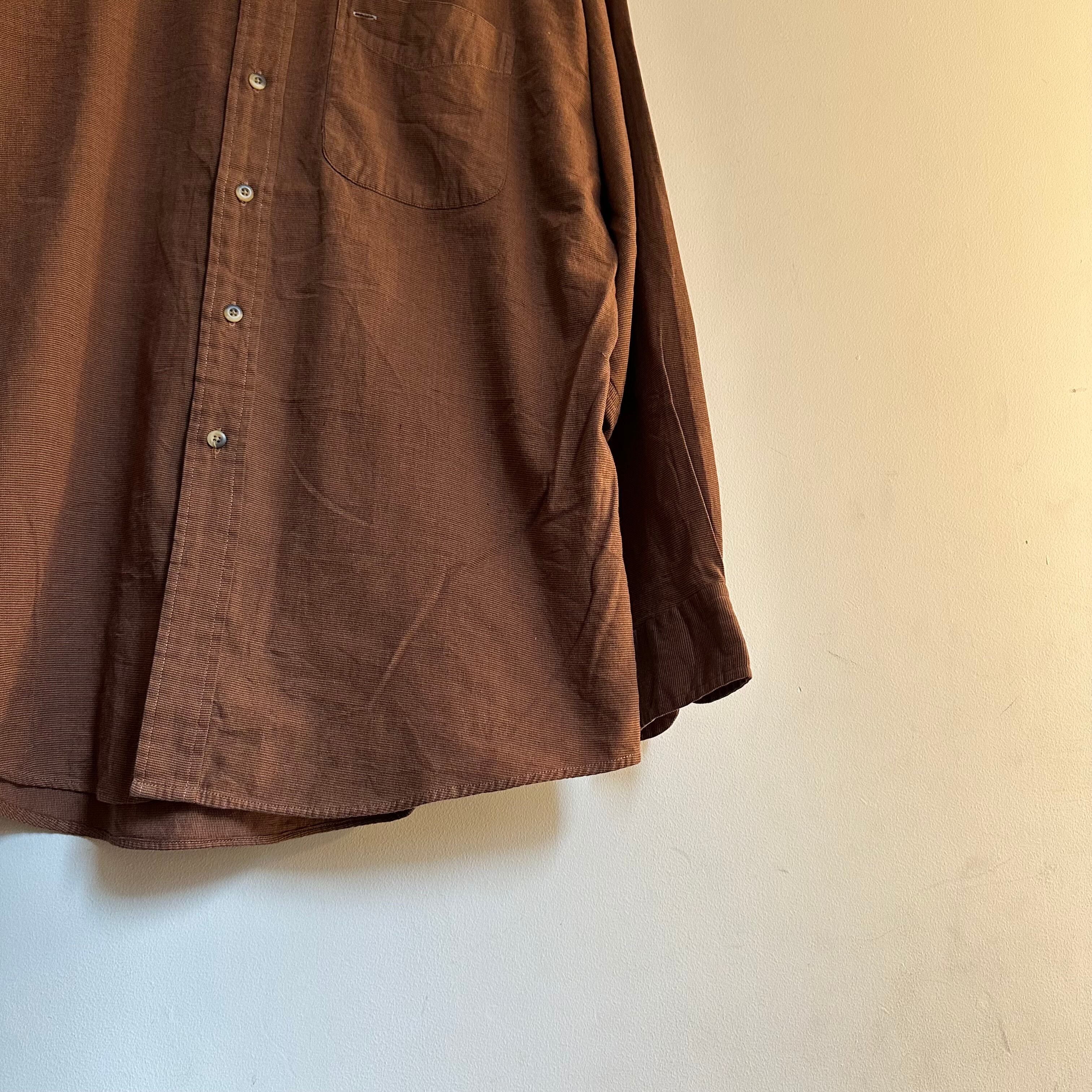 ロングスリーブシャツです。綺麗なブラウン。秋らしい良いトーンですね。幅のある作りで、織りも良いですよ。お好きな方、いかがでしょうか。