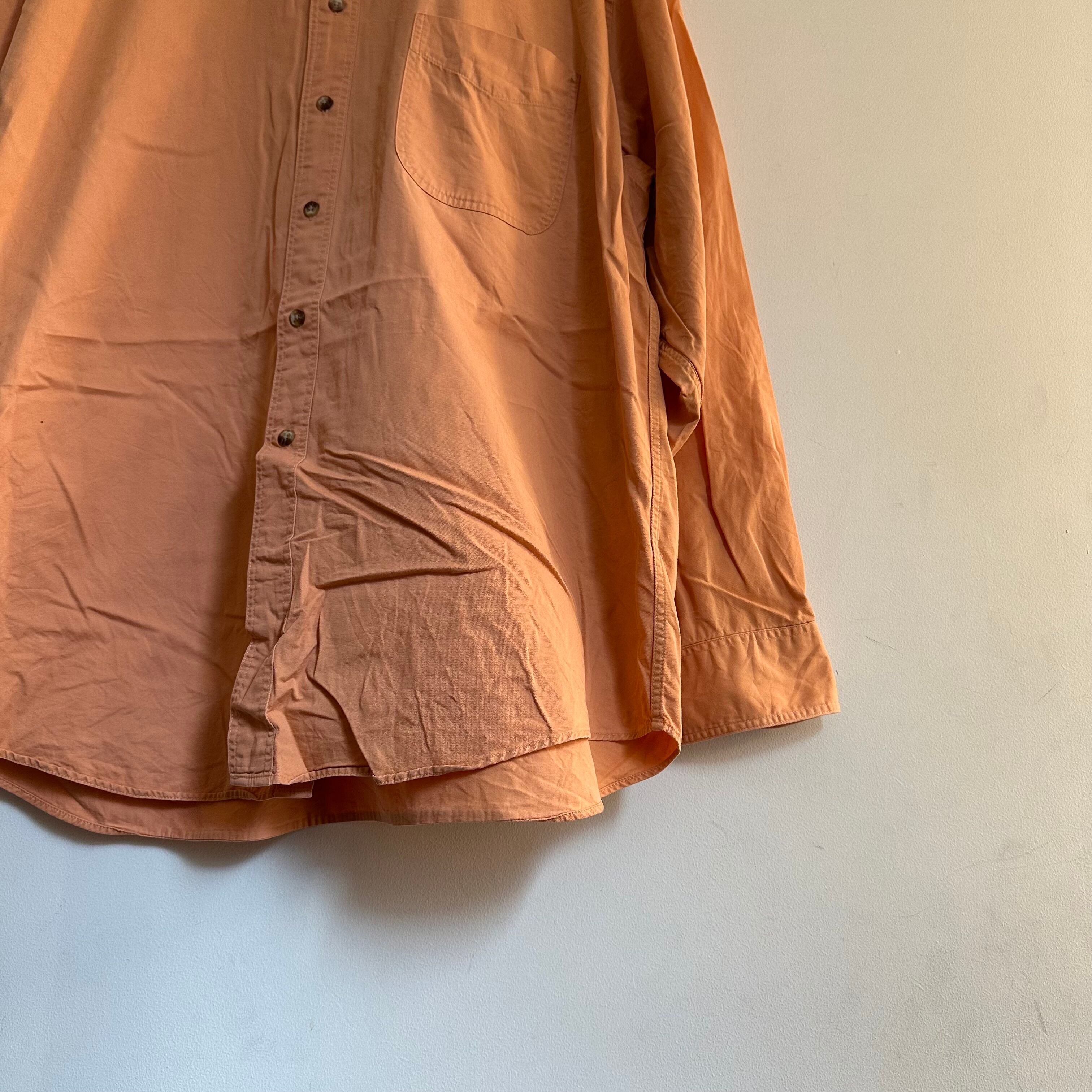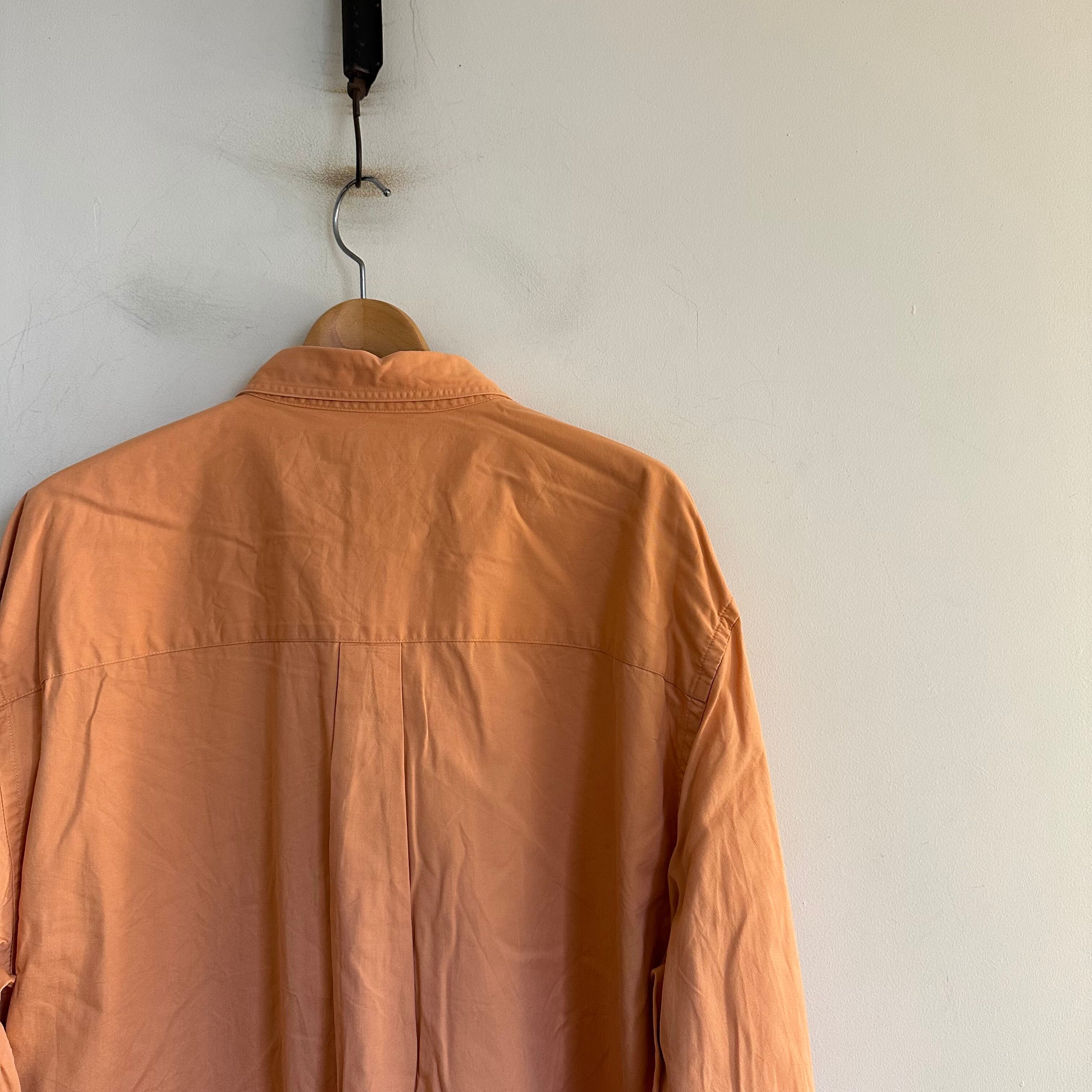ロングスリーブシャツです。程よい厚さのcotton100%生地。サーモンピンクと褪せたオレンジの間みたいな。良いトーンです。お好きな方、いかがでしょうか。