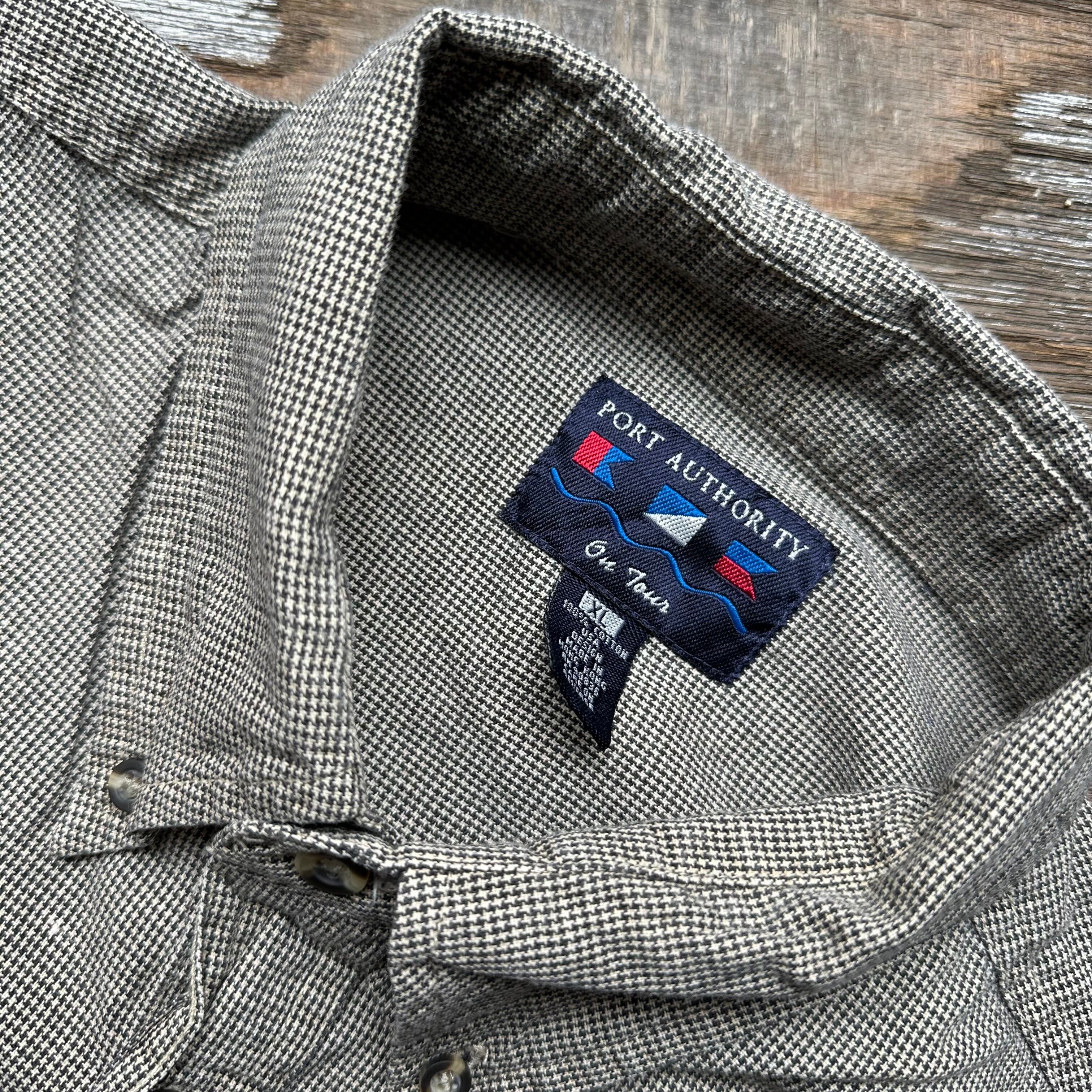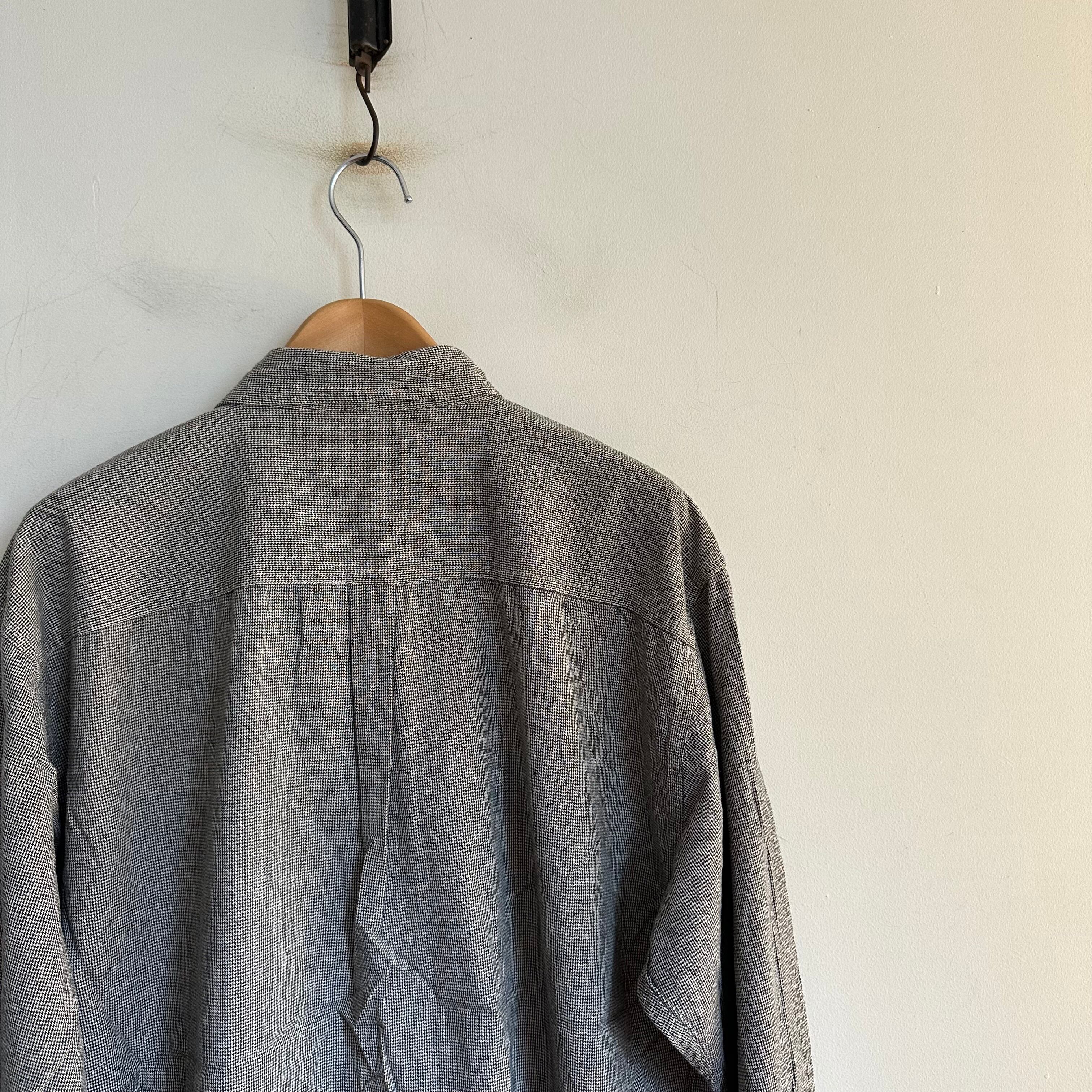 ロングスリーブシャツです。薄手のcotton100%生地。細かい格子柄に胸ワンポイント。落ち着いた印象で使いやすそうです。お好きな方、いかがでしょうか。