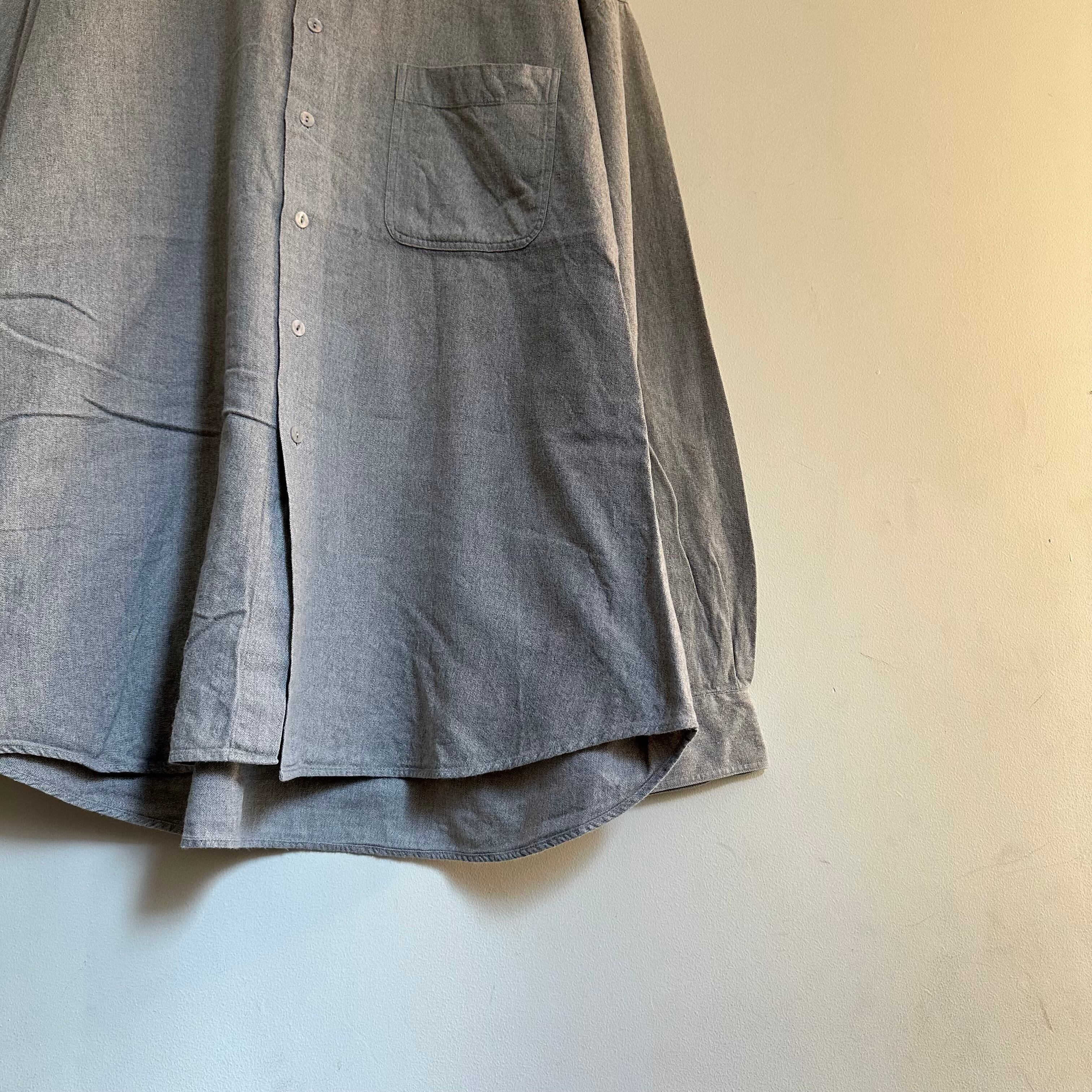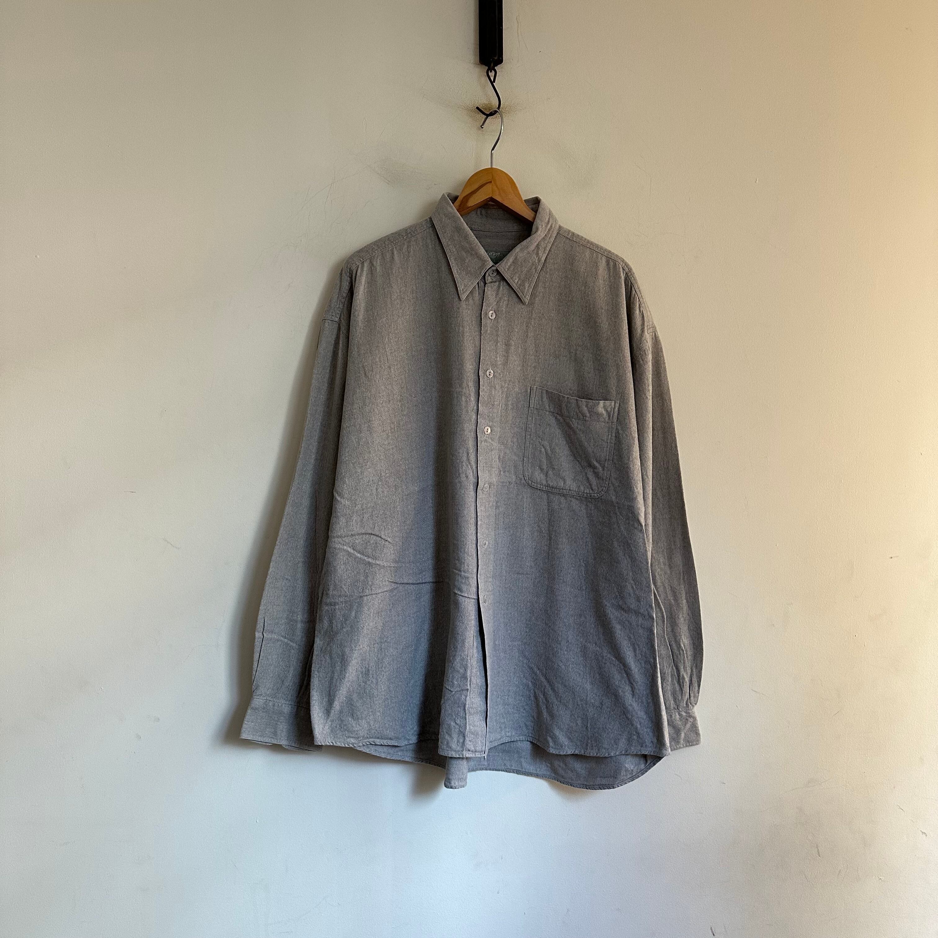 ロングスリーブシャツです。程よい厚さで柔らかなcotton生地。淡いグレーと細かい織りが大人っぽい印象です。緩めのサイズ感で。お好きな方、いかがでしょうか。