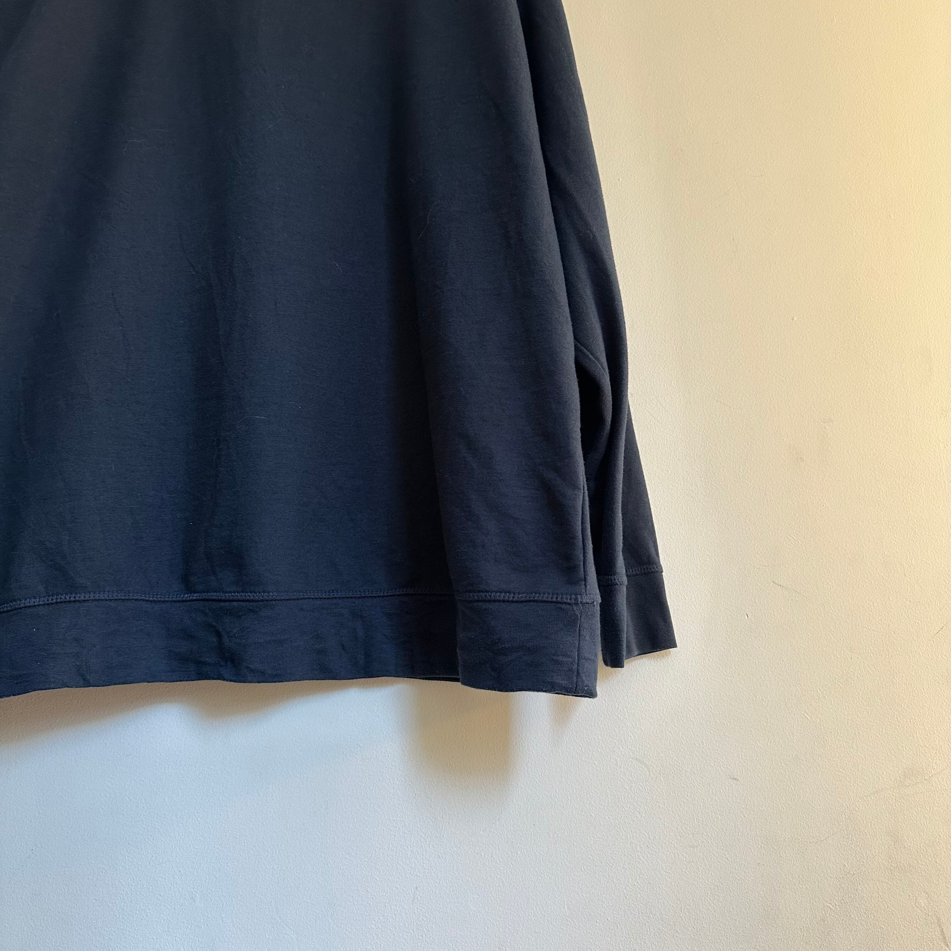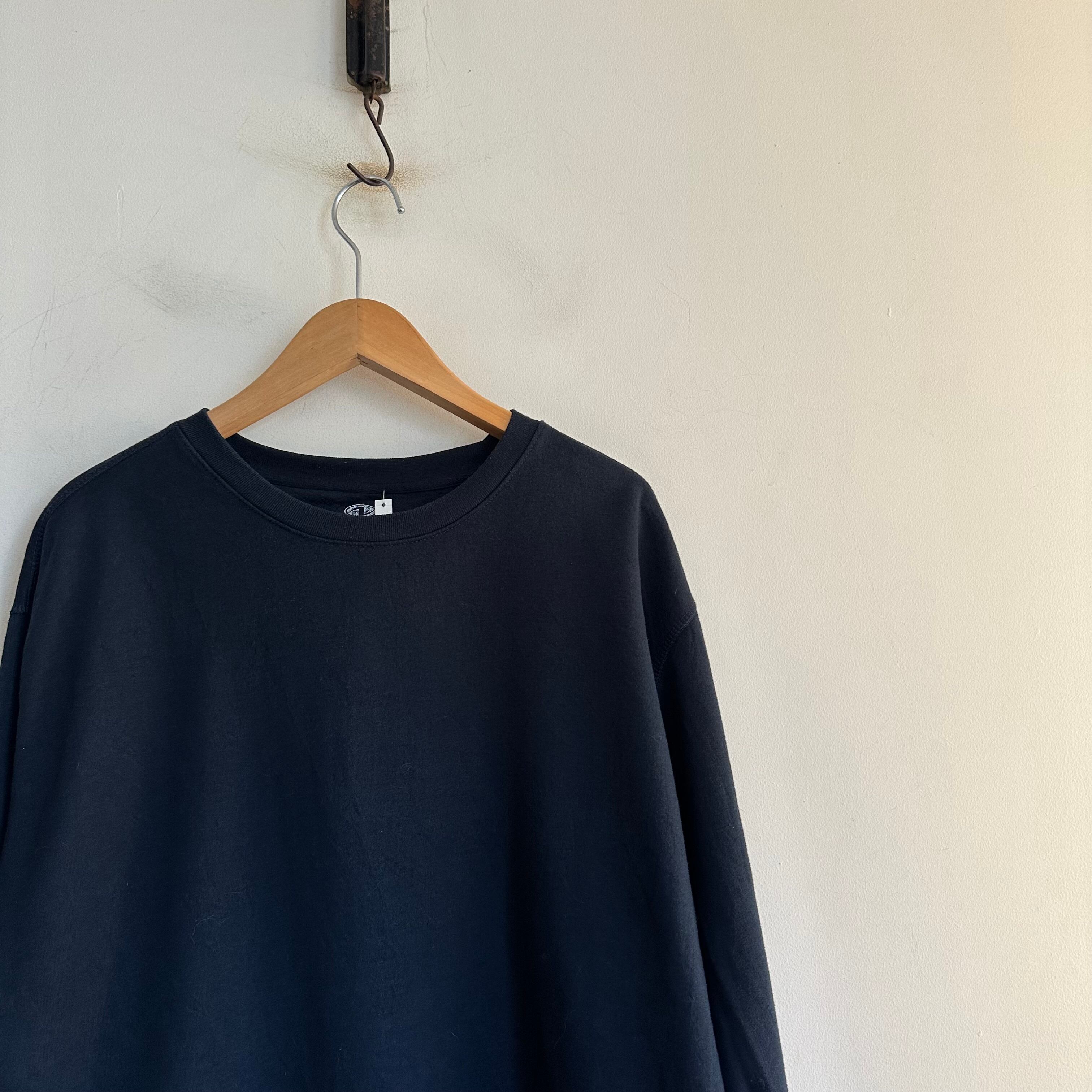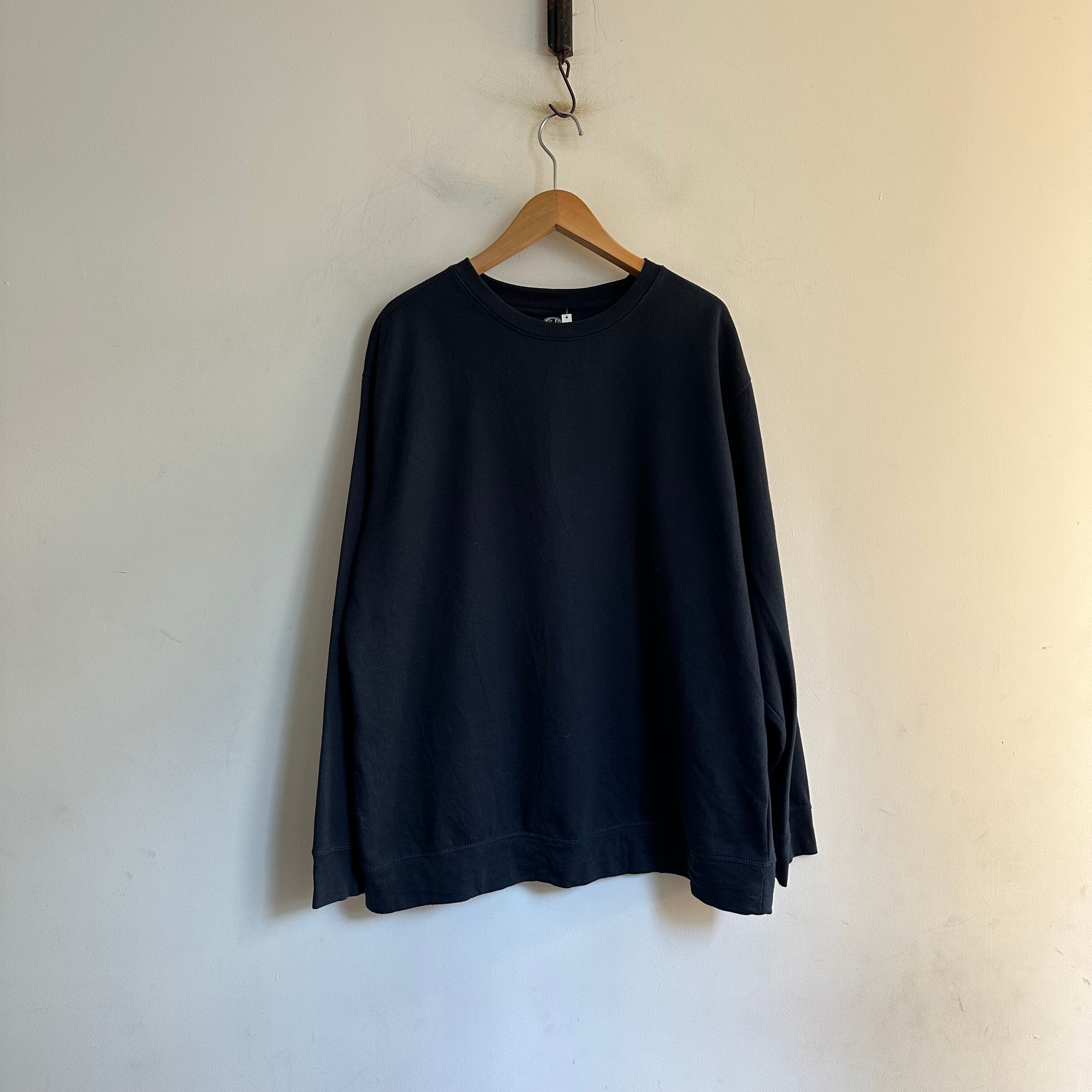 無地スウェットです。黒無地。薄手のスウェット。ロンT感覚で、少しだけボリュームだして。良いですよ。お好きな方、いかがでしょうか。