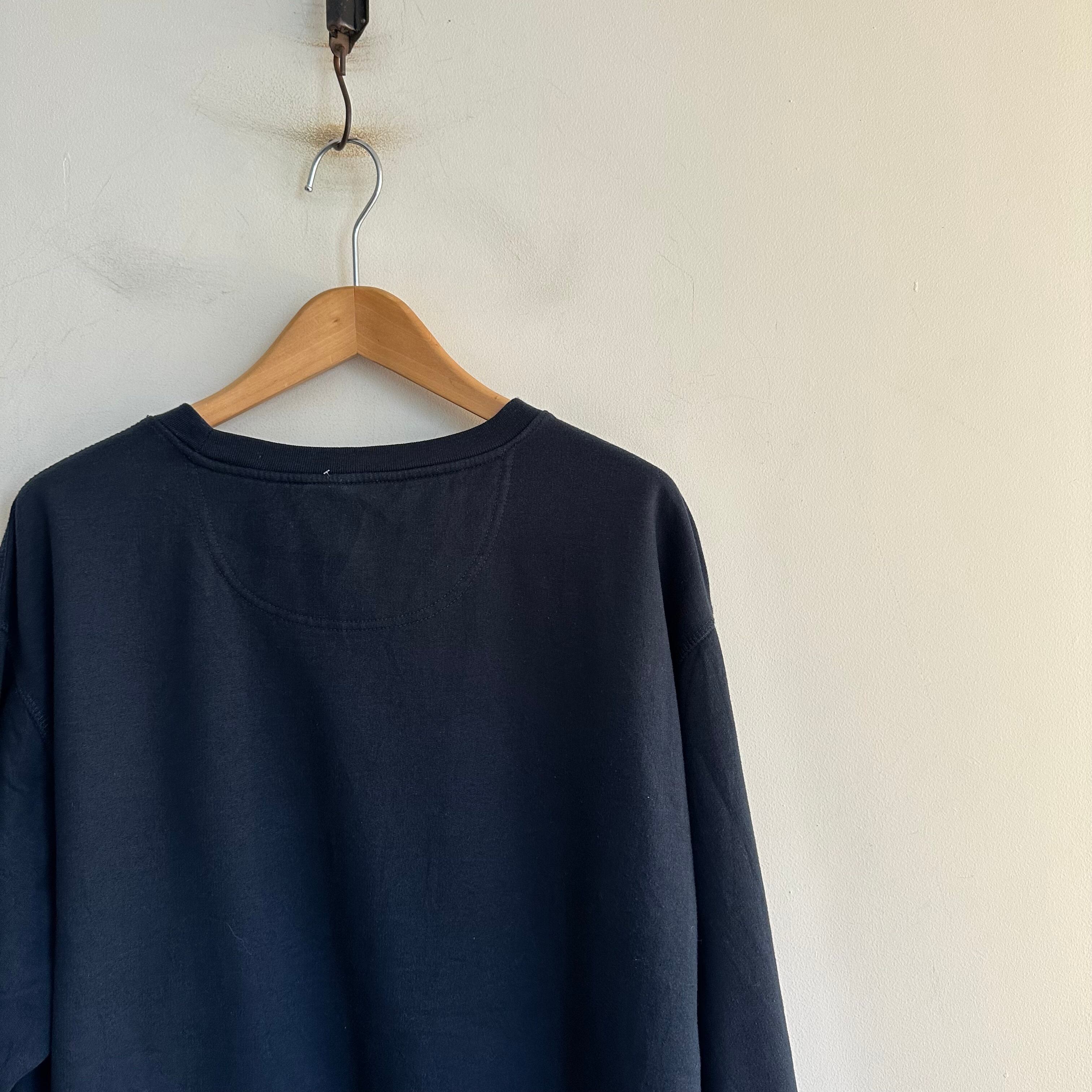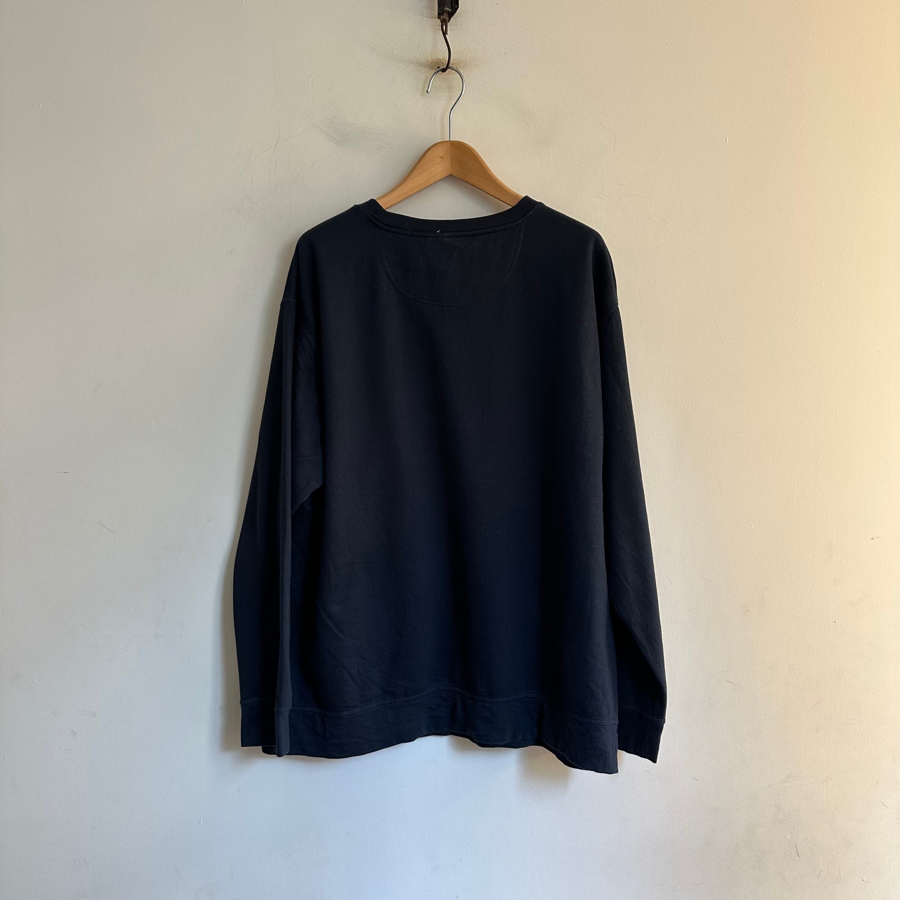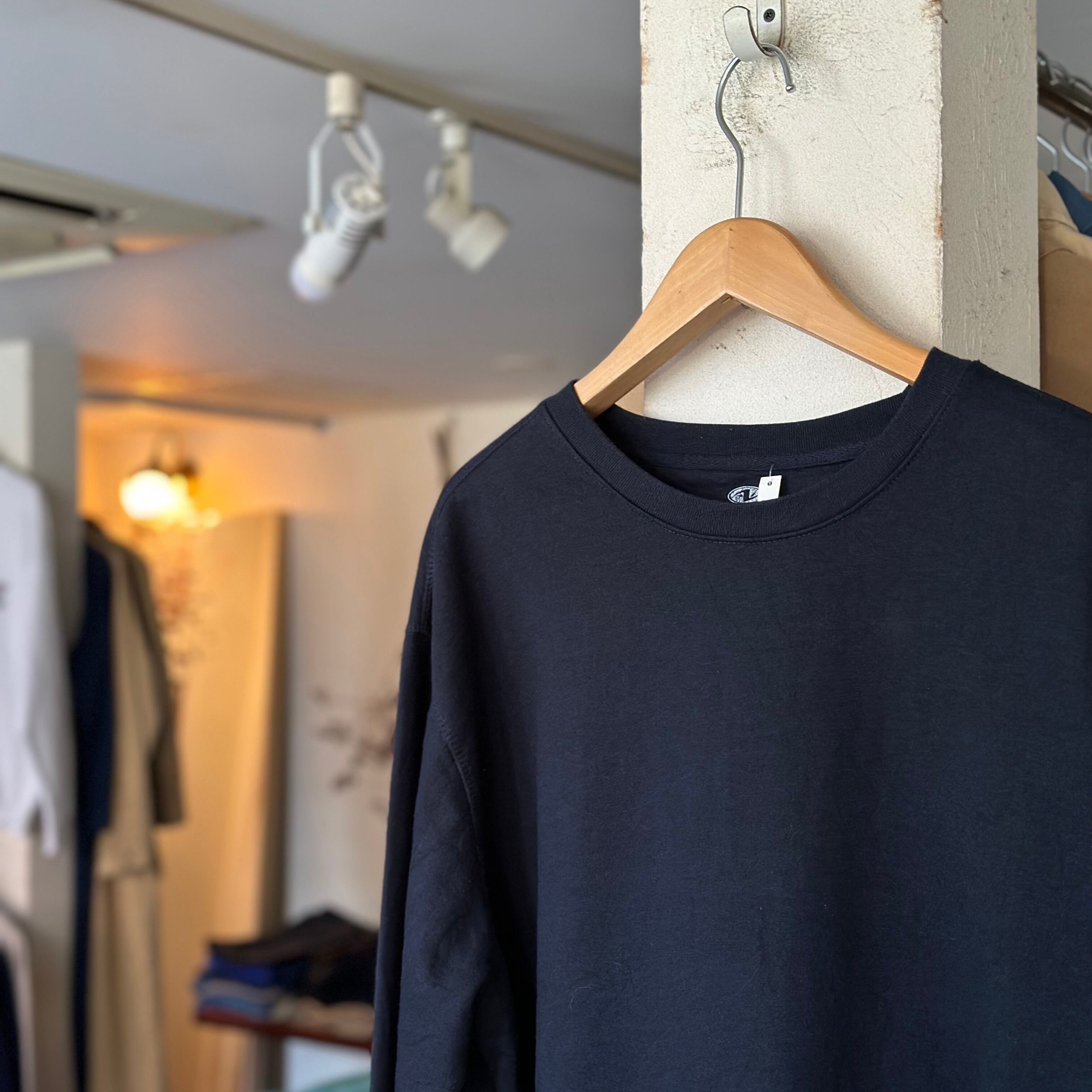 無地スウェットです。黒無地。薄手のスウェット。ロンT感覚で、少しだけボリュームだして。良いですよ。お好きな方、いかがでしょうか。