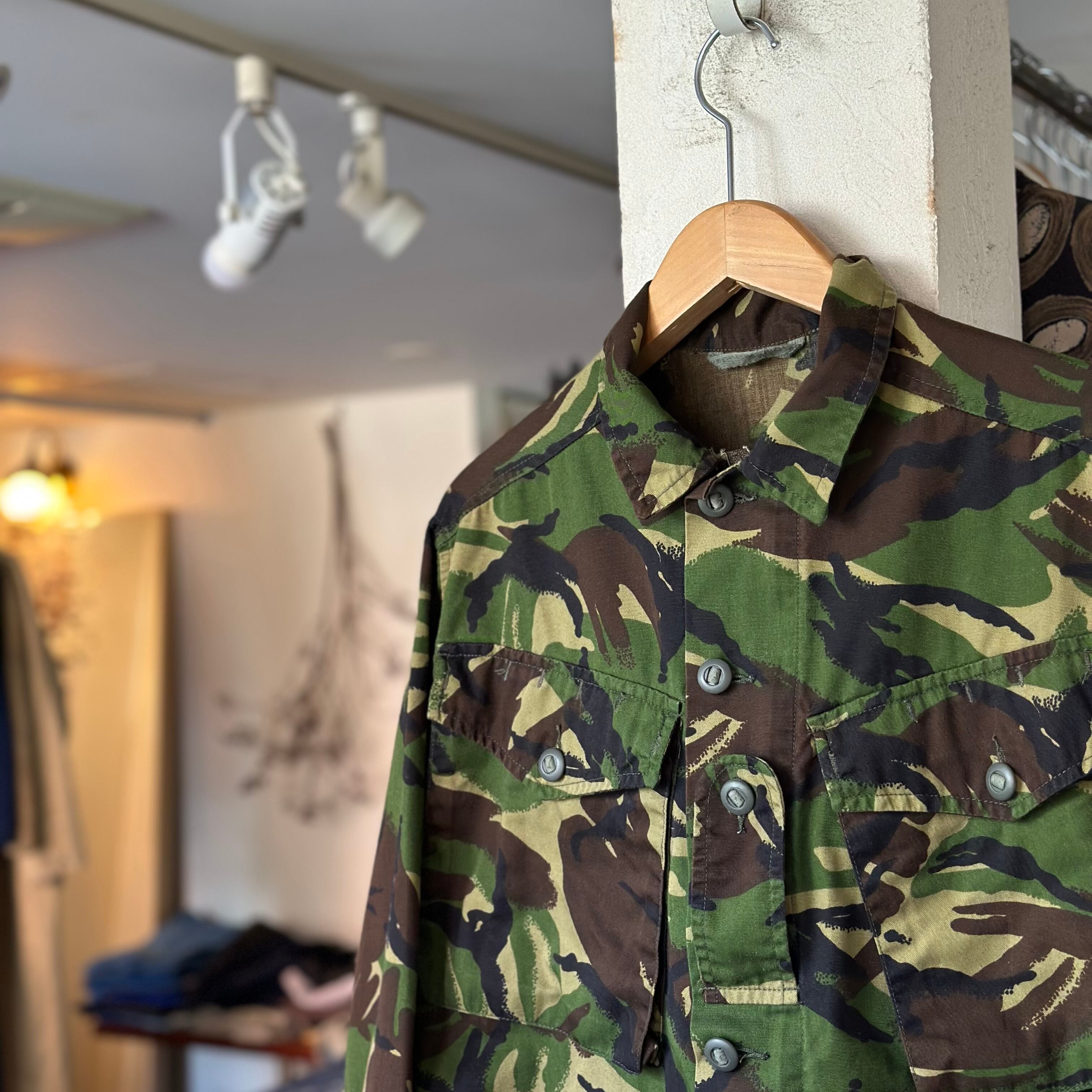 ユーロミリタリージャケットです。イギリスの迷彩。程よく薄手の生地感。zipにボタン。シャツジャケ感覚で。お好きな方、いかがでしょうか。