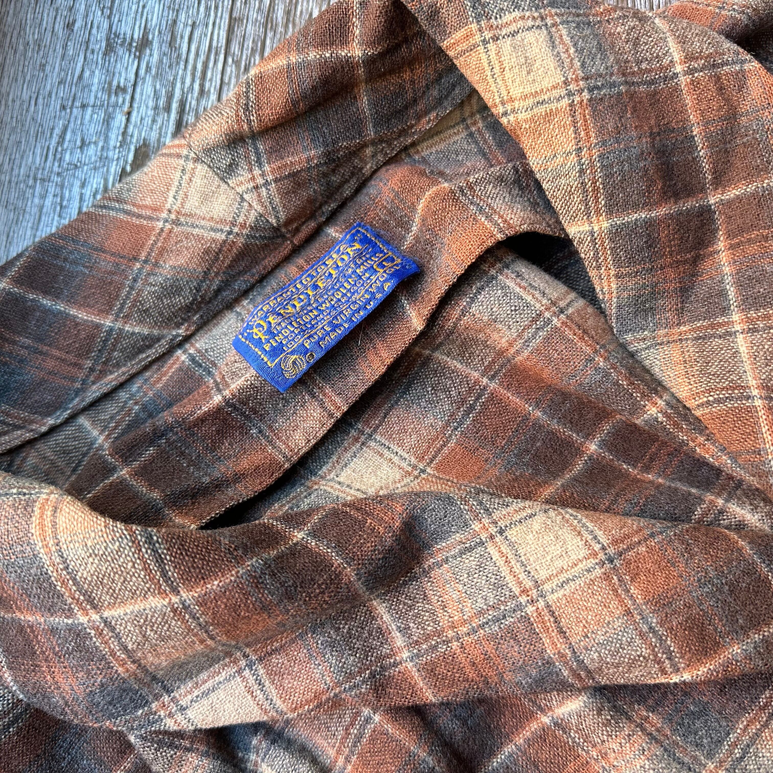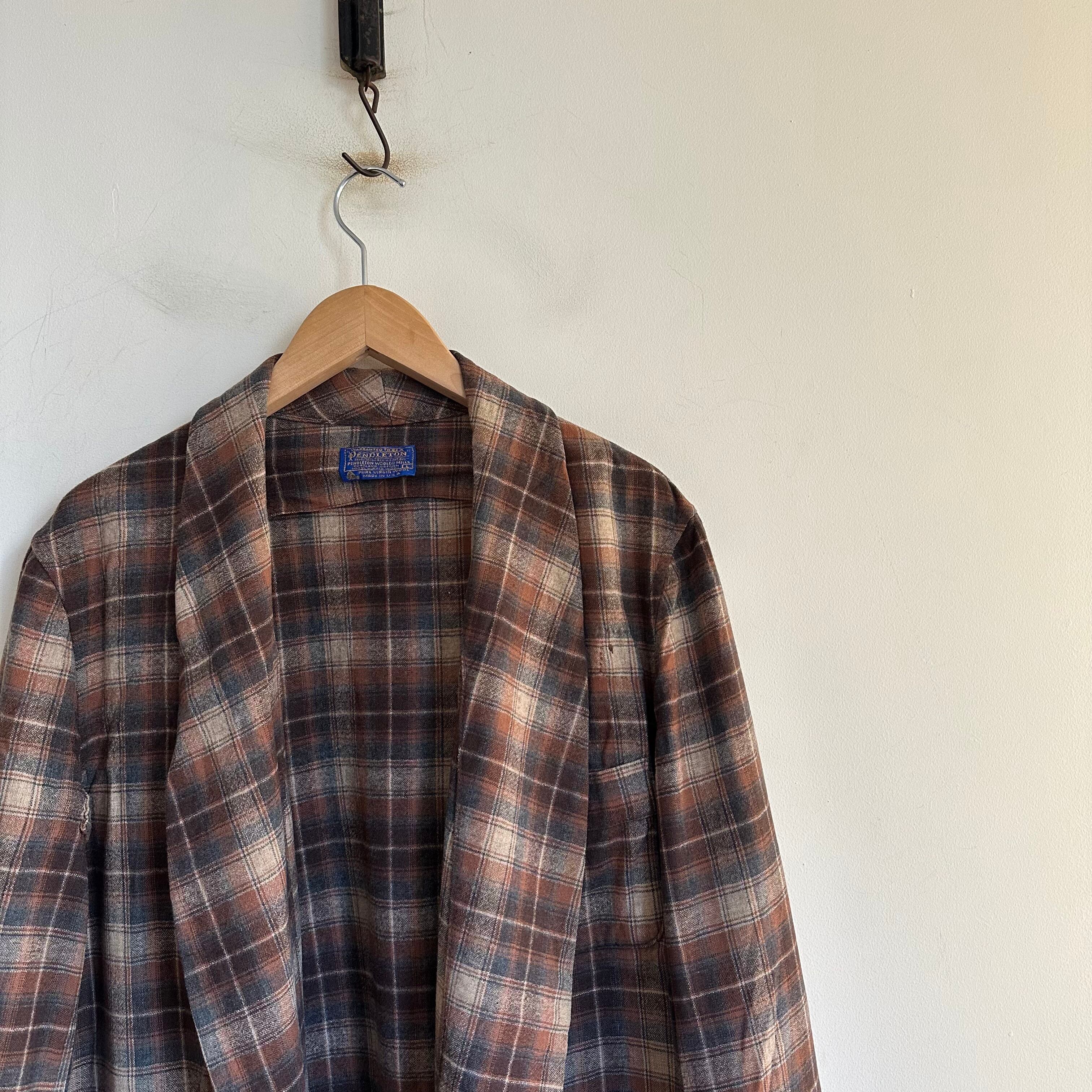 70sのPENDLETONのガウンです。ブラウンベースのシャドーチェック。良い色です。さらっと。お好きな方、いかがでしょうか。