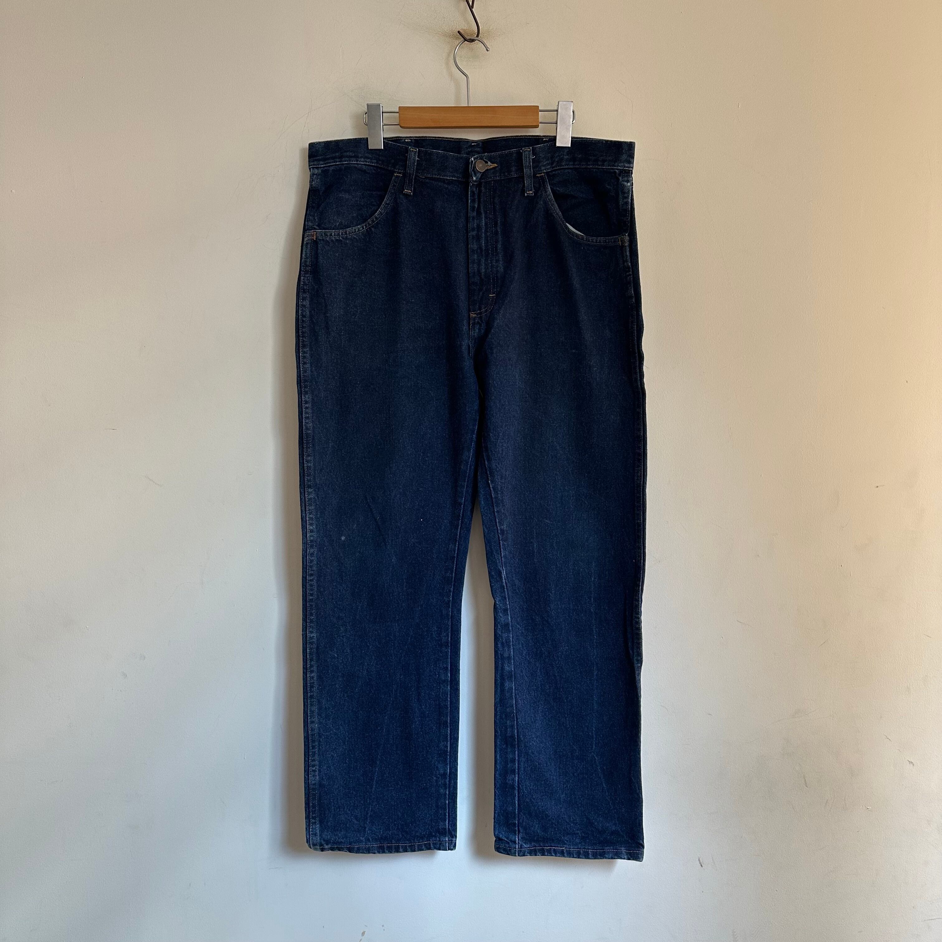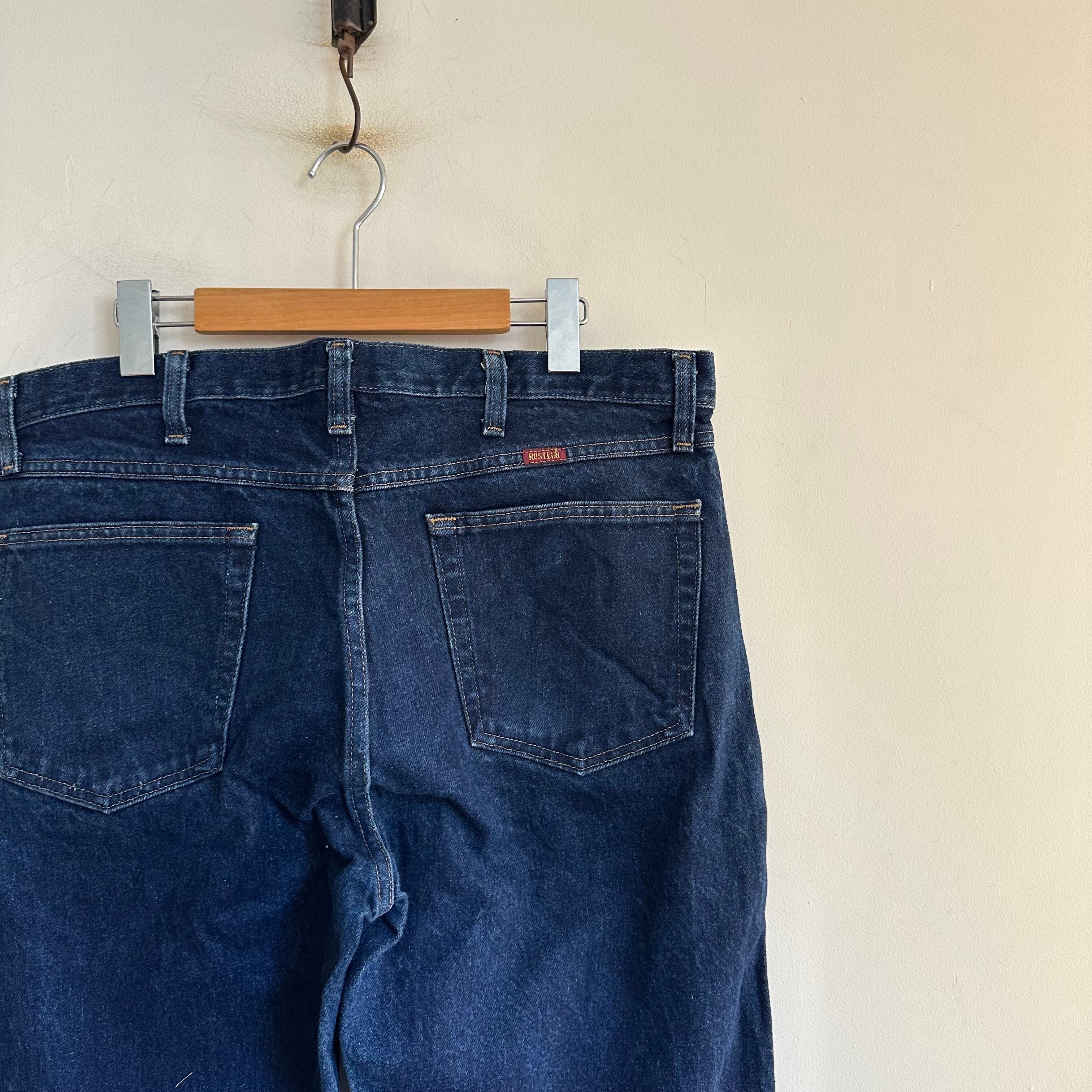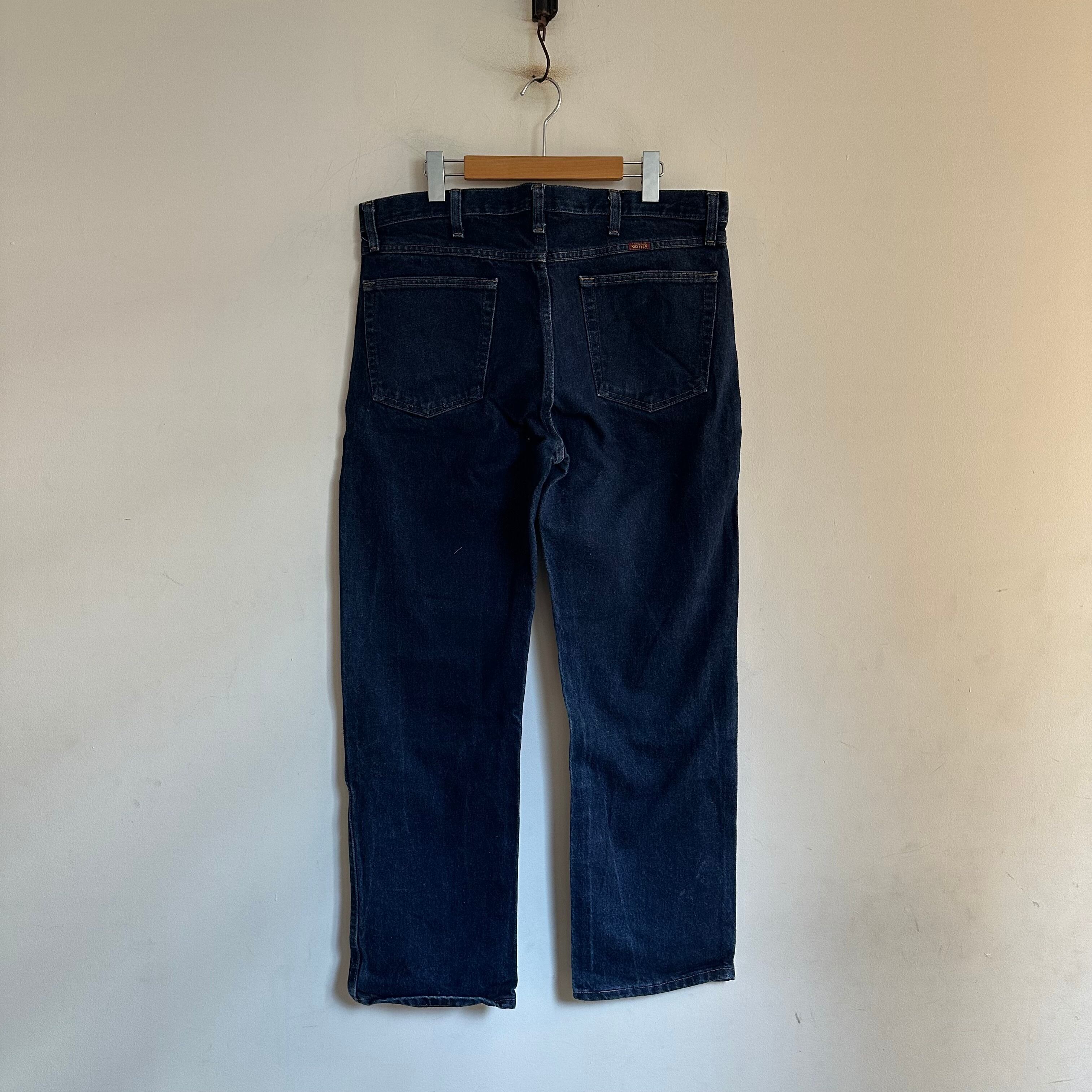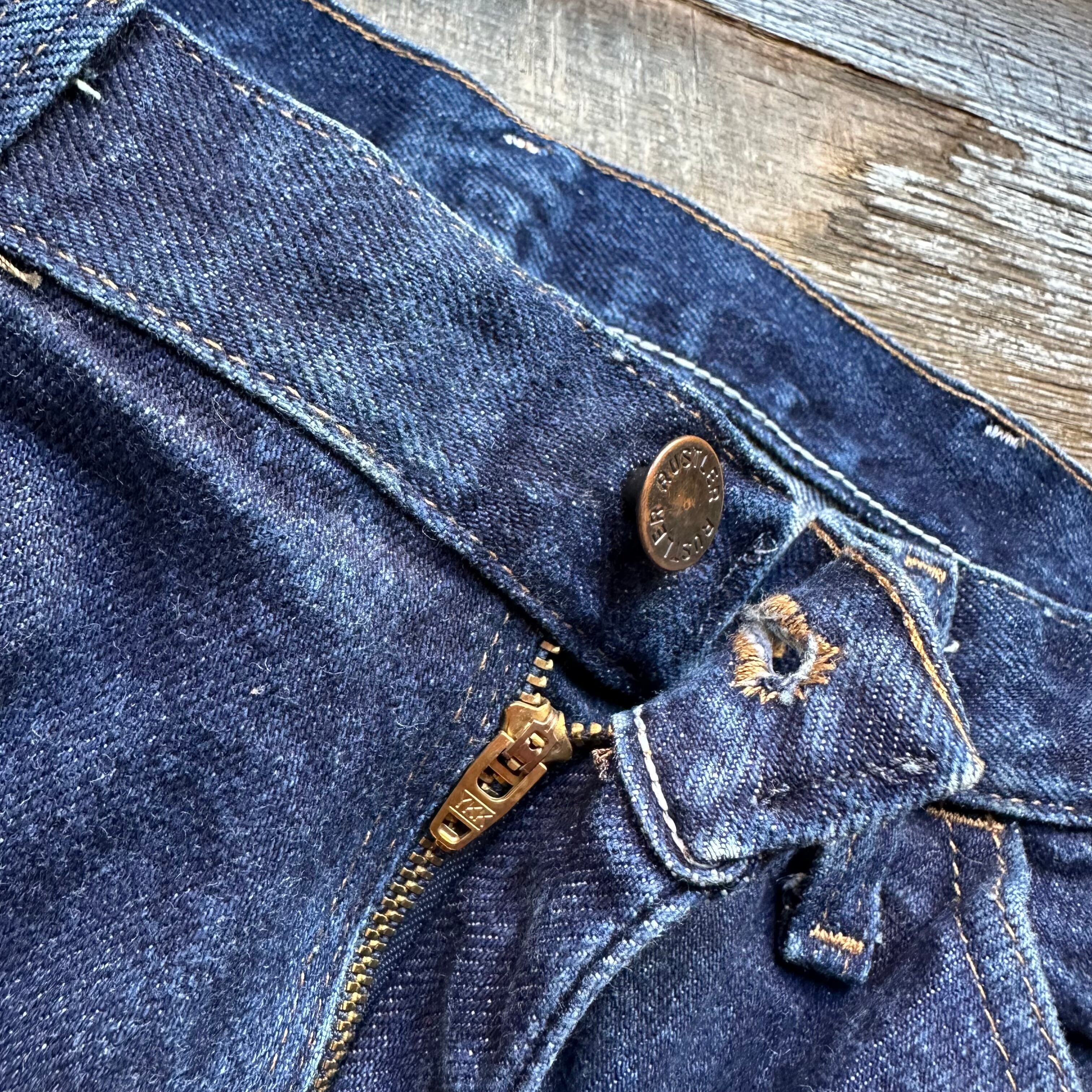 RUSTLERブルーデニムです。黒紺くらい濃い濃いの濃紺デニム。0から自分で。そんな感じです。サイズも良いですよ。お好きな方、いかがでしょうか。