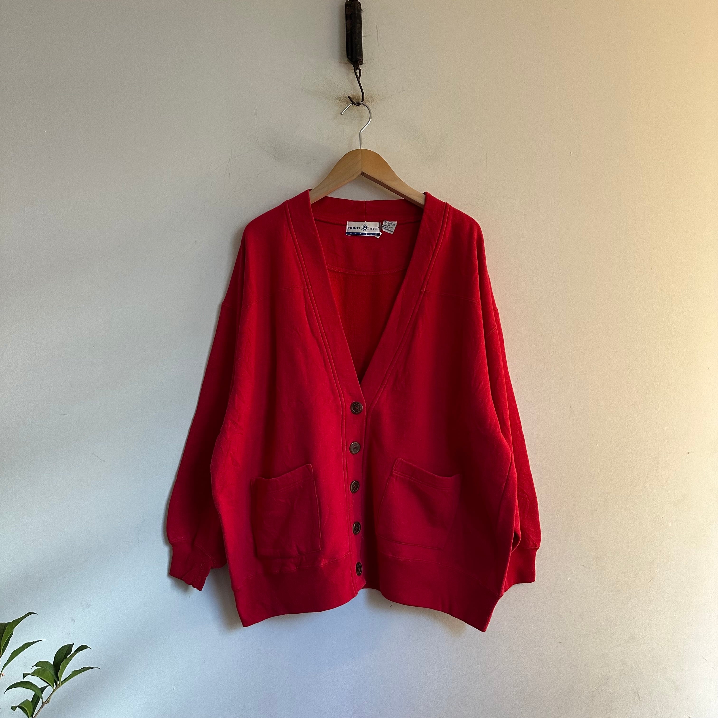 スウェットです。探すと見かけないカーディガンtype。合わせ逆ですが、メンズもいけるアップサイズです。お好きな方、いかがでしょうか。