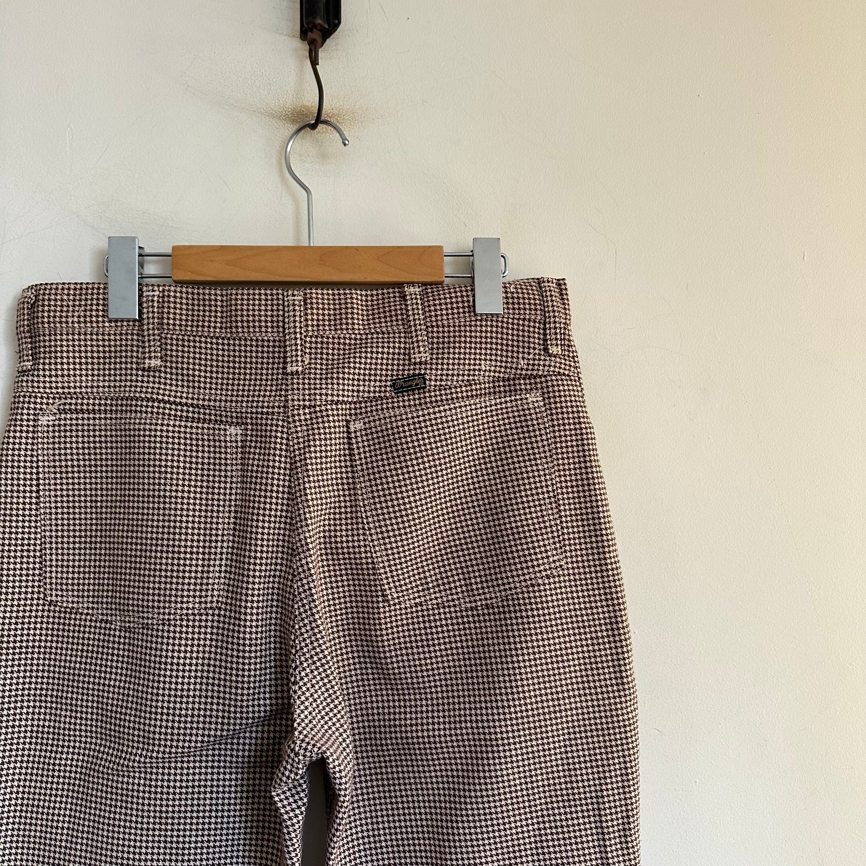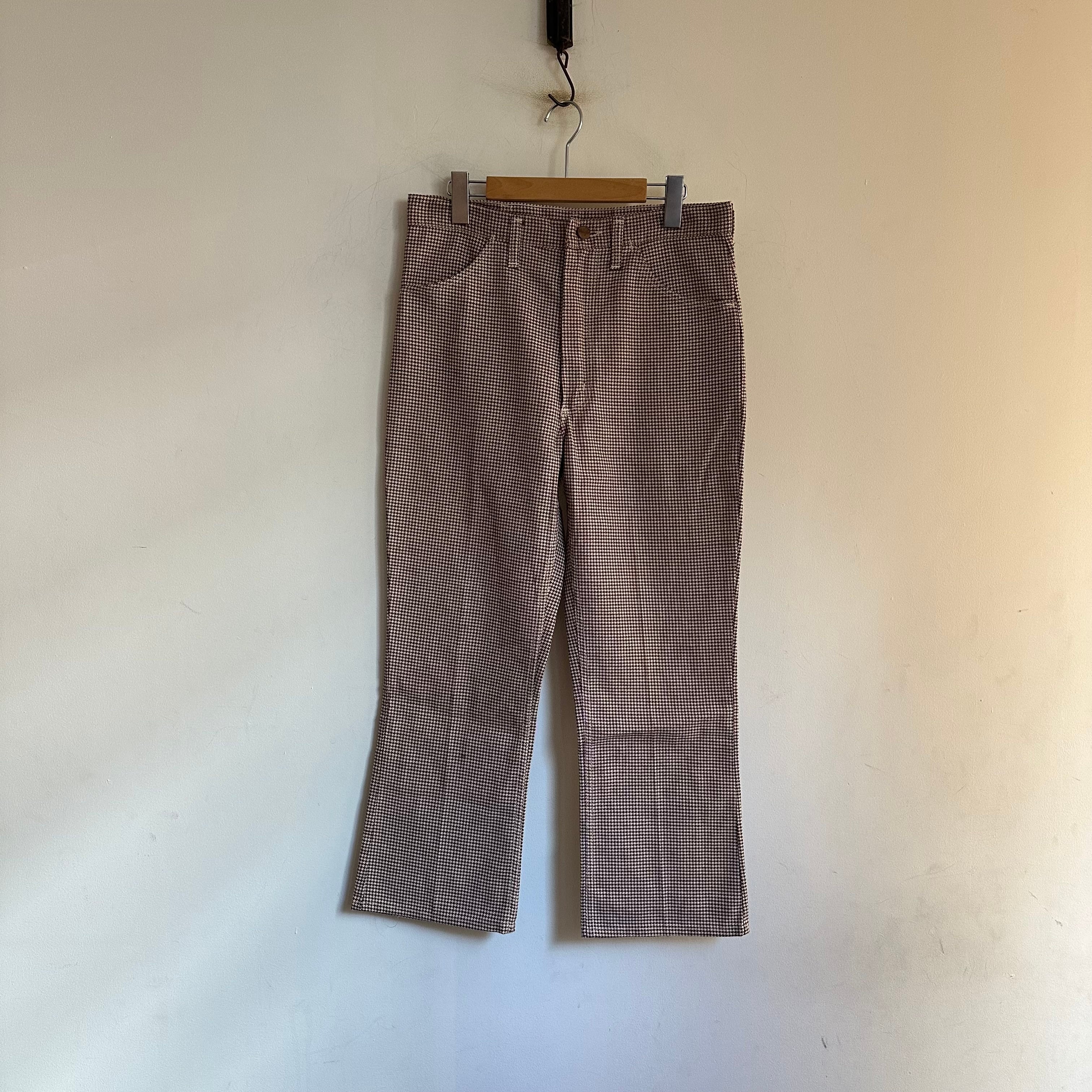 wranglerのスラックスです。ブラウン×ホワイトの千鳥格子柄。洒落てますね。裾上げされてますが、履きやすいシルエットになってると思います。サイズ合う方、いかがでしょうか。
