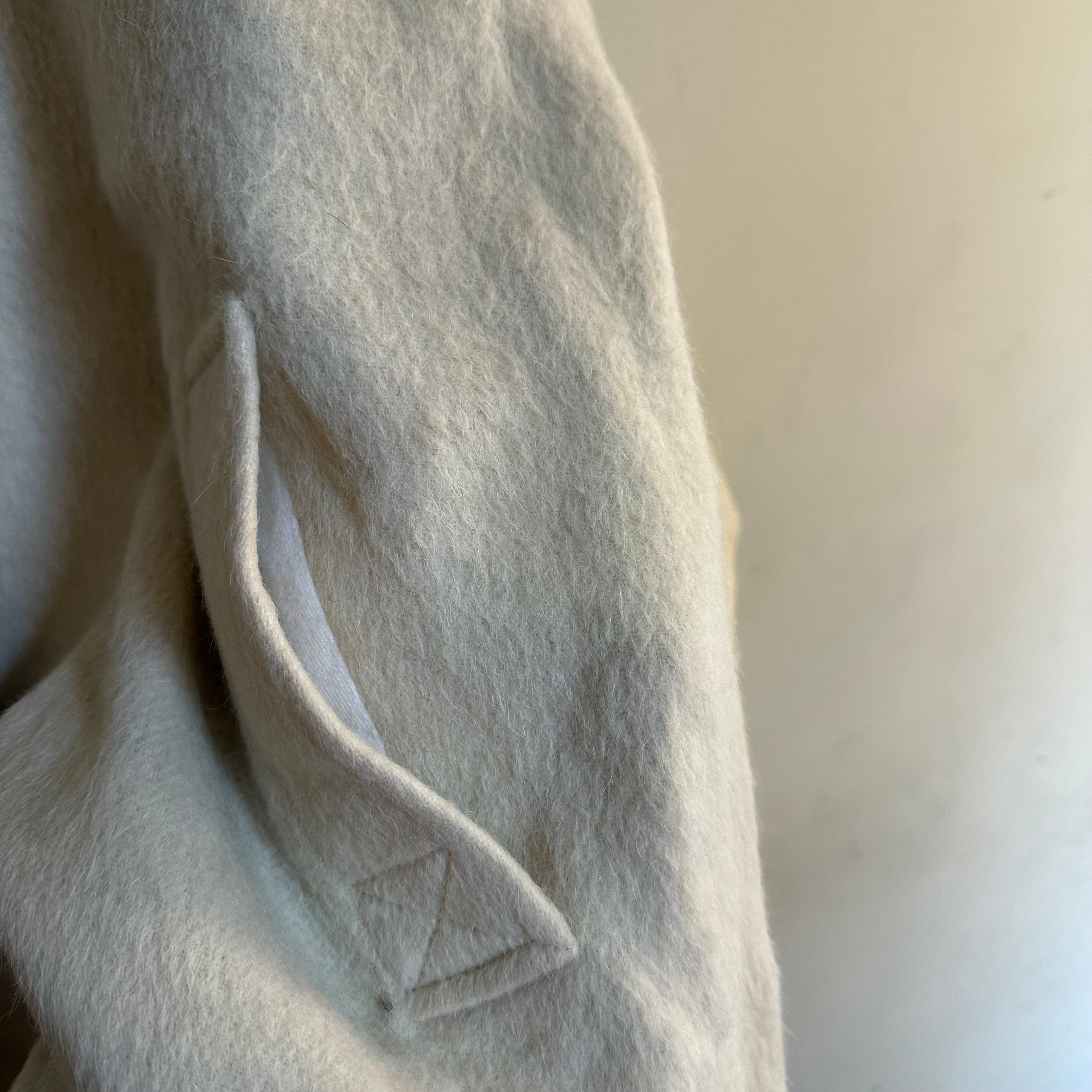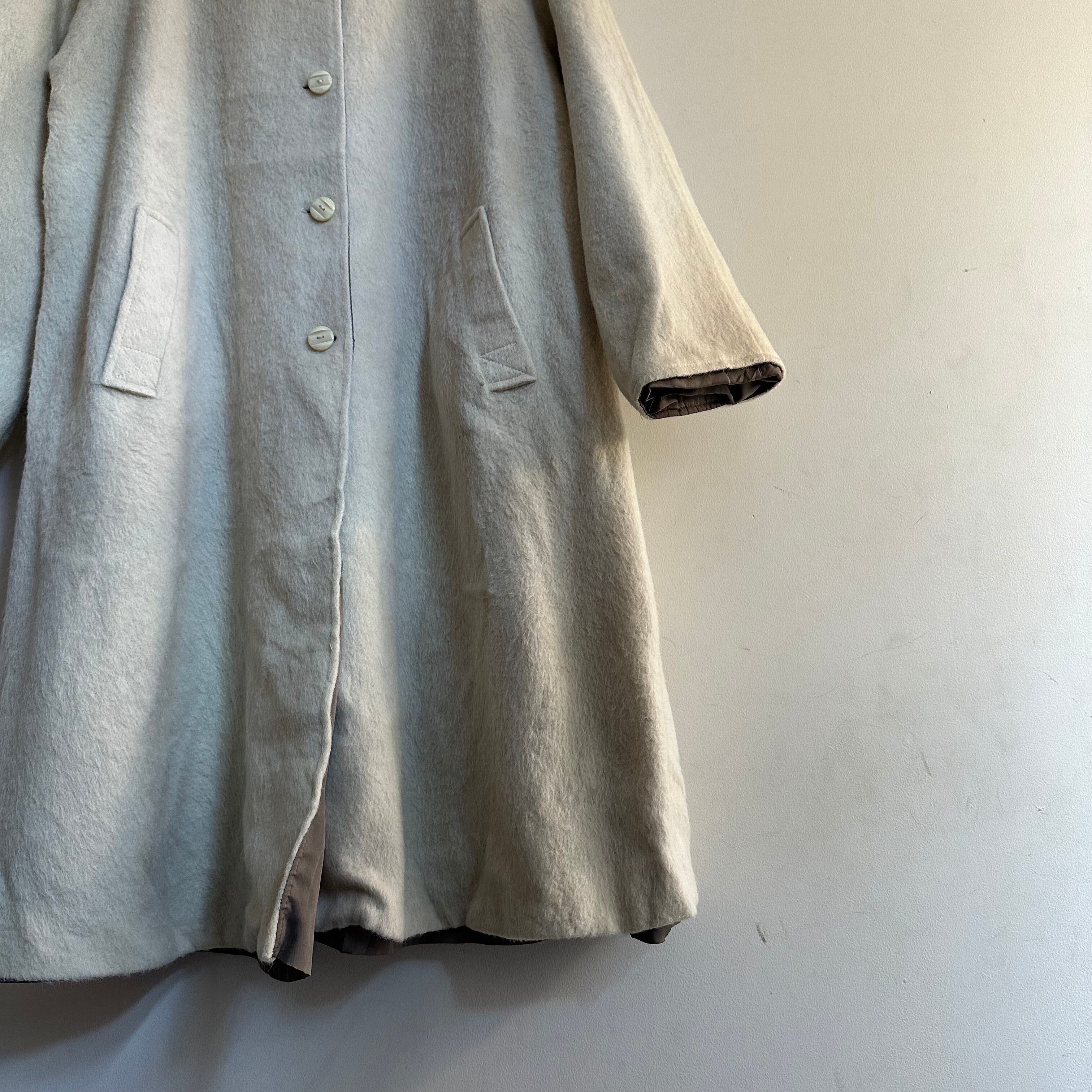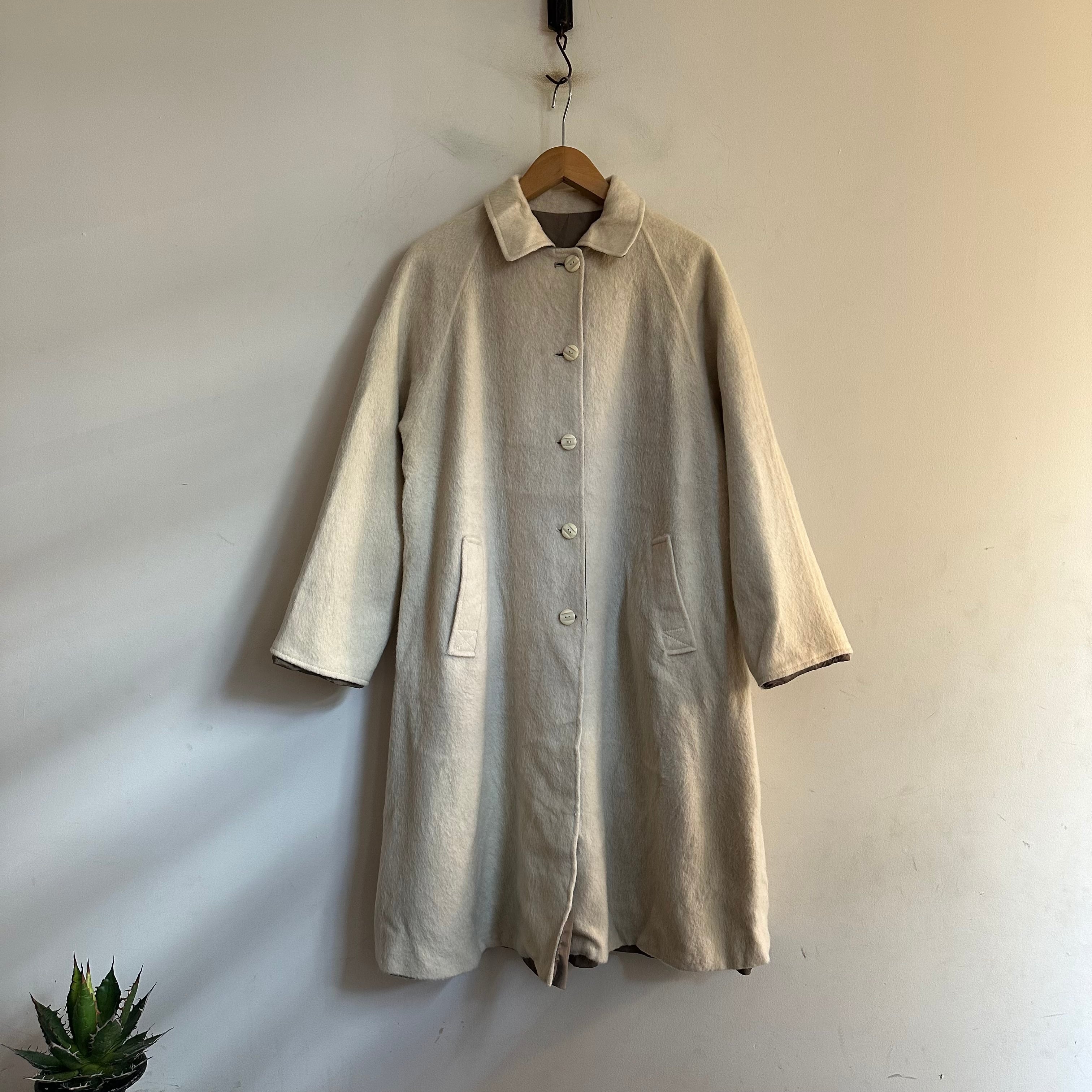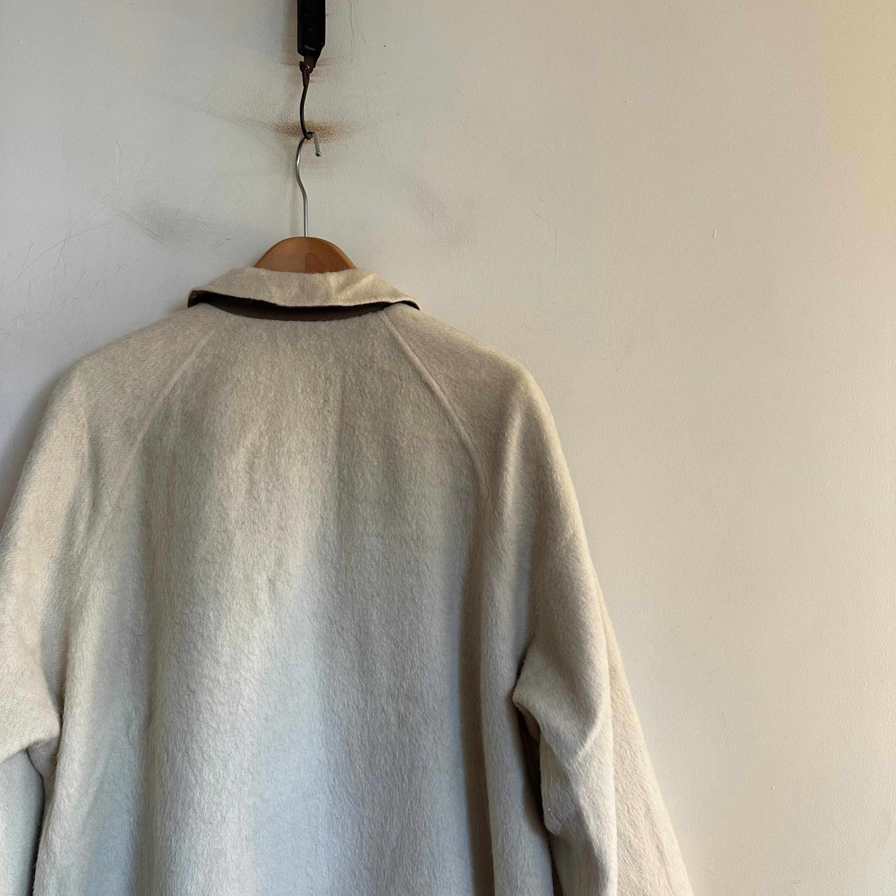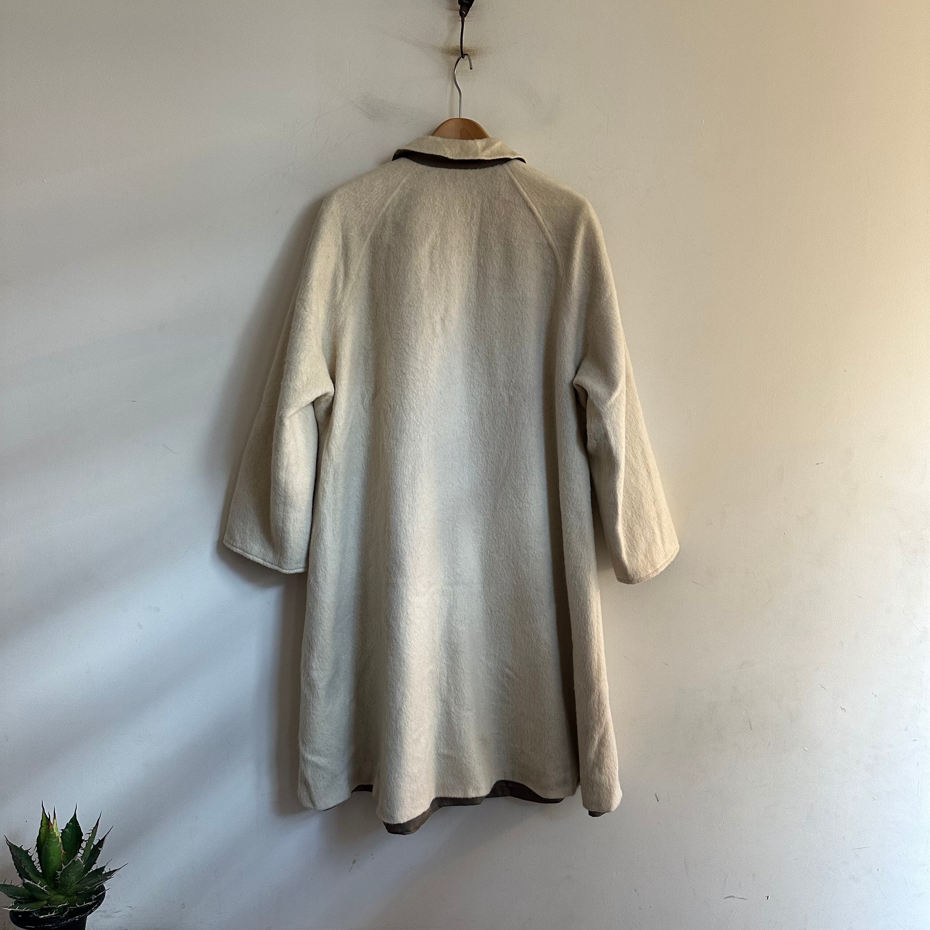リバーシブルのウールコートです。madeinFrance。毛足長めの白ウール。良いですね。レディース合わせですが、ギリギリメンズもいけるサイズかなと思います。お好きな方、いかがでしょうか。