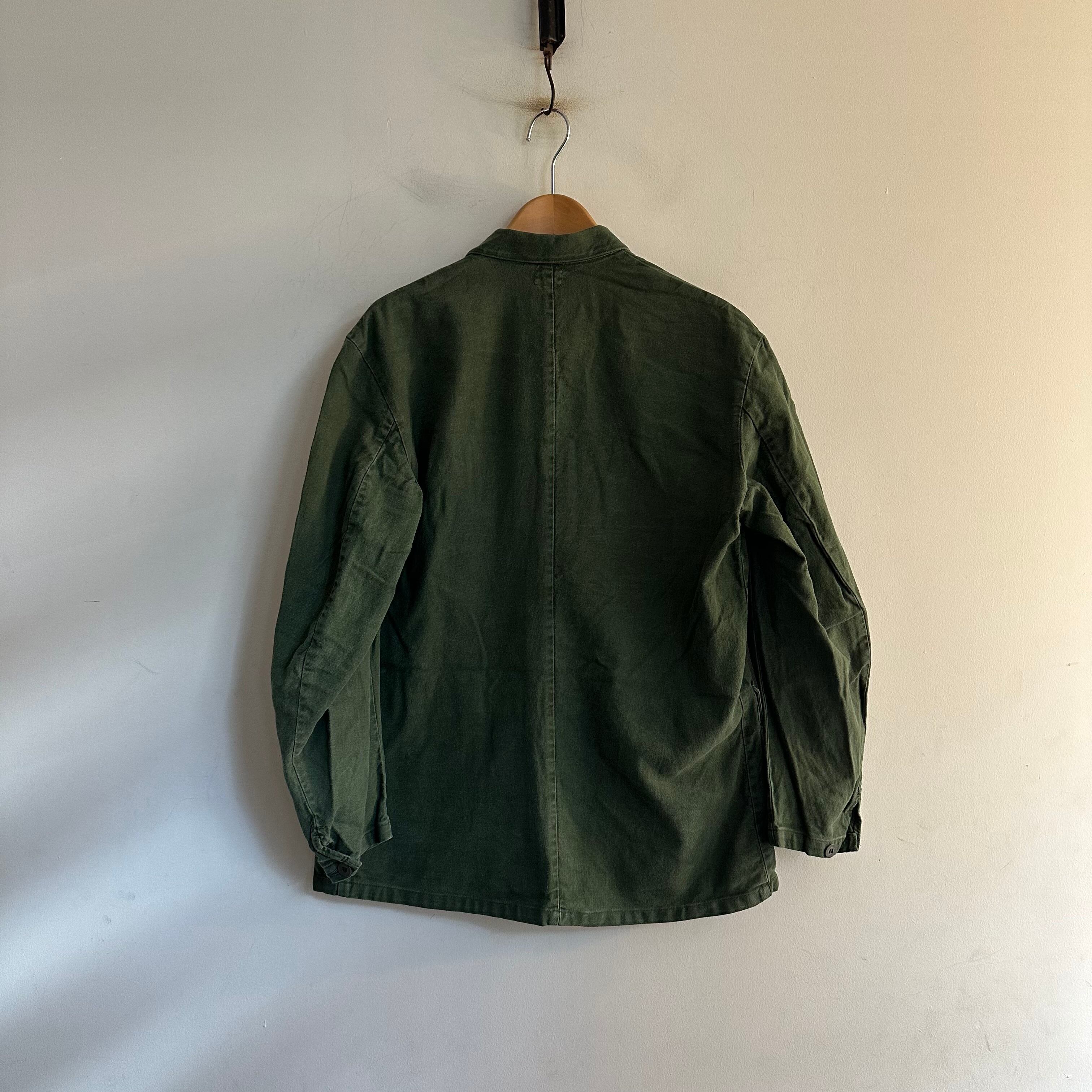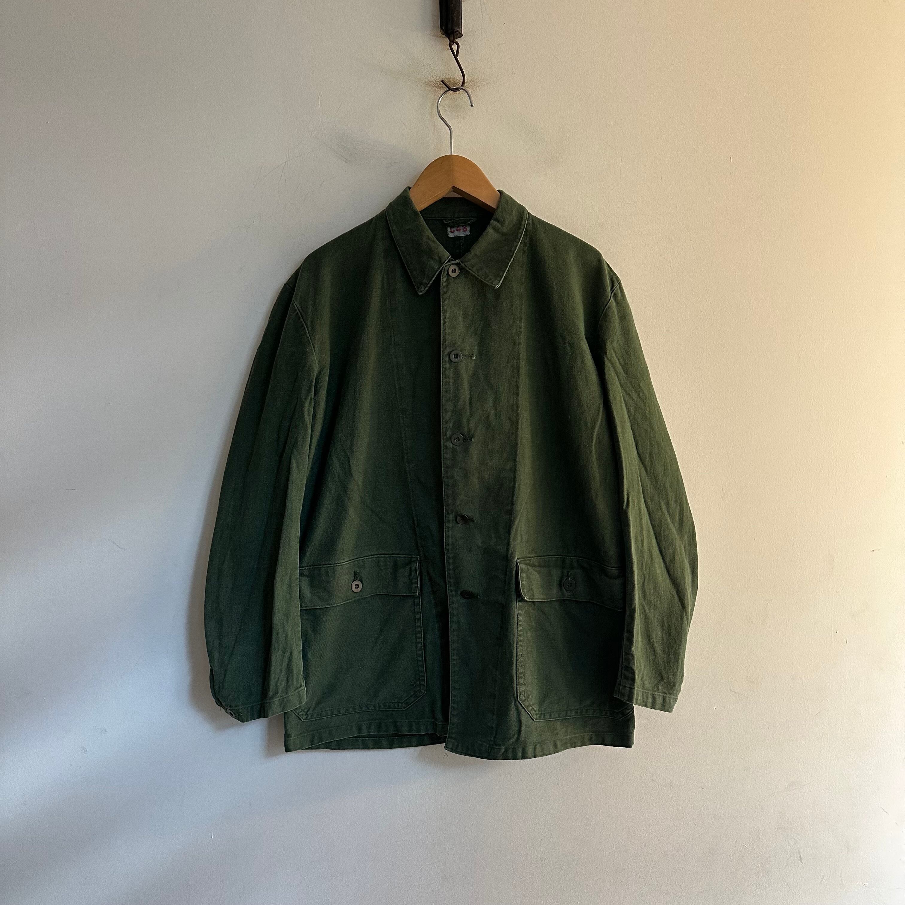 スウェーデンのミリタリージャケットです。程よい厚さのcotton生地。使える時期の長い1枚。グリーンが強い色味。良いですね。お好きな方、いかがでしょうか。
