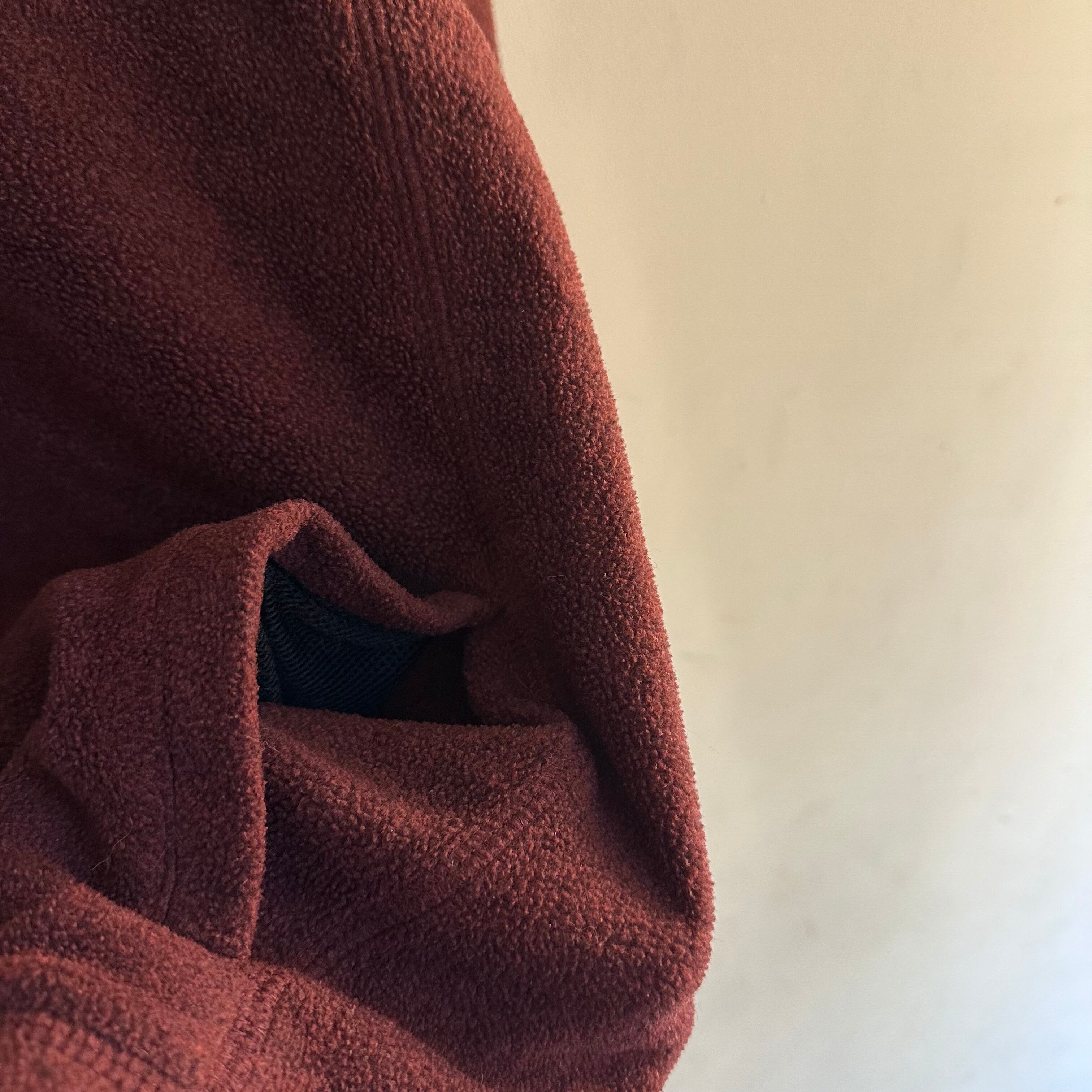 フリースです。ハーフzip。ネックは首元まで。エンジ。軽く、あったかく。お好きな方、いかがでしょうか。