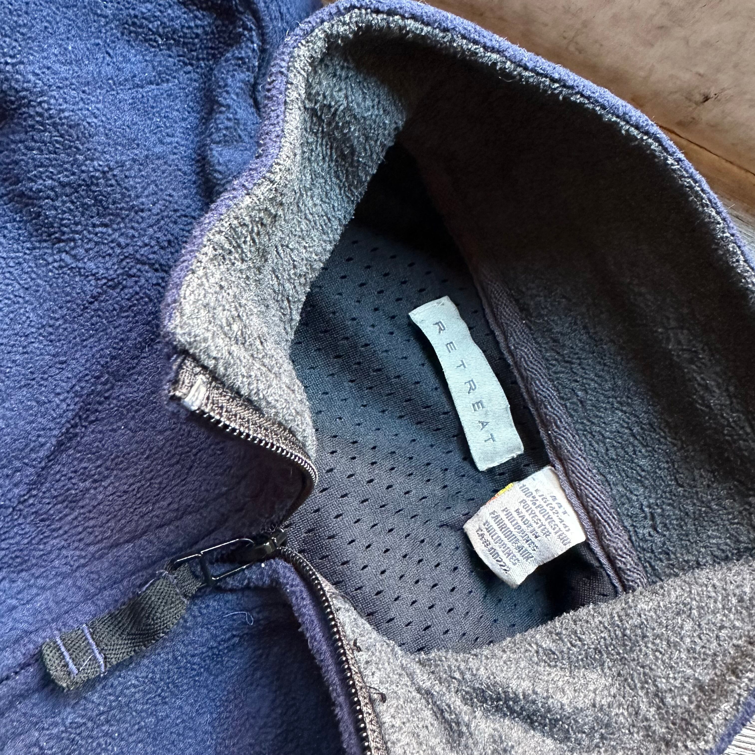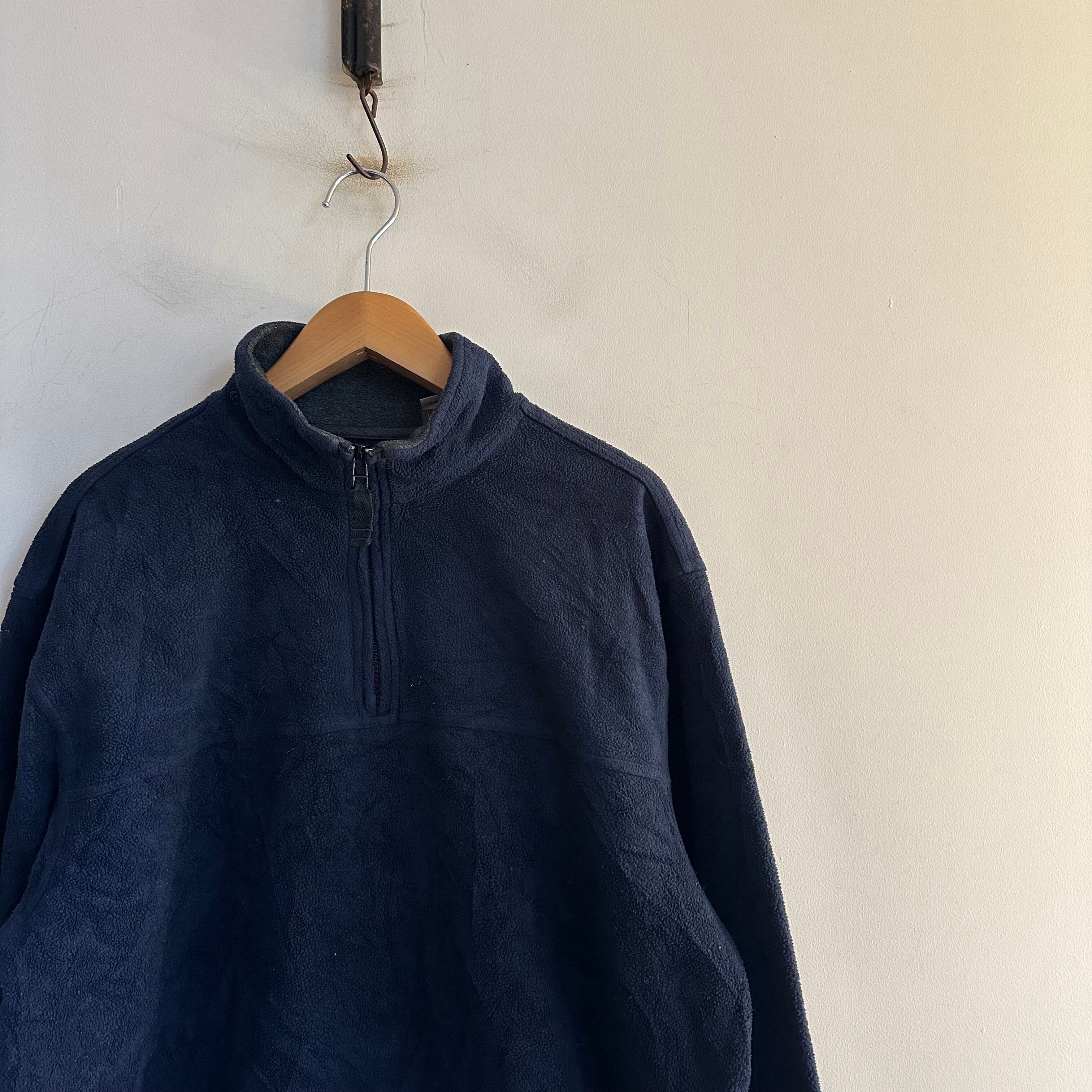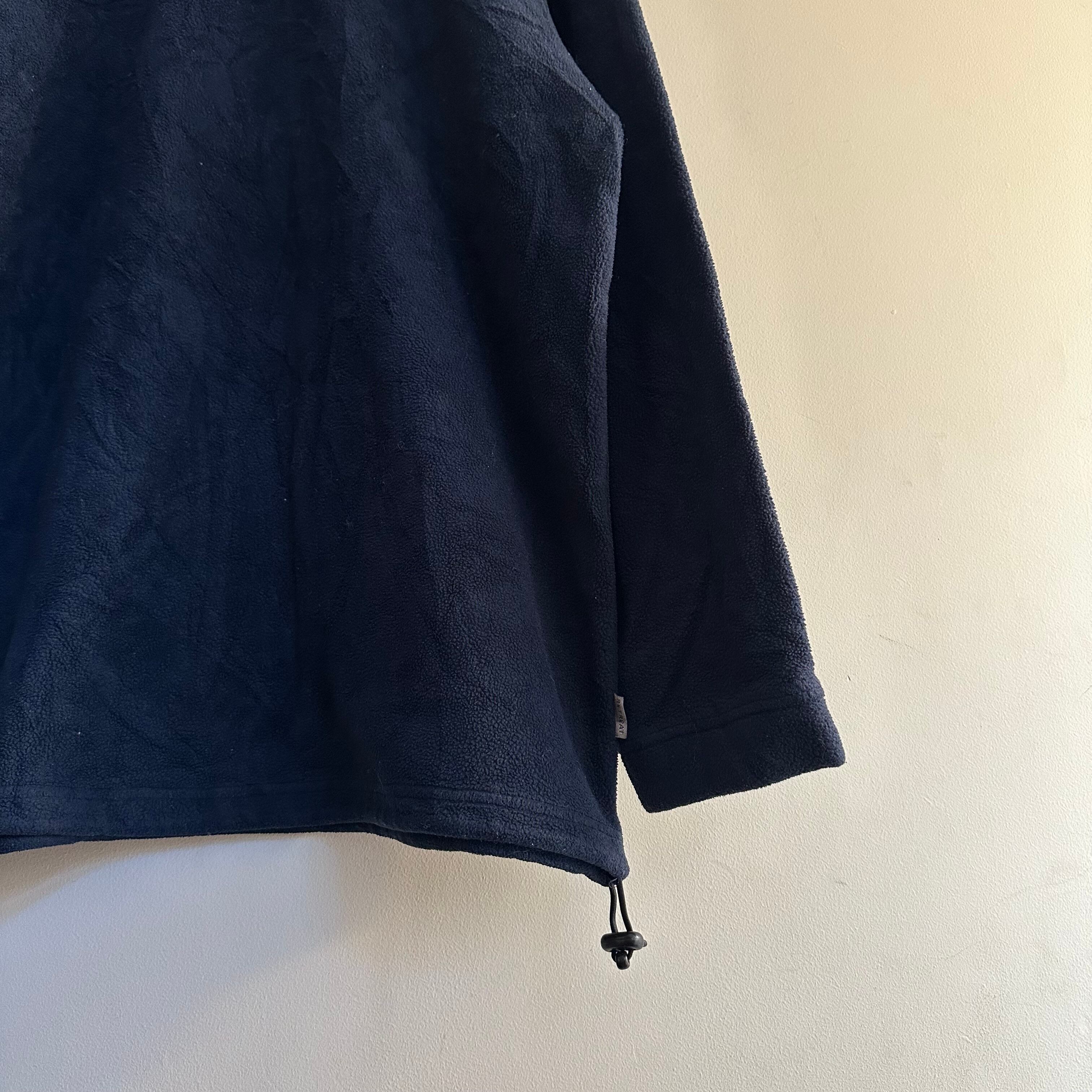フリースです。ハーフzip。ネックは首元まで。ネイビー。絞って形変えてみたり、色々なボリュームで。お好きな方、いかがでしょうか。