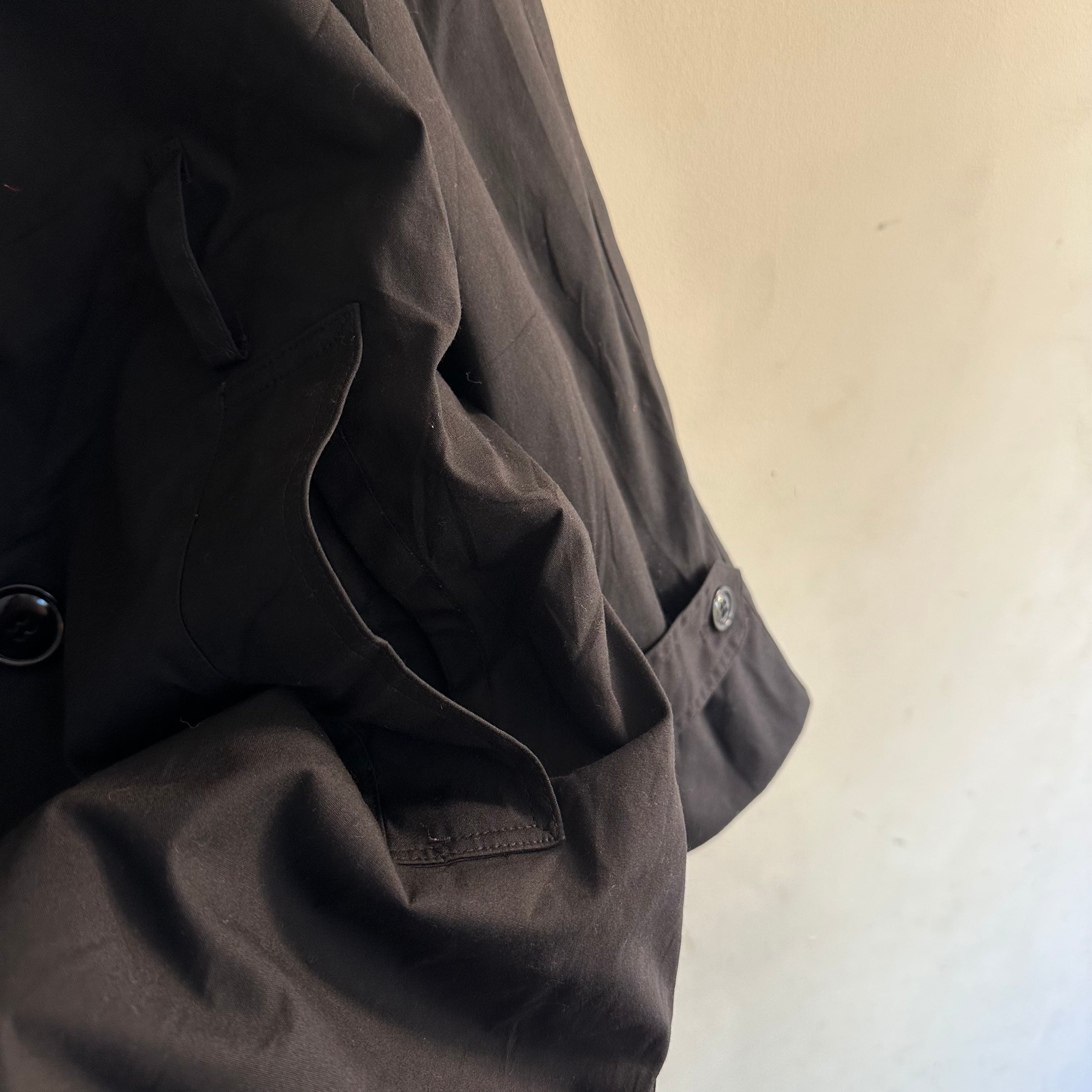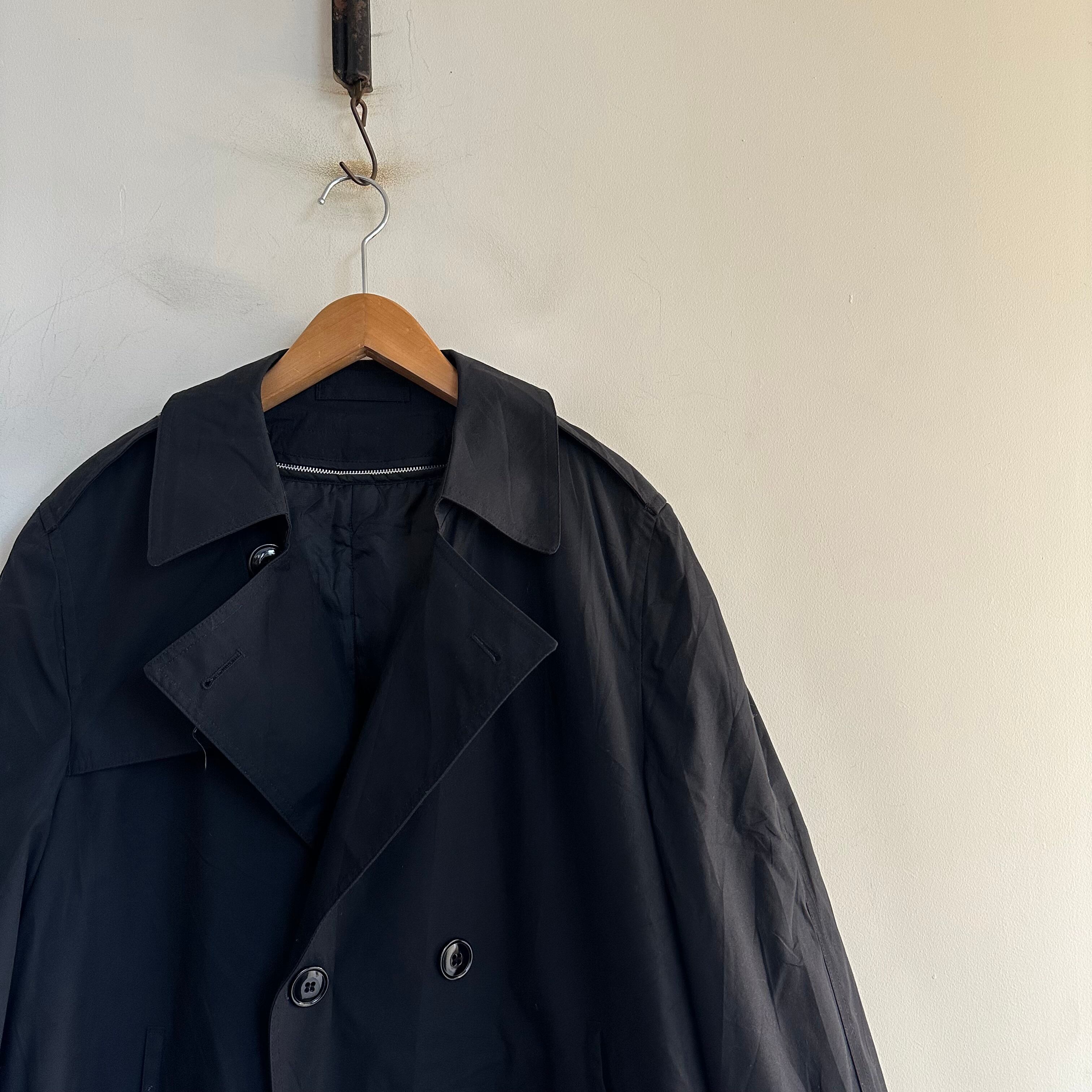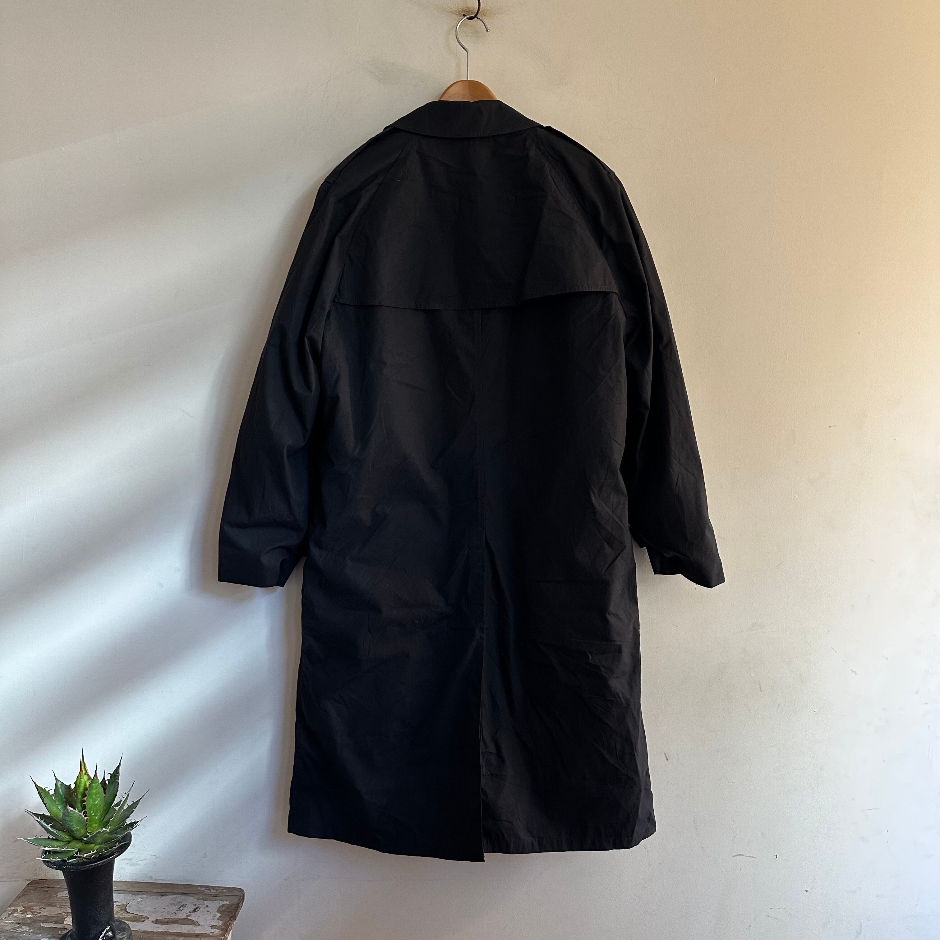 ミリタリートレンチコートです。黒のlong。取り外し可能なライナー付き。バサっと。お好きな方、いかがでしょうか。