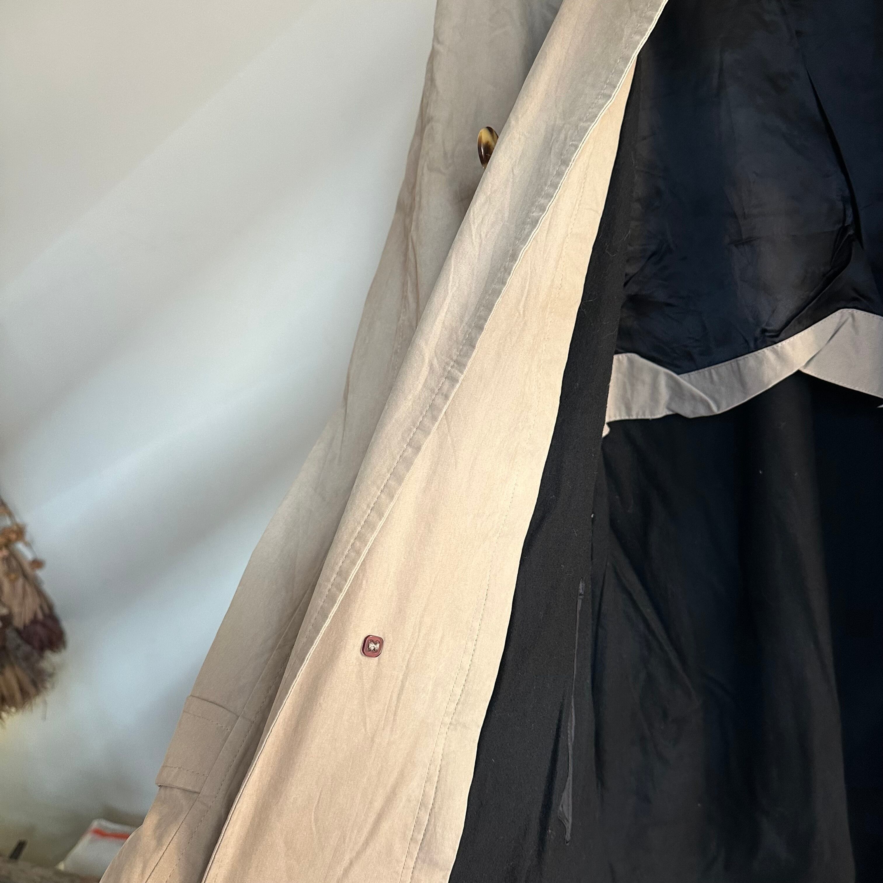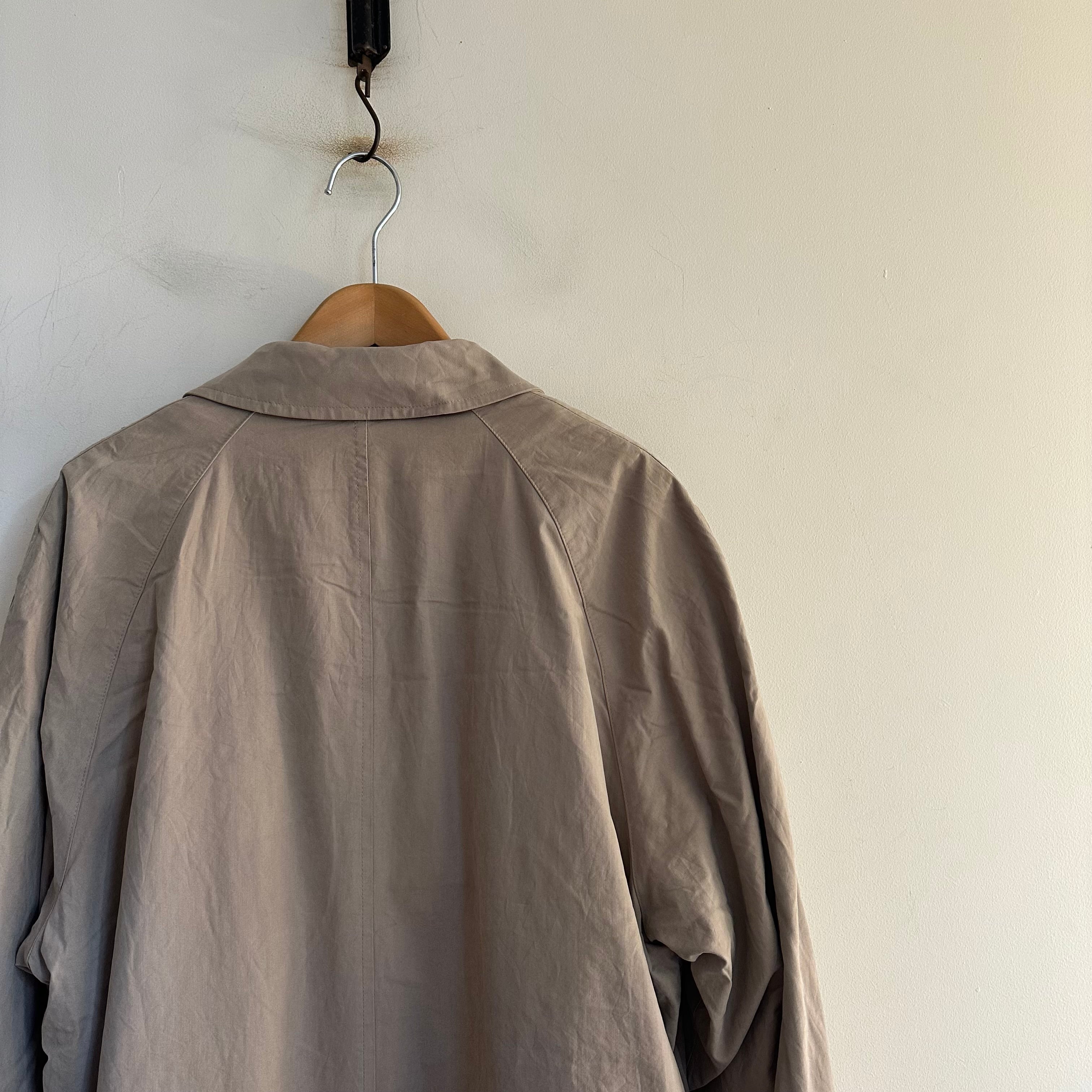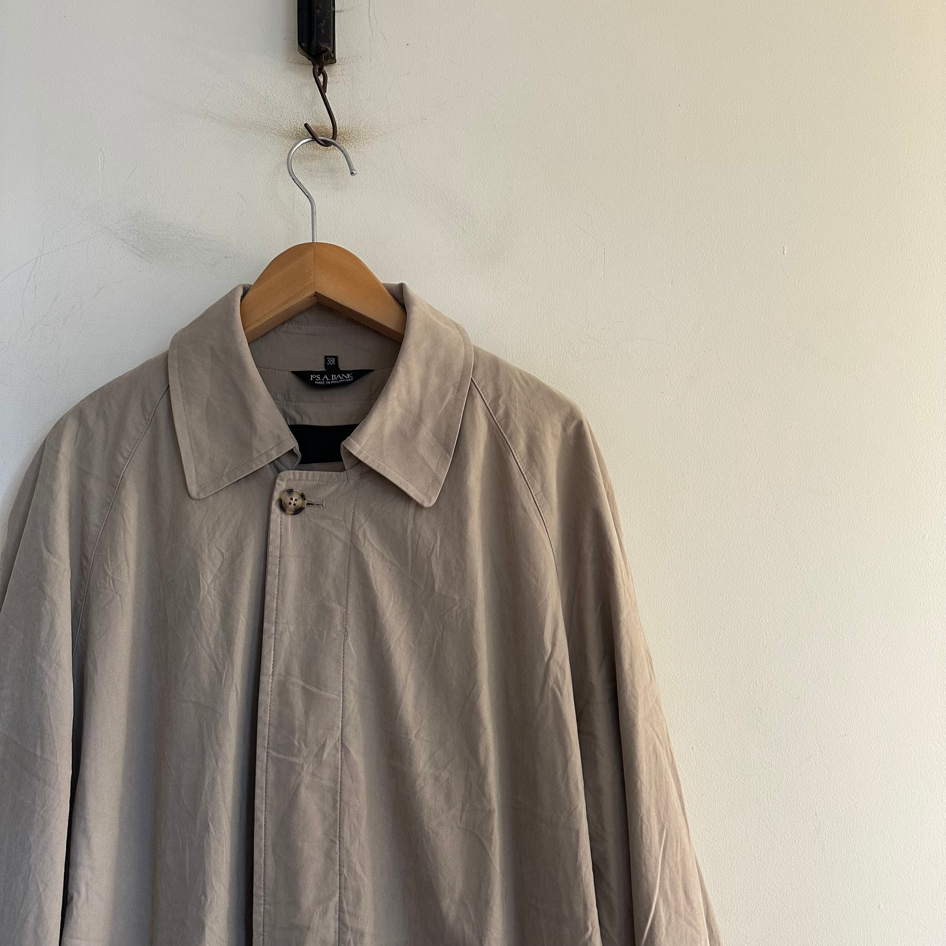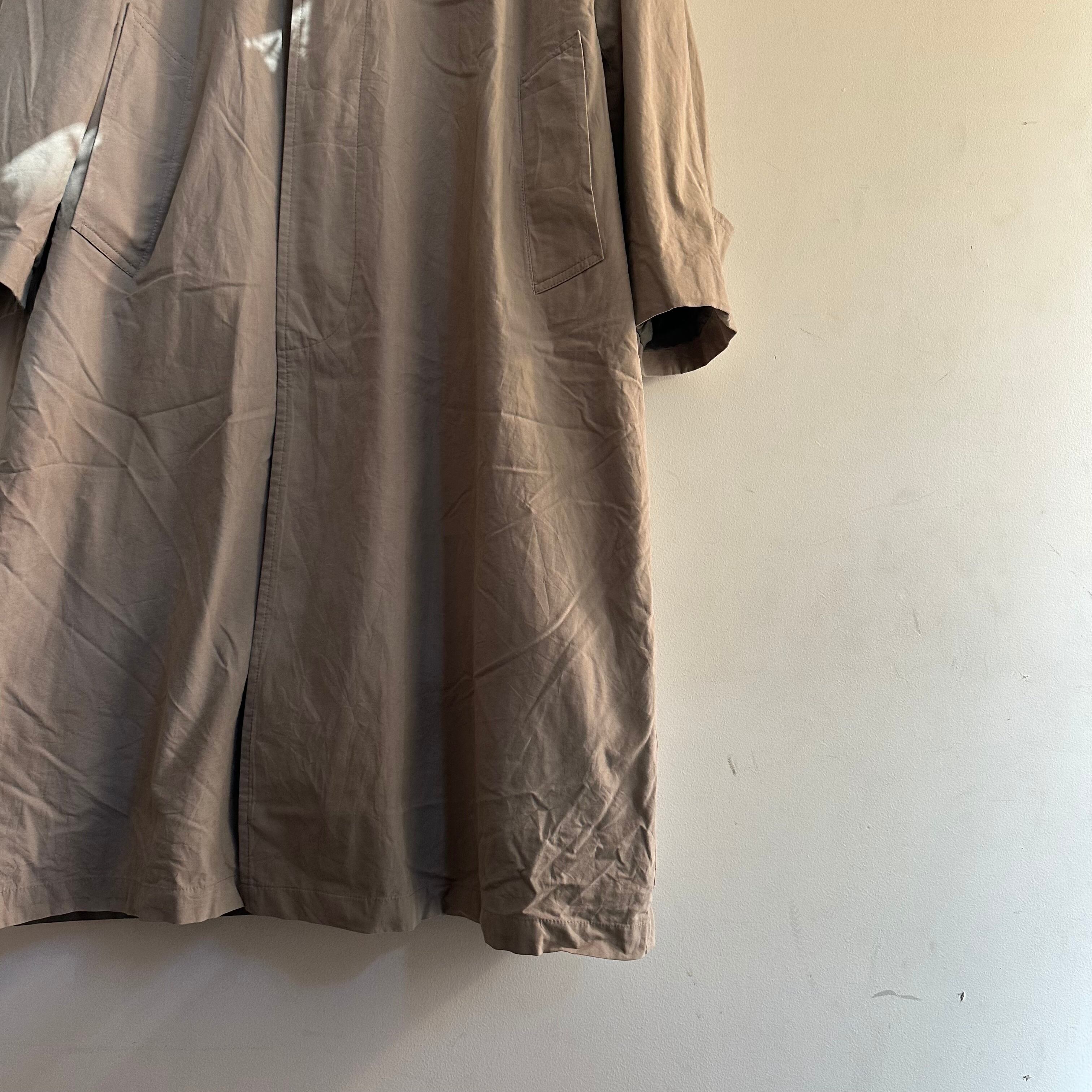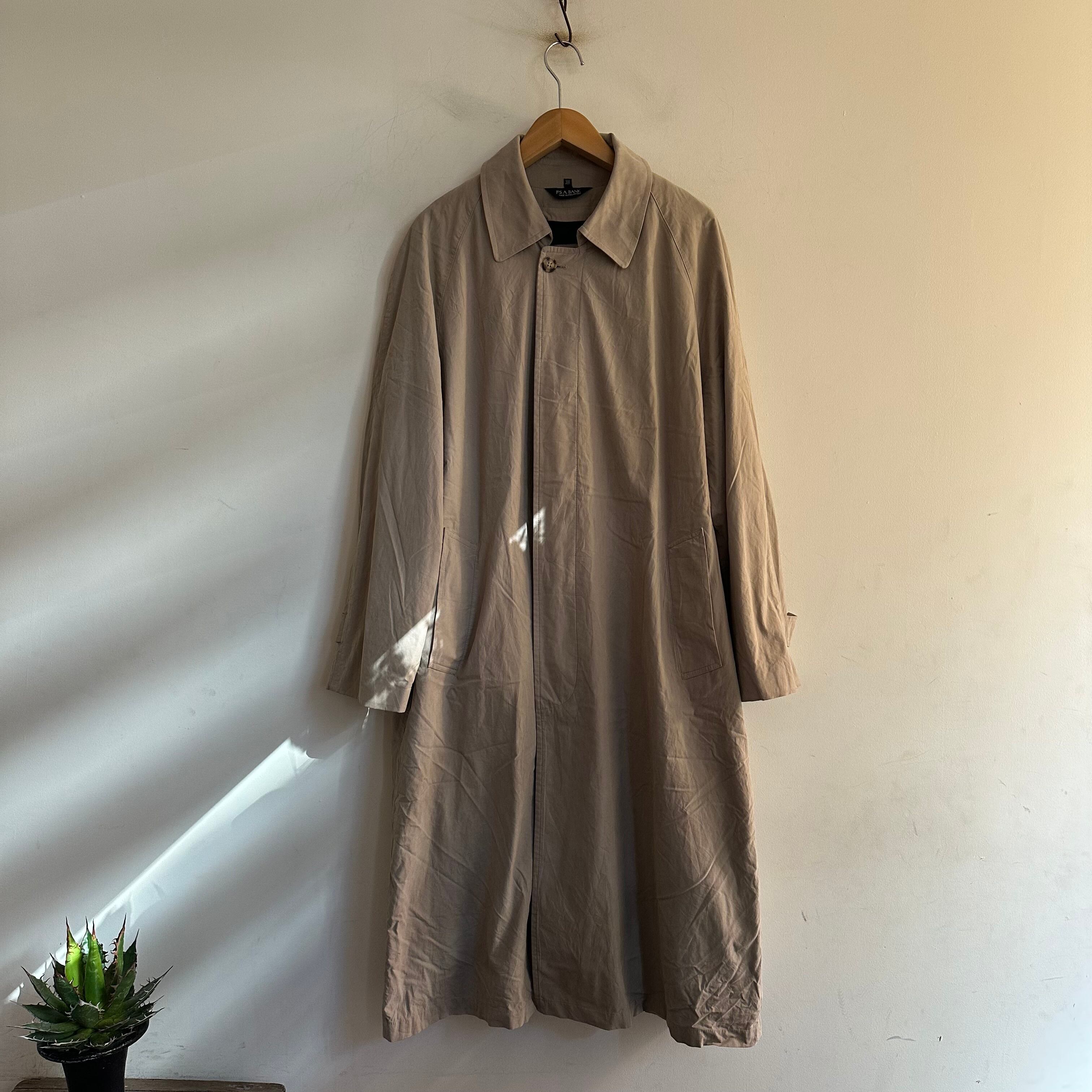 ステンカラーコートです。マットナイロン。着丈長めの作り。取り外し可能なライナー付き。肩周り綺麗に、ストンとしたシルエットで。お好きな方、いかがでしょうか。