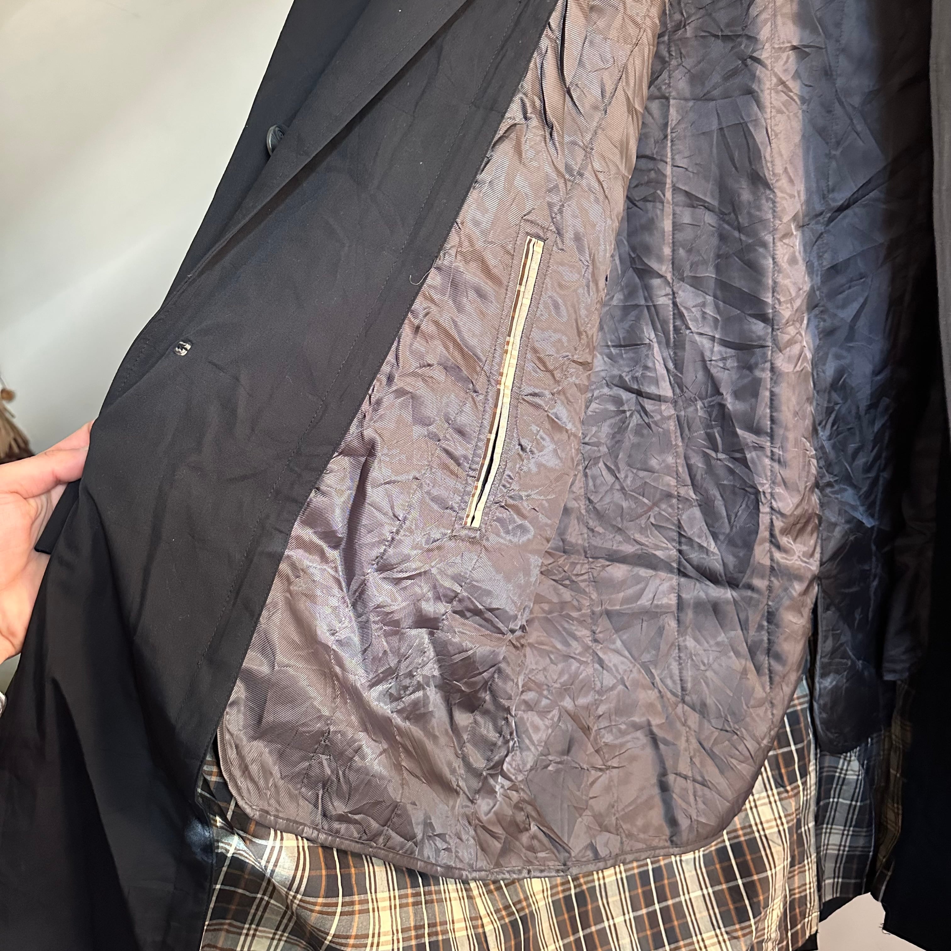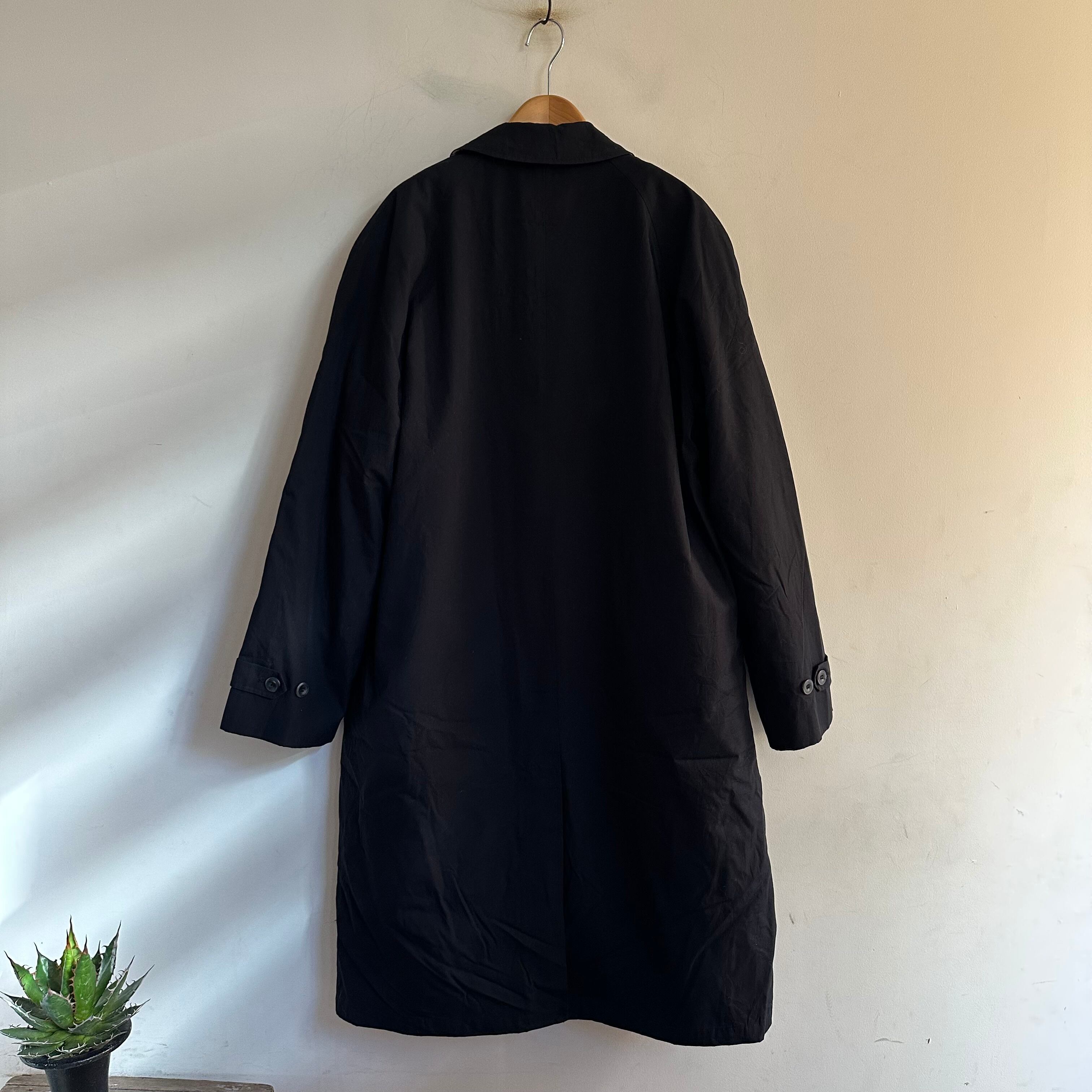 LONDONFOGのステンカラーコートです。しっかりブラック。取り外し可能なライナー付き。アップサイズで、たっぷりの身幅を生かしたシルエットで。お好きな方、いかがでしょうか。