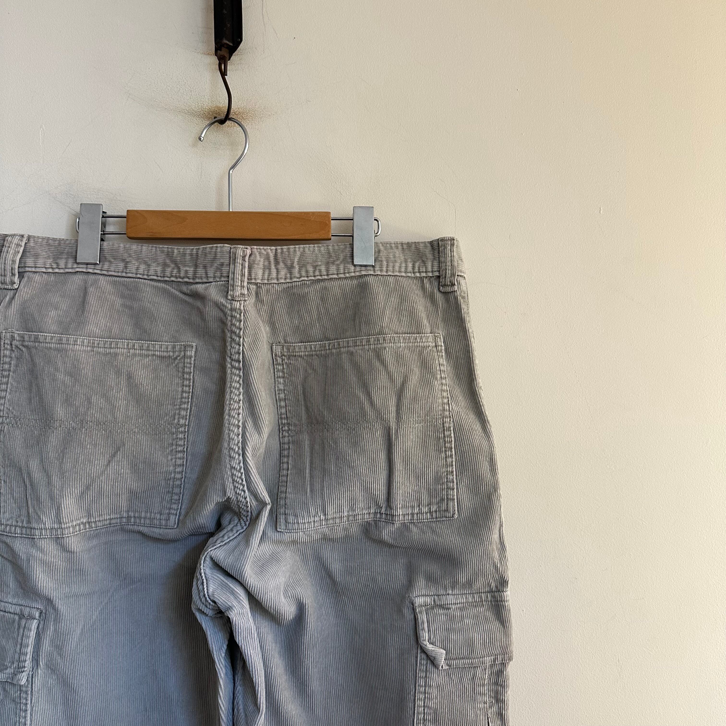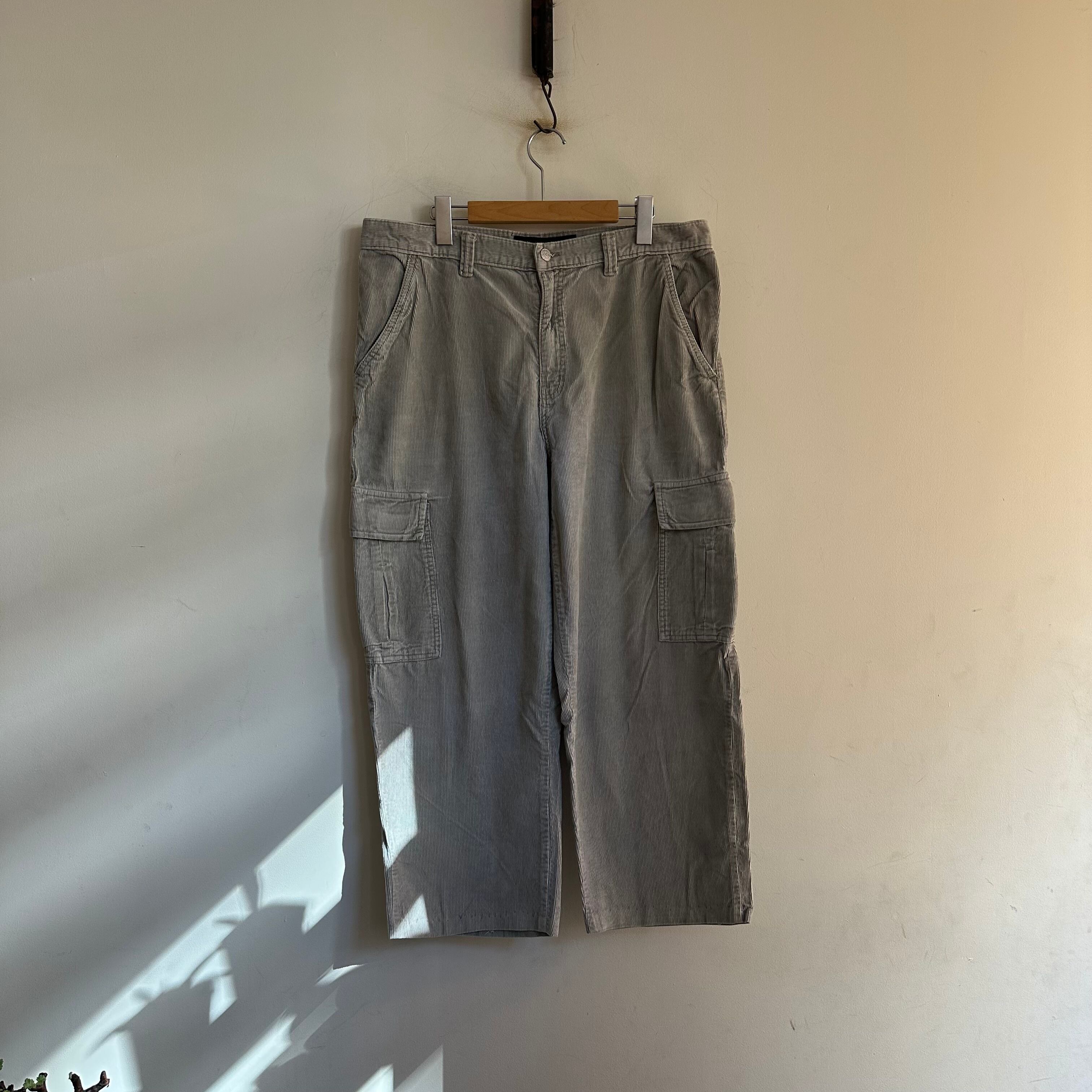 コーデュロイパンツです。コーデュロイに珍しいカーゴtype。太めのシルエットに短めの丈感でバランスとって。お好きな方、いかがでしょうか。
