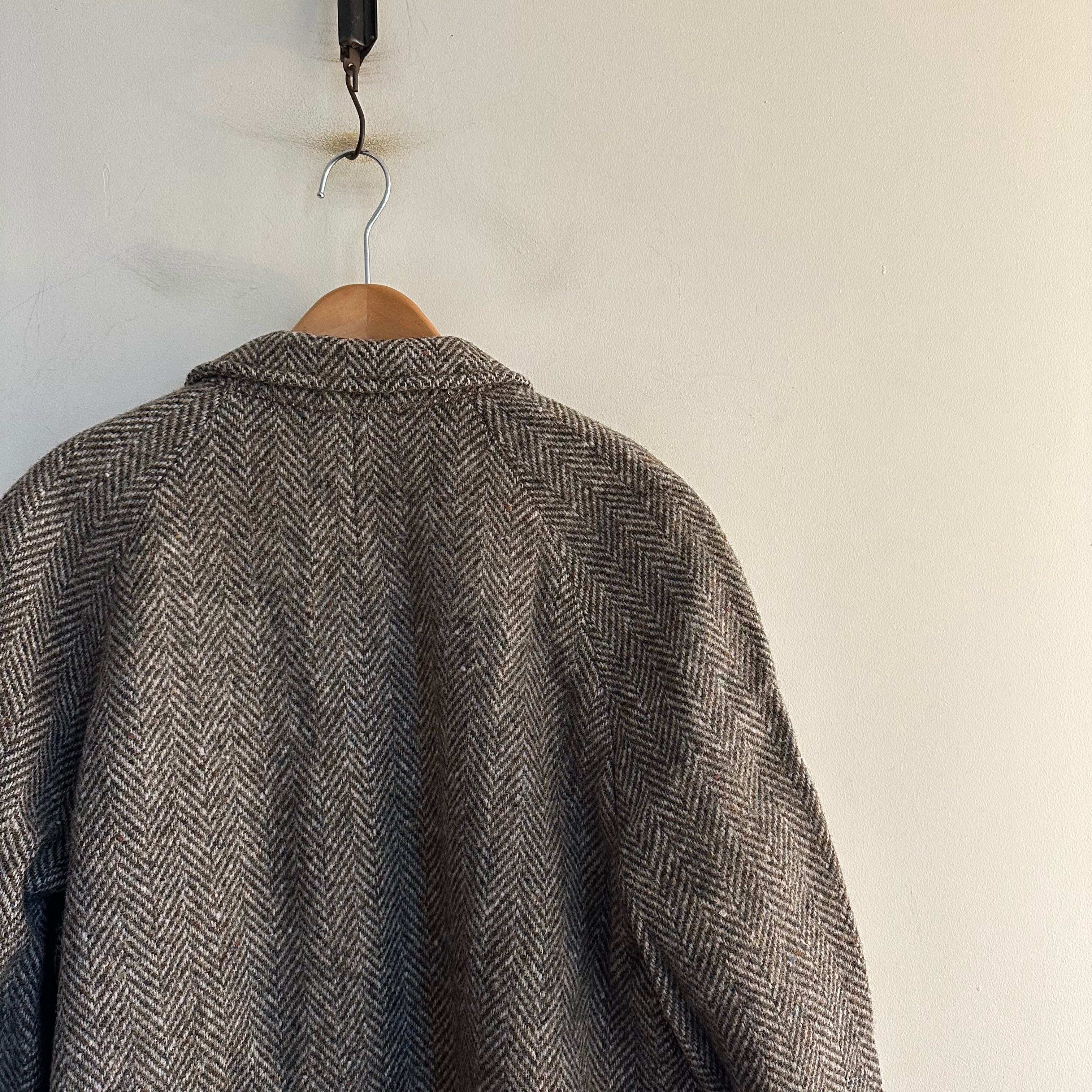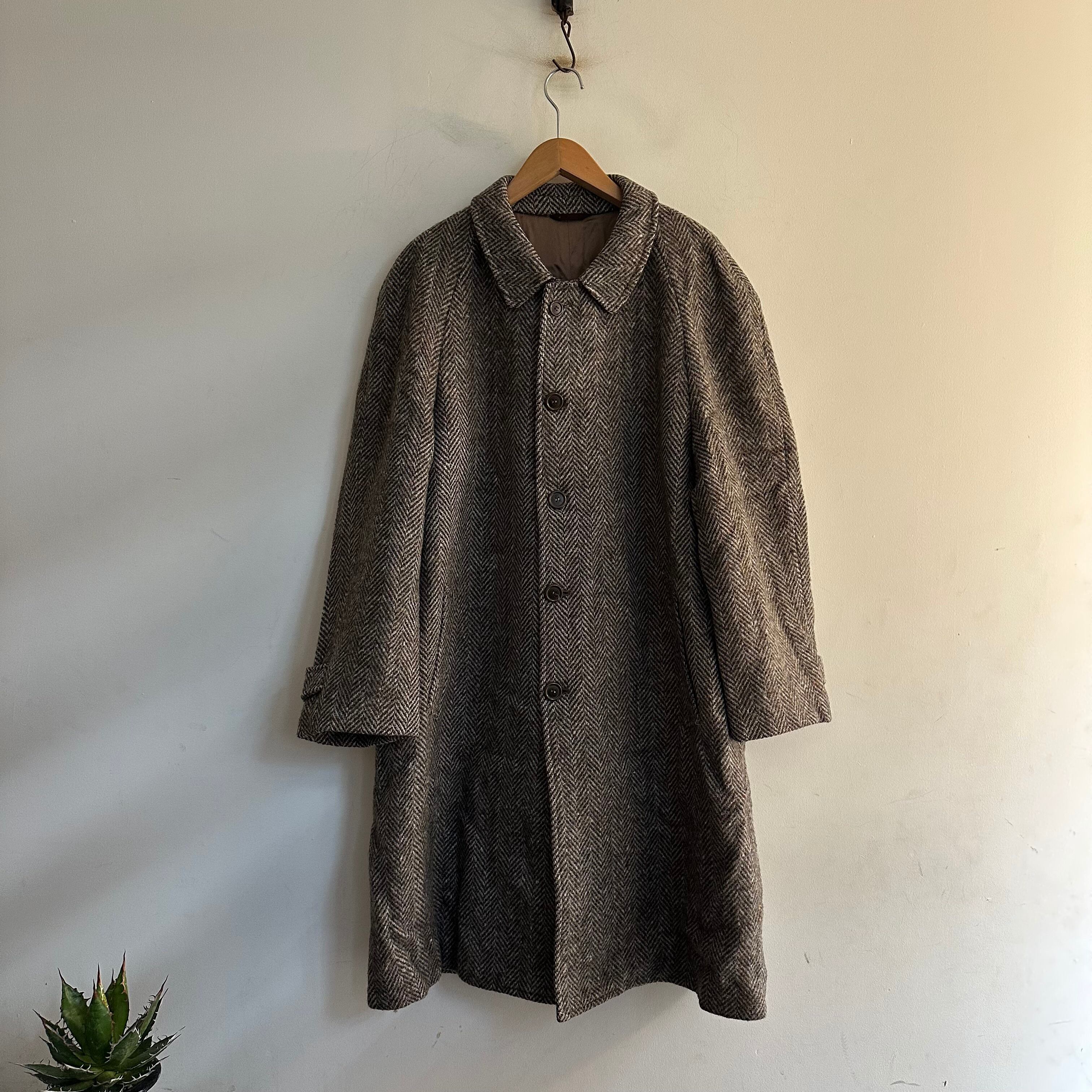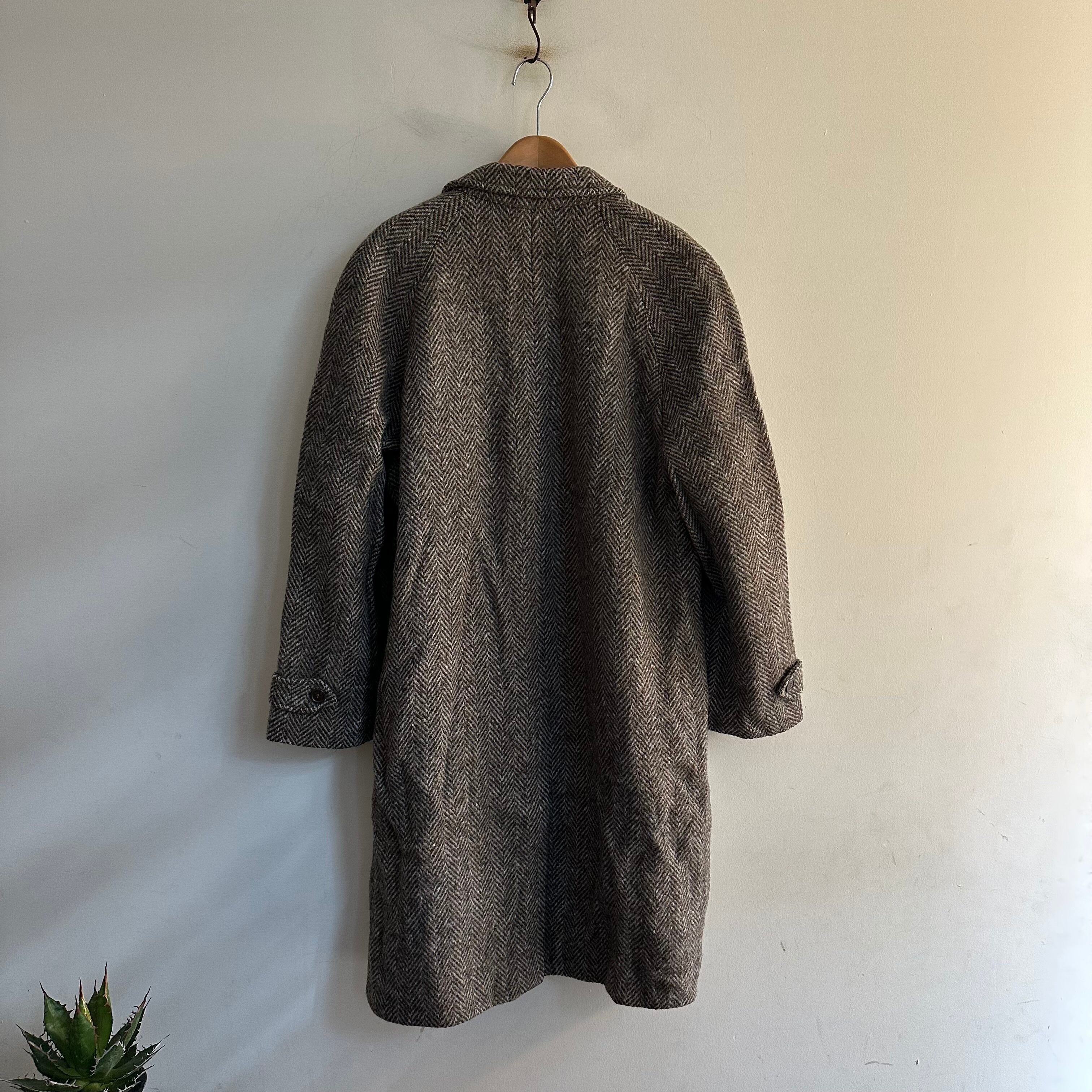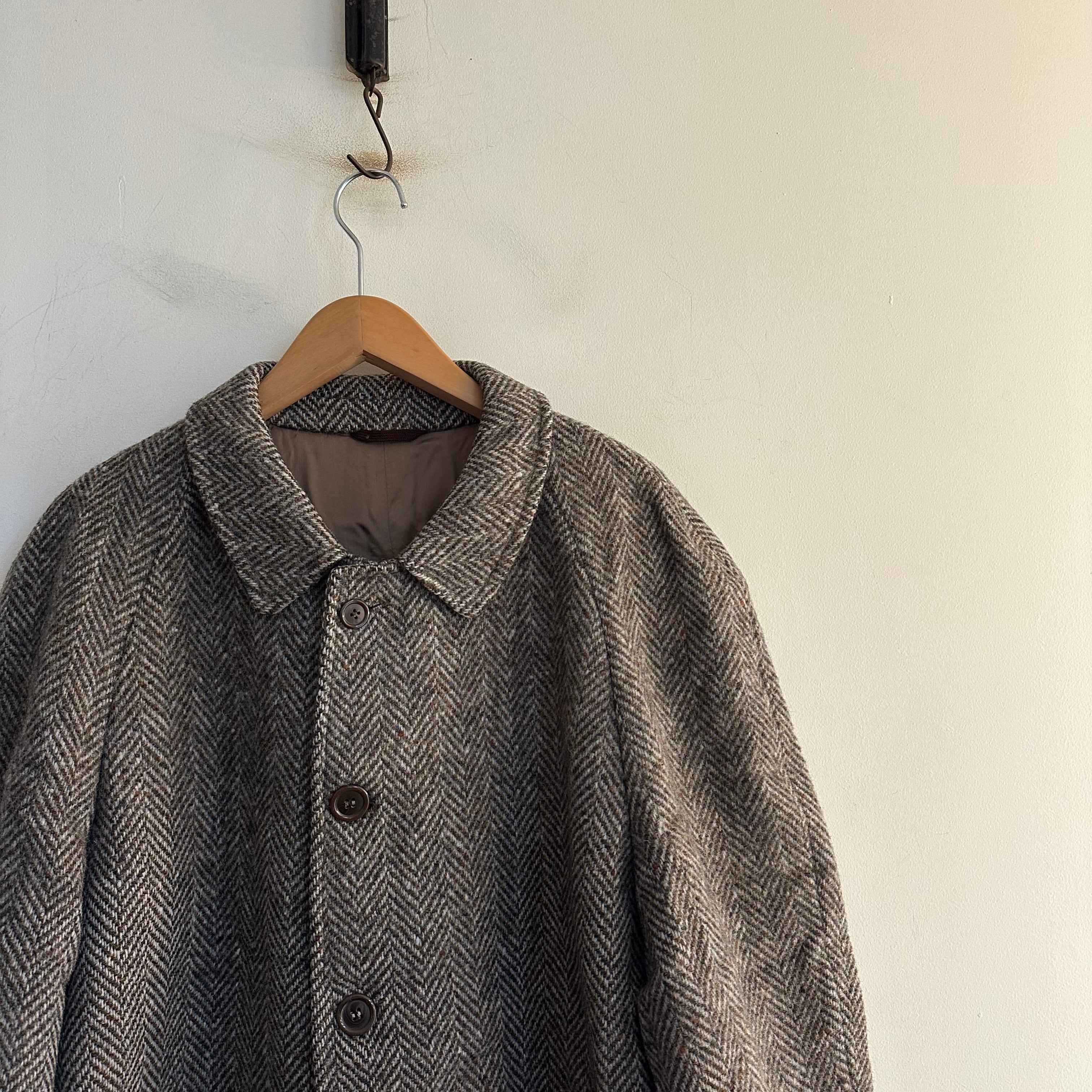 ステンカラーコートです。ブラウンベースのtweed。ヘリンボーン織りに細かいネップ。洒落てます。お好きな方、いかがでしょうか。
