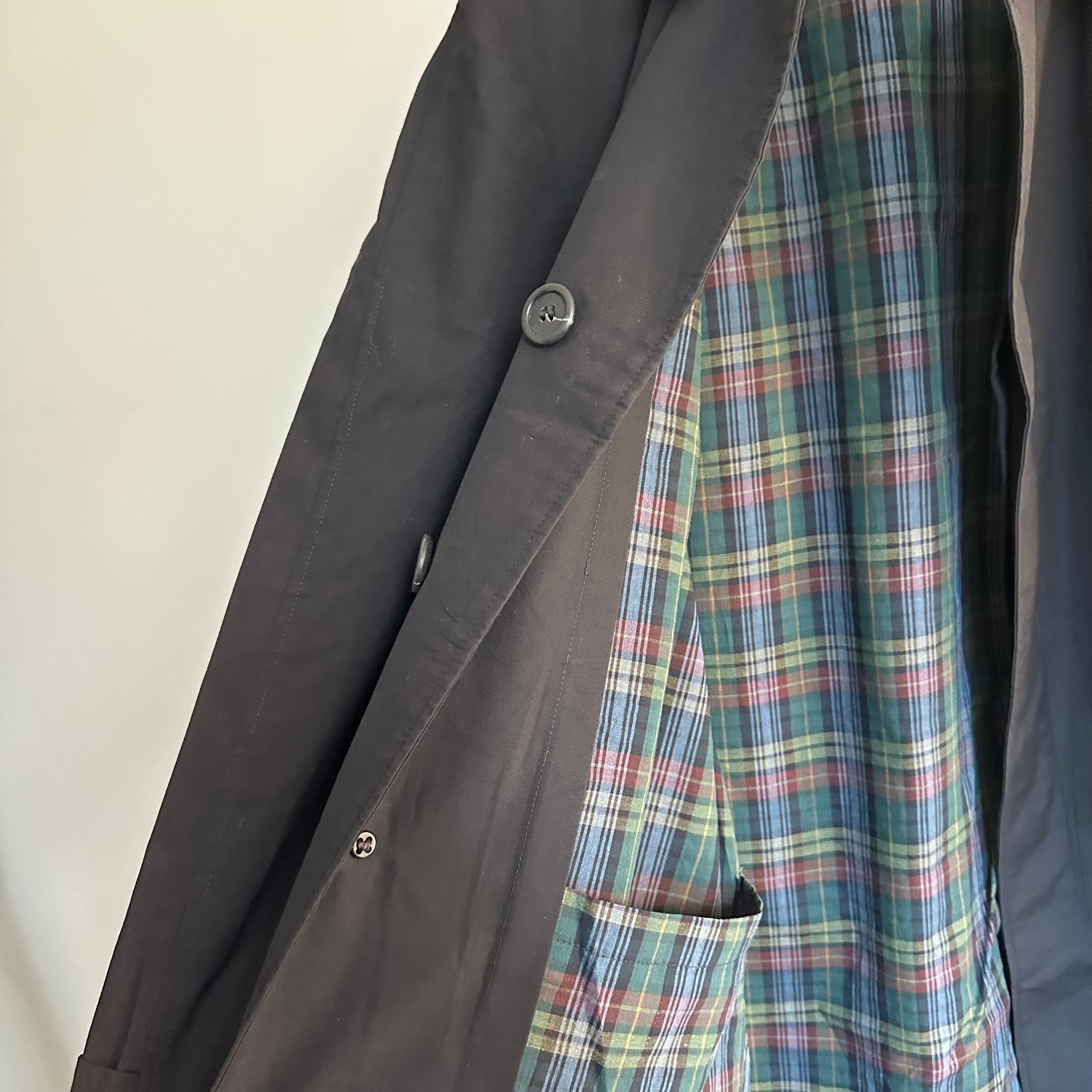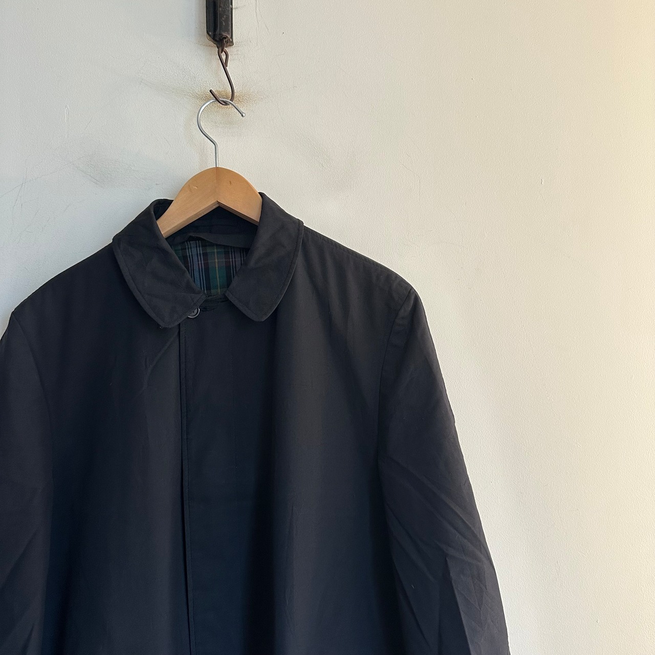 oldのステンカラーコートです。黒。小ぶりで柔らかさのある襟と、コンパクトな作りと。裏地も可愛いです。シュッと。お好きな方、いかがでしょうか。