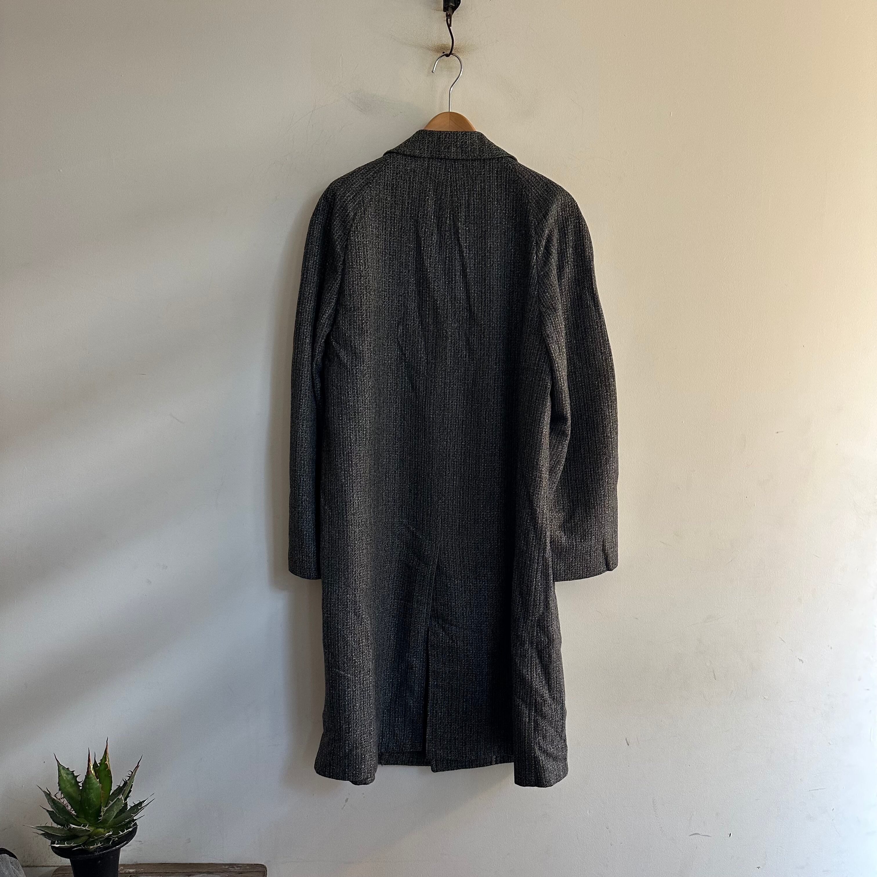 oldのウールチェスターコートです。程よく薄手の着やすそうならウール。変わった織りで洒落てます。着た形跡ないくらい綺麗なコンディションです。お好きな方、いかがでしょうか。