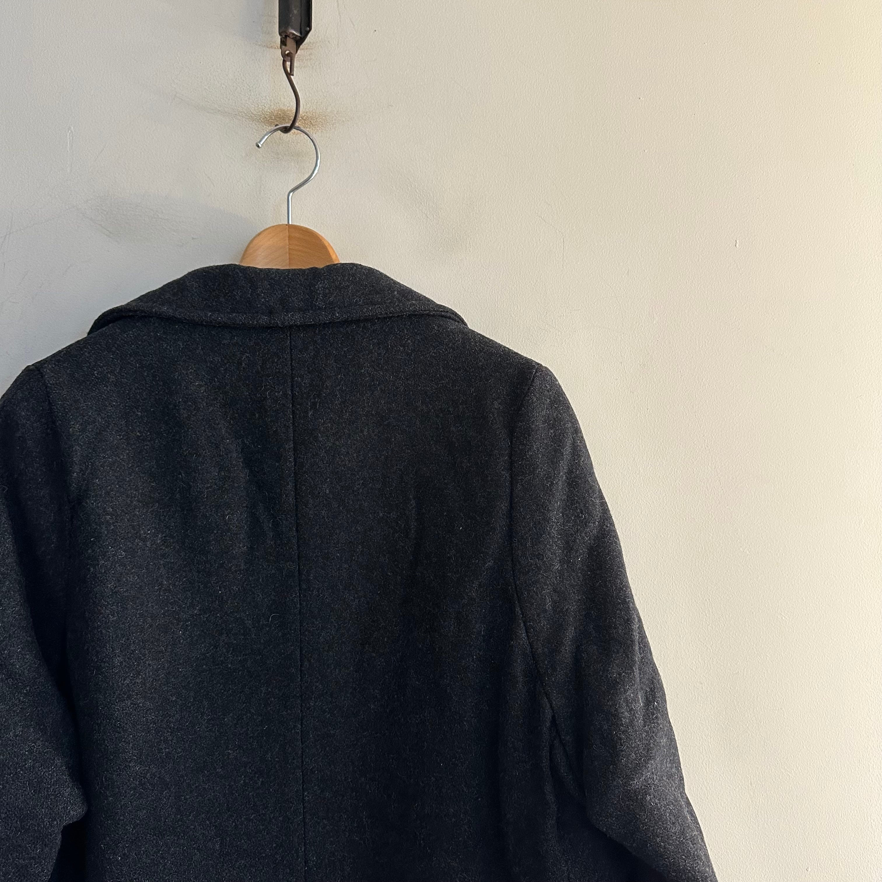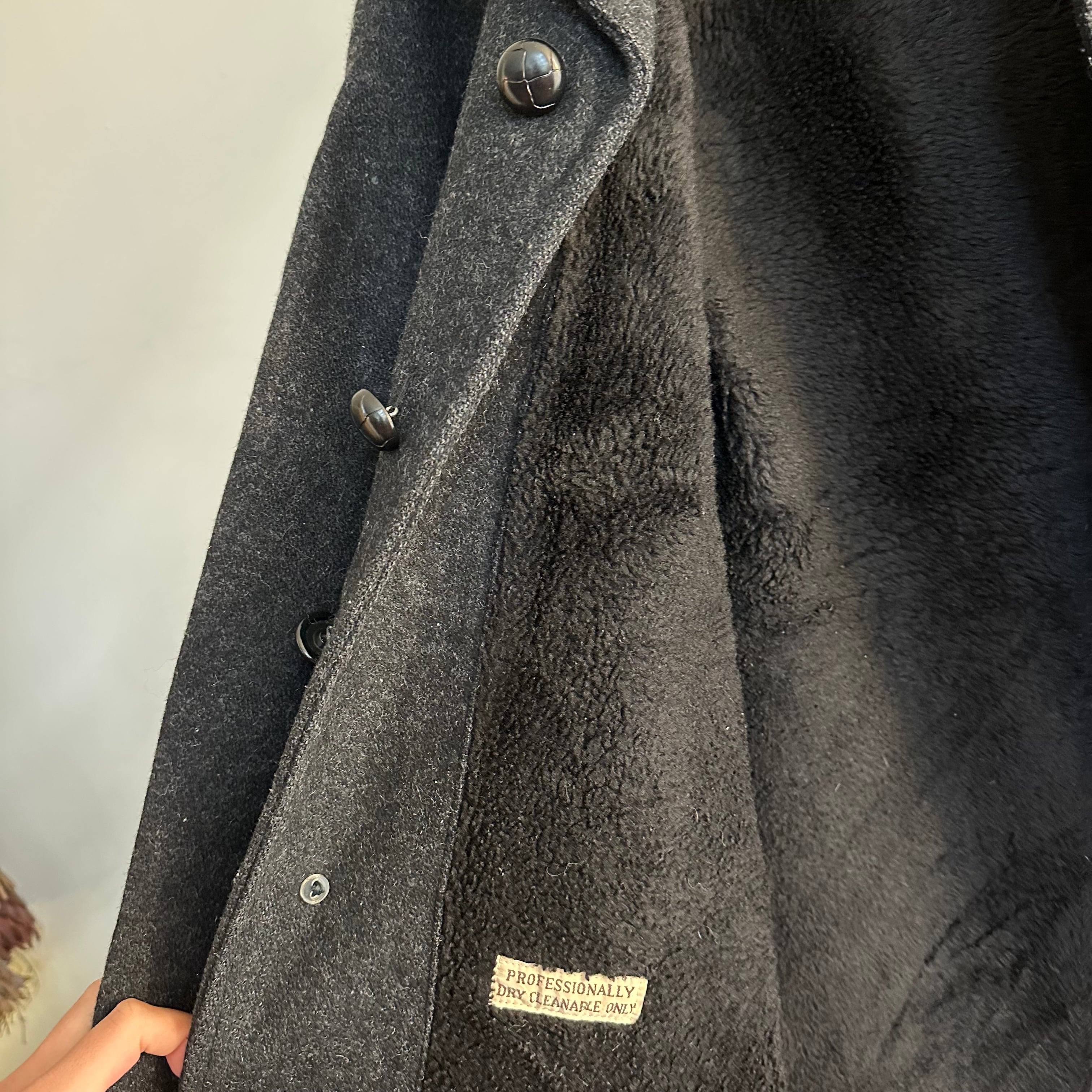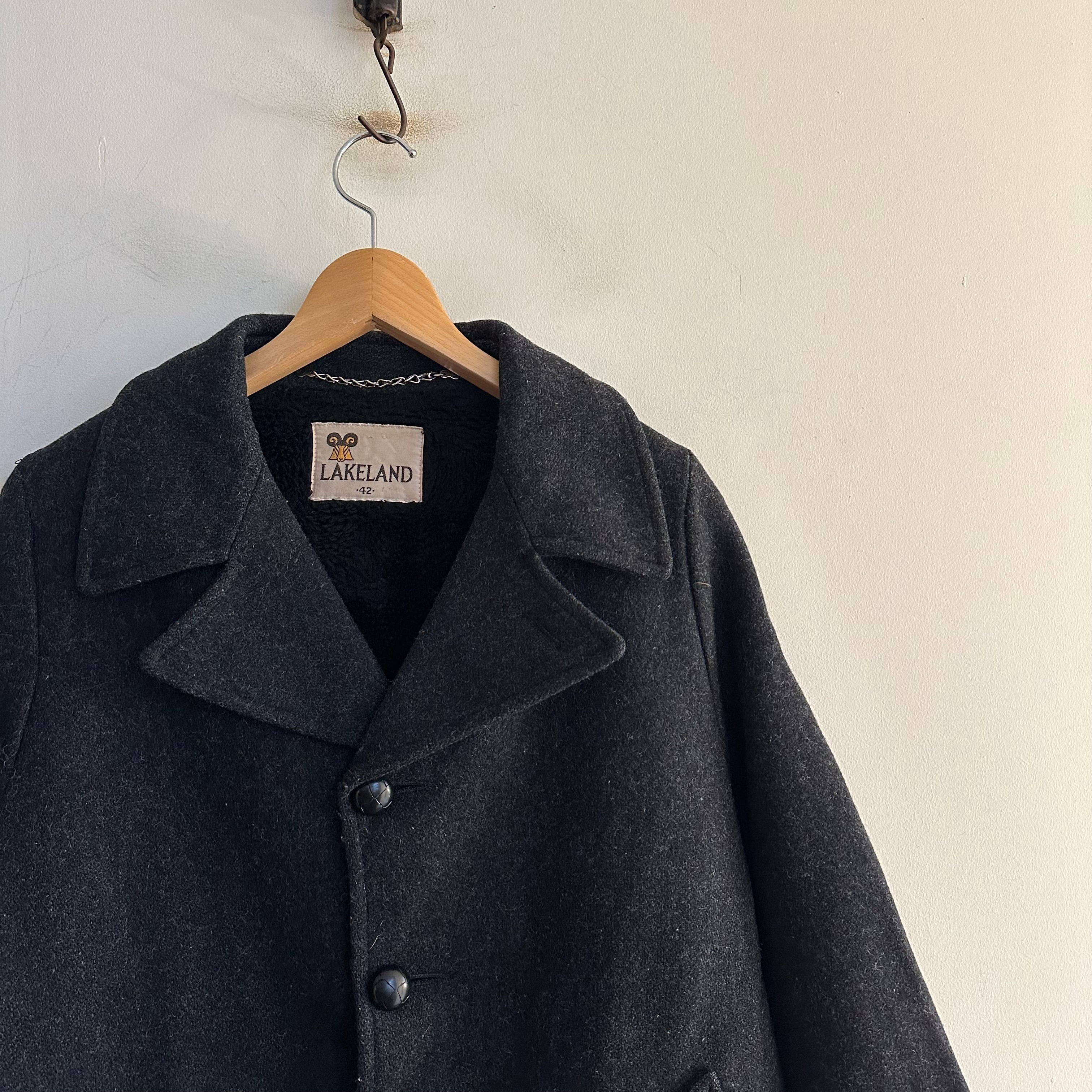 70sのLAKELAND、ウールコートです。チェスター typeのハーフコート。裏ボア黒に黒のクルミボタン。綺麗なAライン。カチッと。お好きな方、いかがでしょうか。