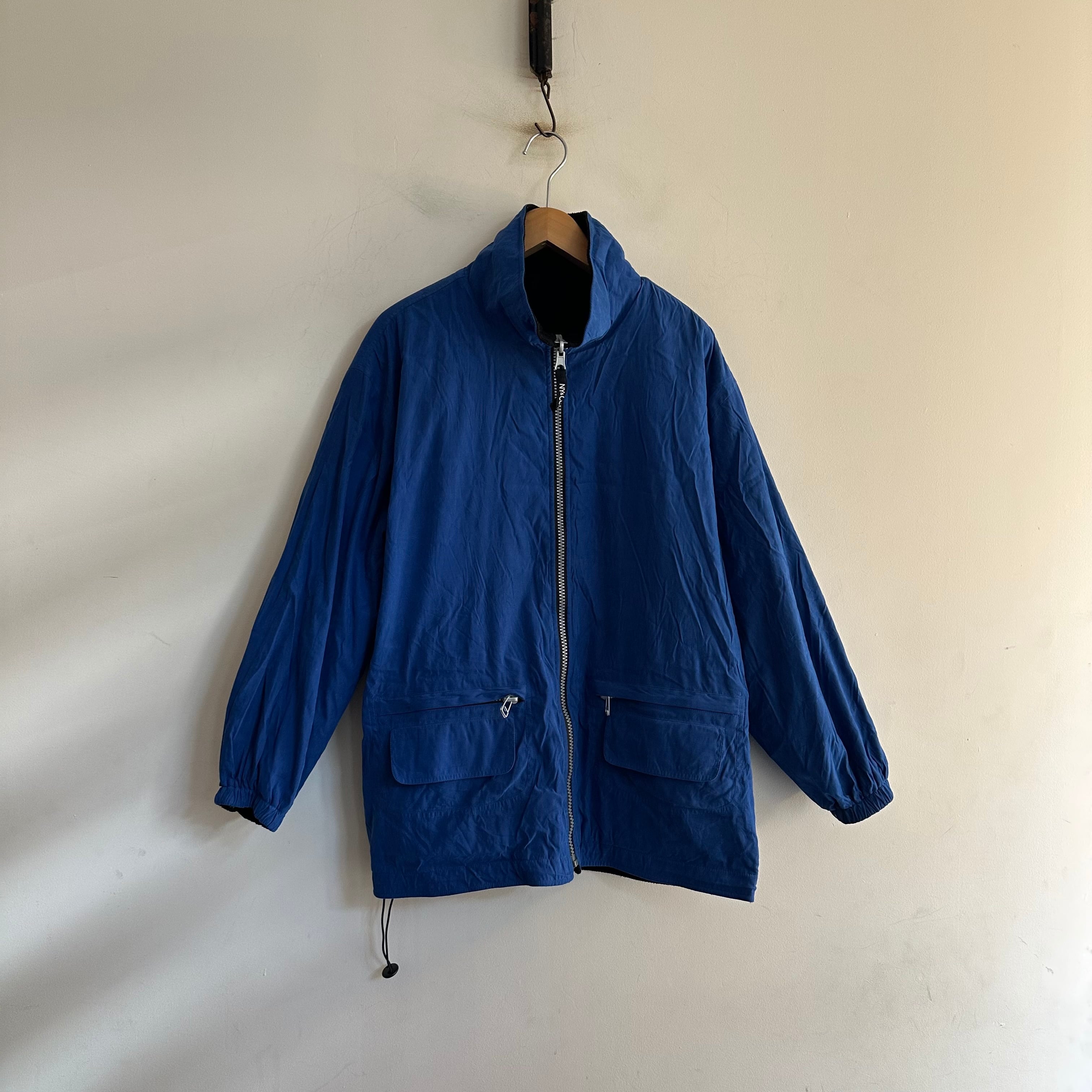 マットナイロン。発色の良いブルー。リバーシブルtypeで、裏返すと黒無地フリース。両面とも。お好きな方、いかがでしょうか。