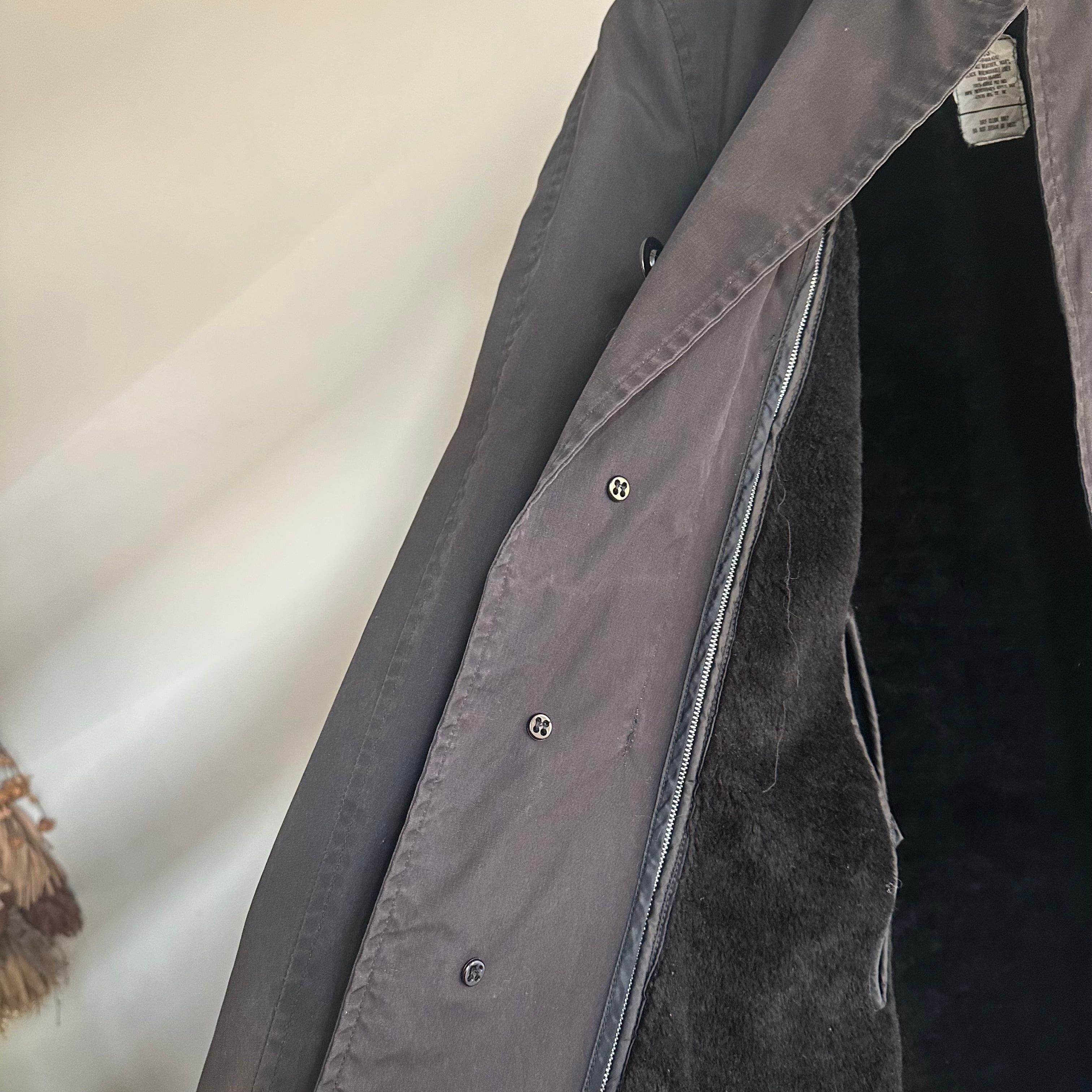 ミリタリーステンカラーコートです。取り外し可能なライナー付き。褪せ黒。オンでもオフでも。お好きな方、いかがでしょうか。