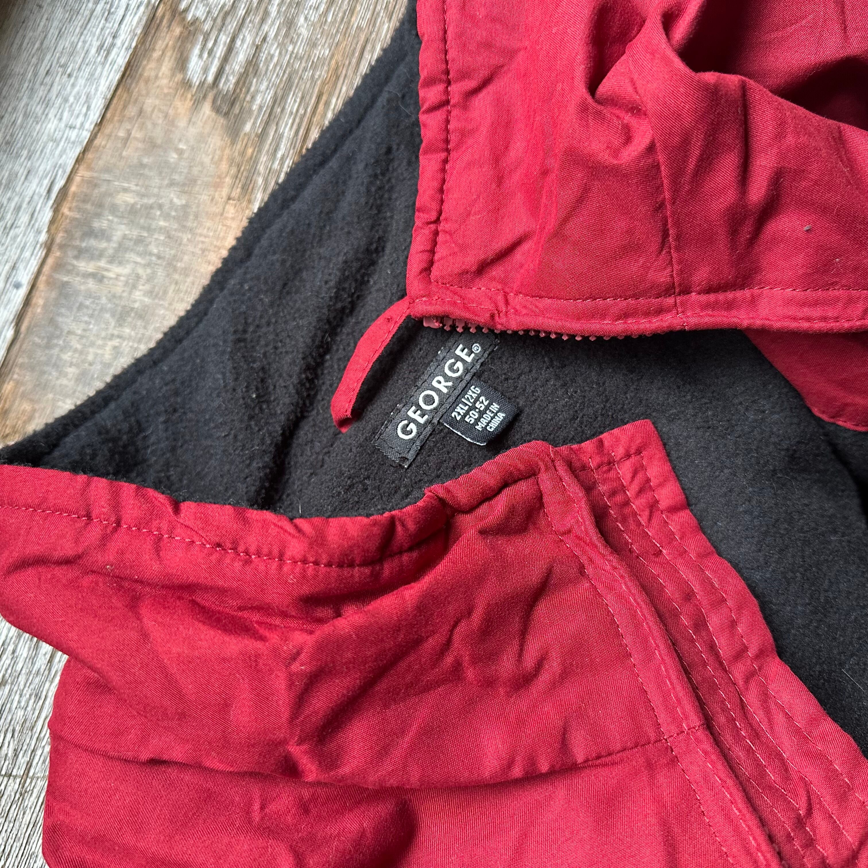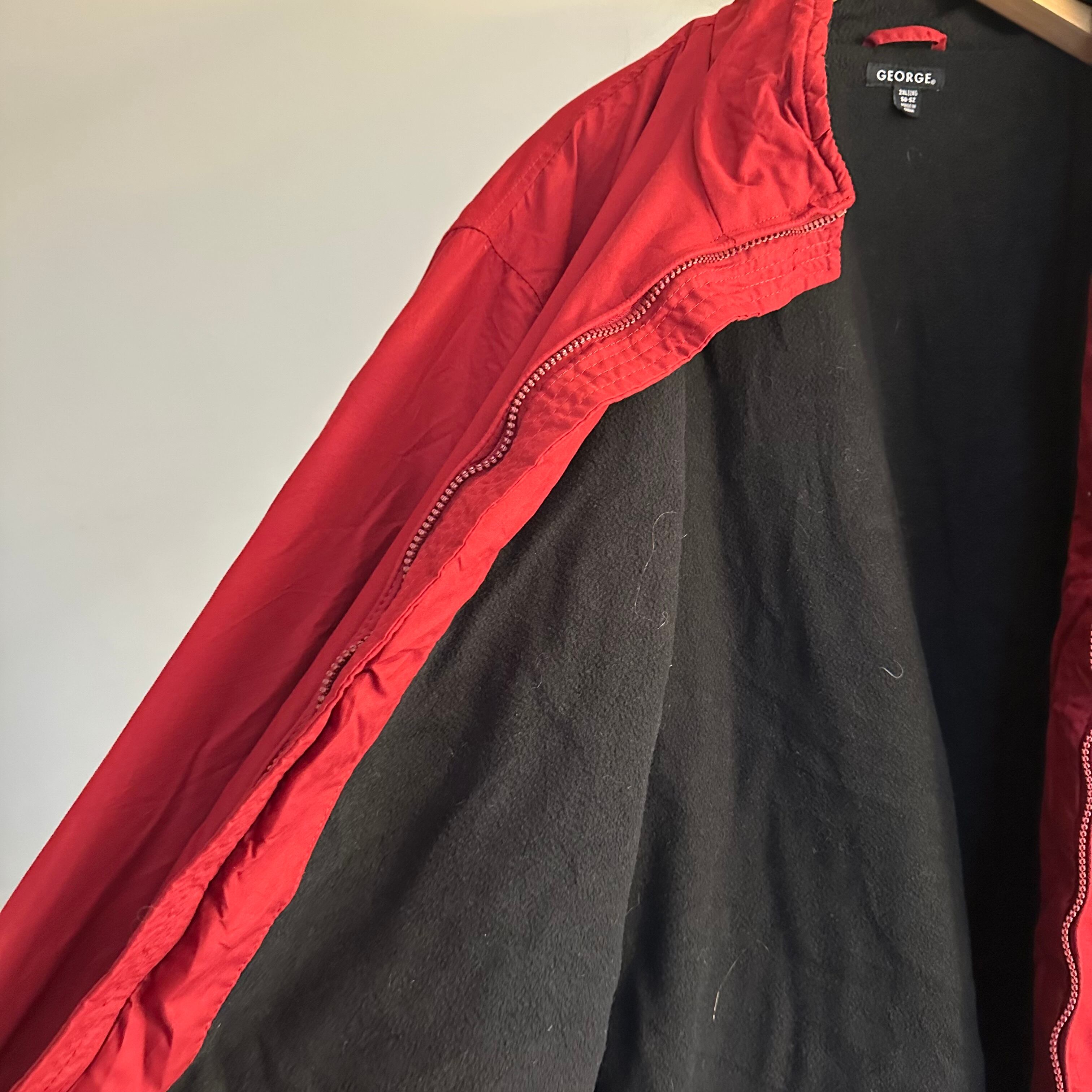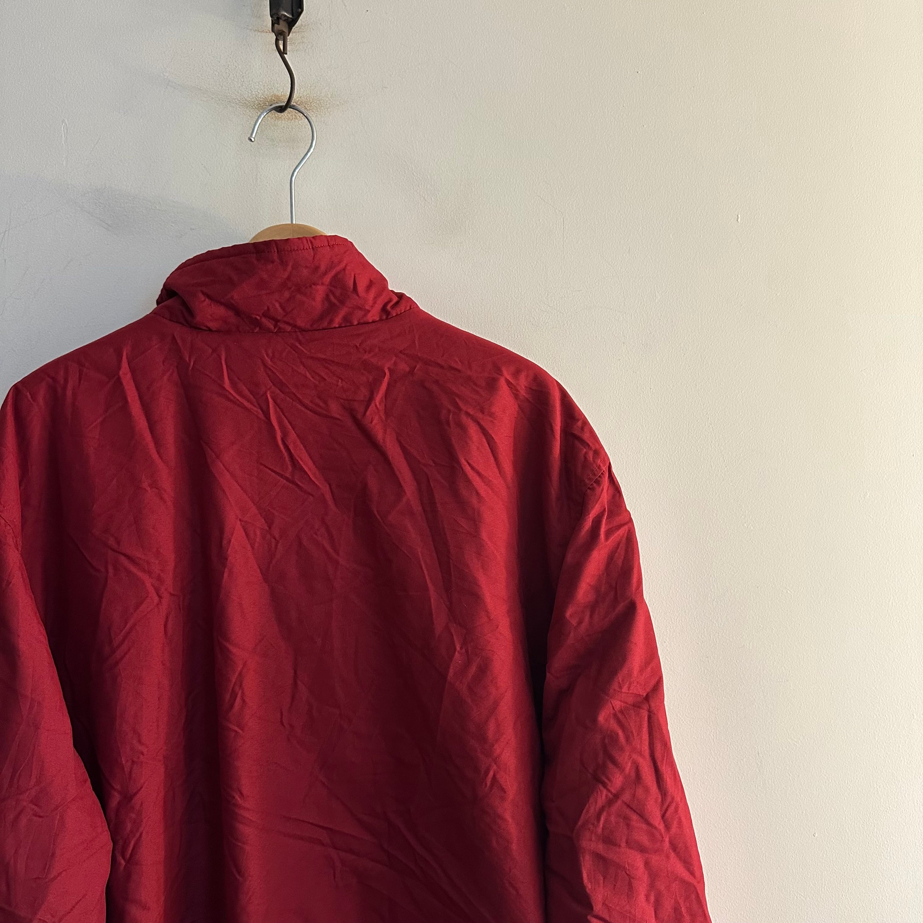 マットナイロン。裏フリース。発色の良い赤。たっぷりの身幅を生かしたシルエットで。お好きな方、いかがでしょうか。