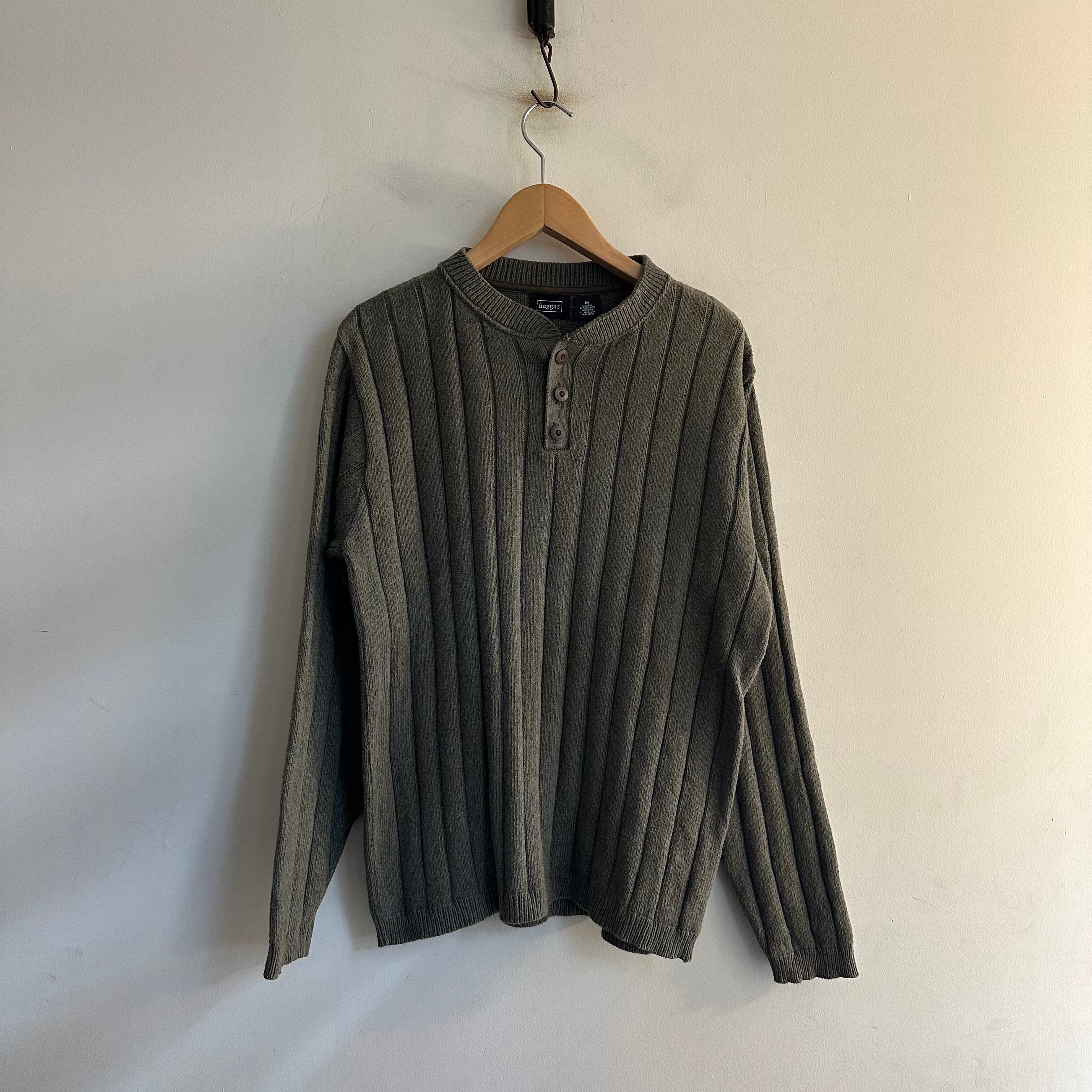 コットンニットです。ヘンリーネック。程よく厚手のcotton100%生地。短めの丈感で、ポッテリと、トップにボリューム出して。お好きな方、いかがでしょうか。