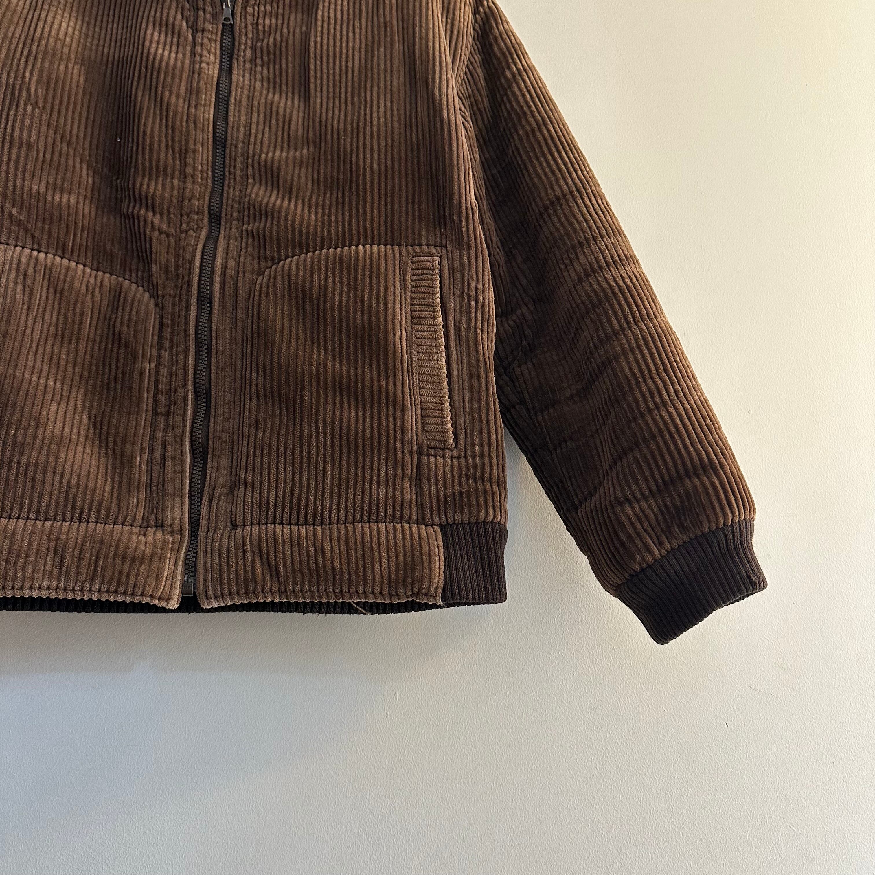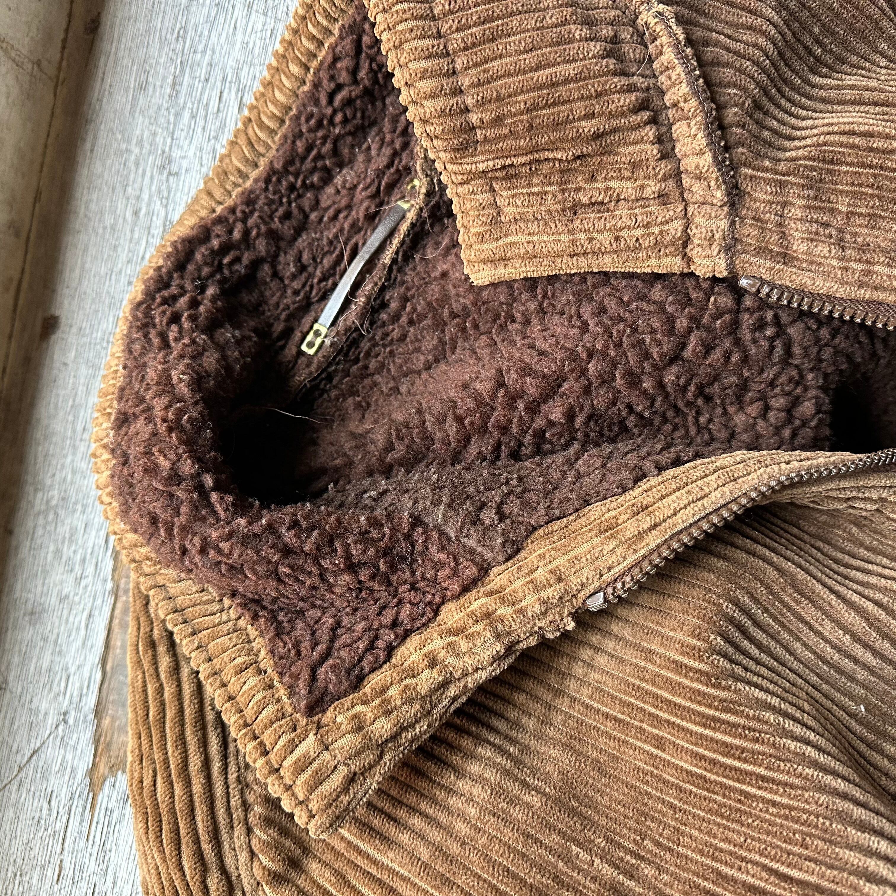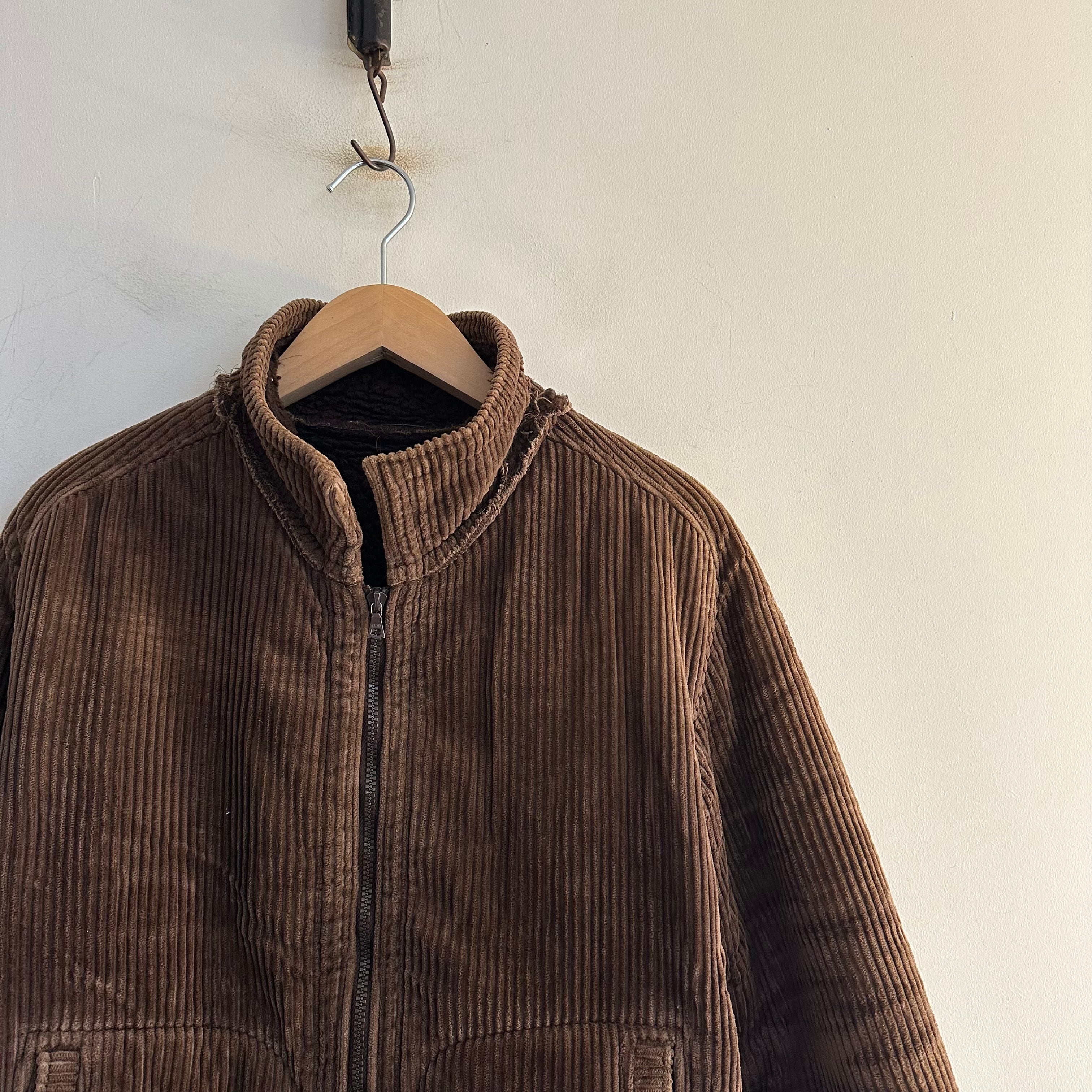 コーデュロイジャケットです。太畝のブラウンコーデュロイ。裏ボアびっしりで、程よくボリューム出して。襟周りに多少ダメージのあるコンディションです。お好きな方、いかがでしょうか。