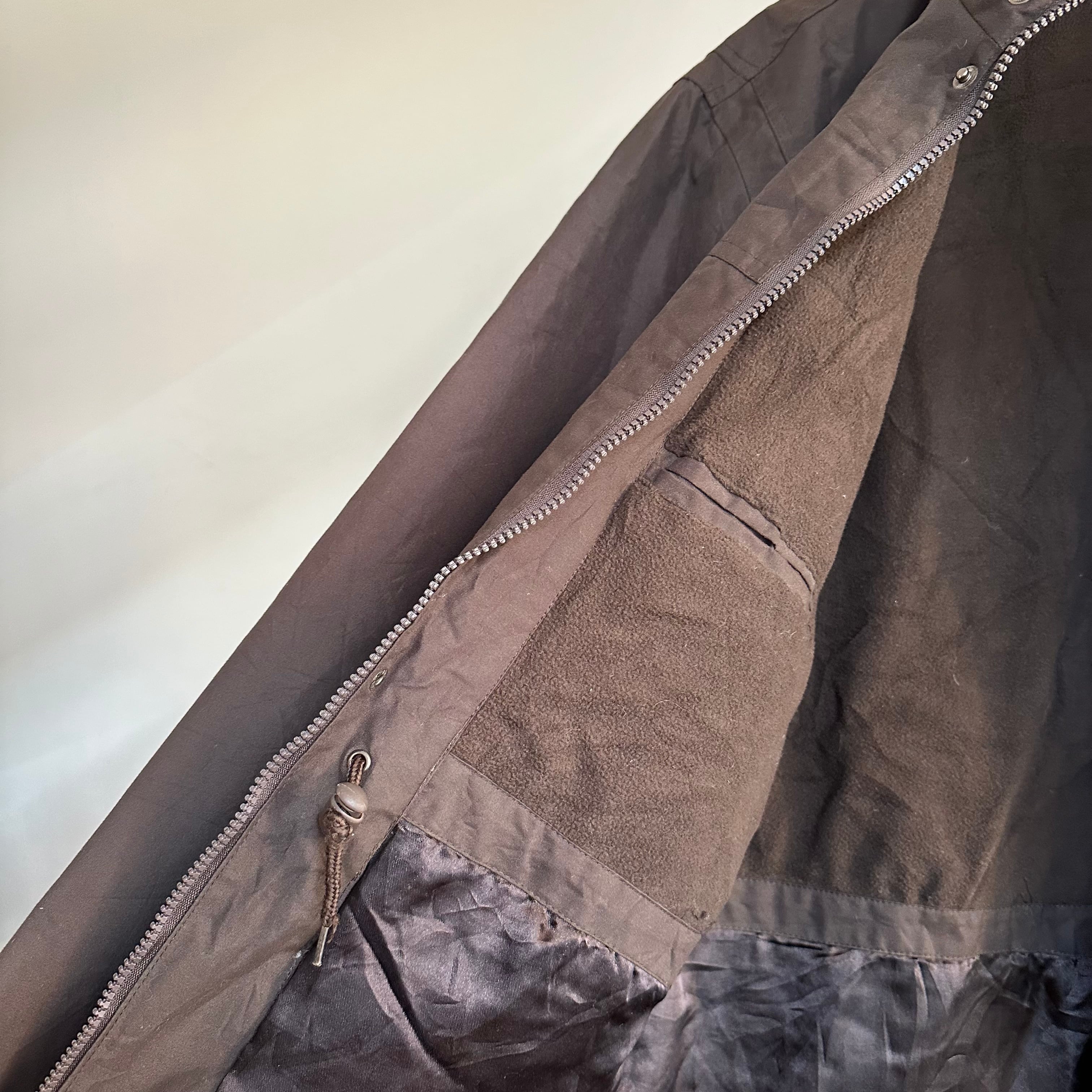 アウトドアジャケットです。裏フリース。首元スタンド。扱いやすいポケット周り。程よく幅があって、使い勝手良さそうな1枚。お好きな方、いかがでしょうか。