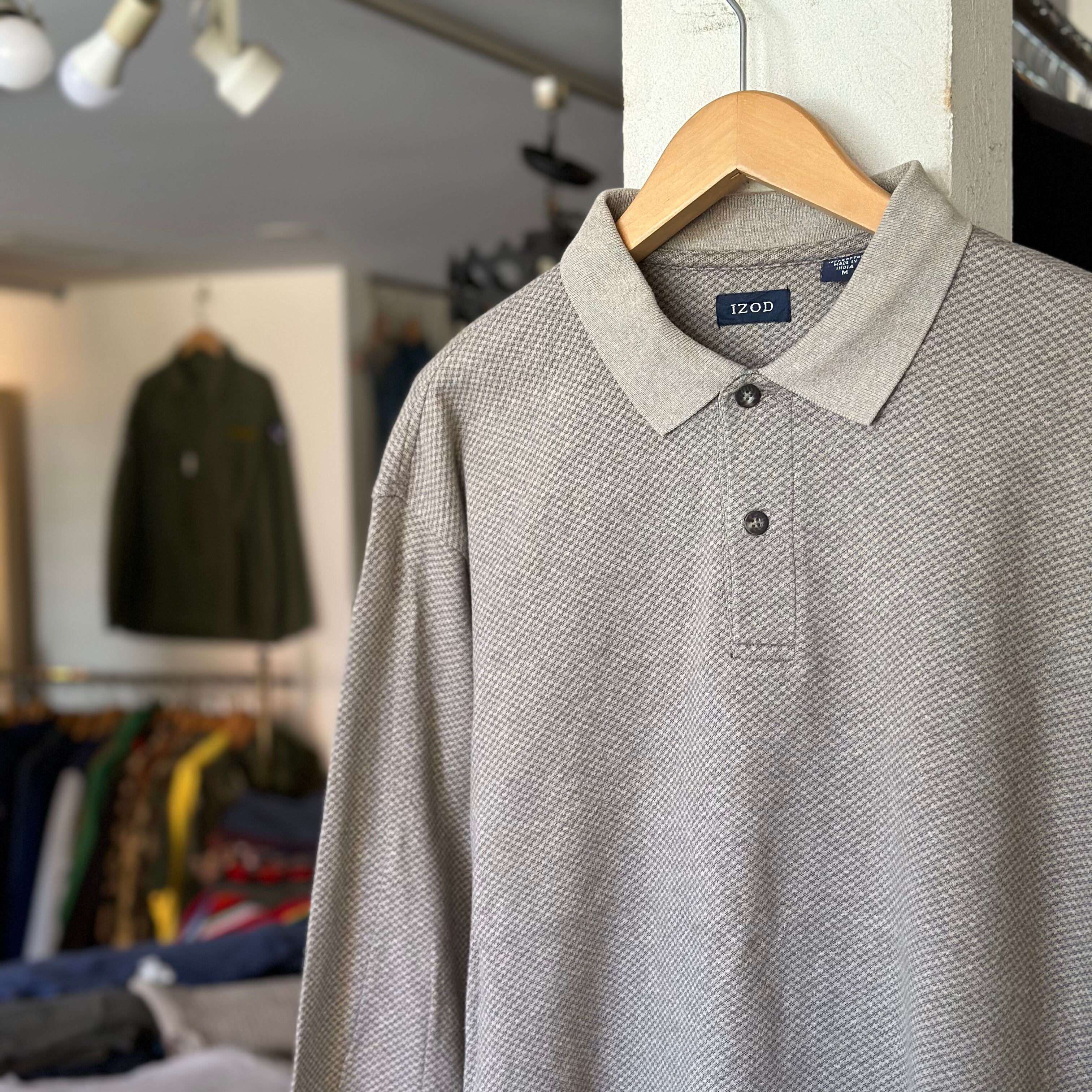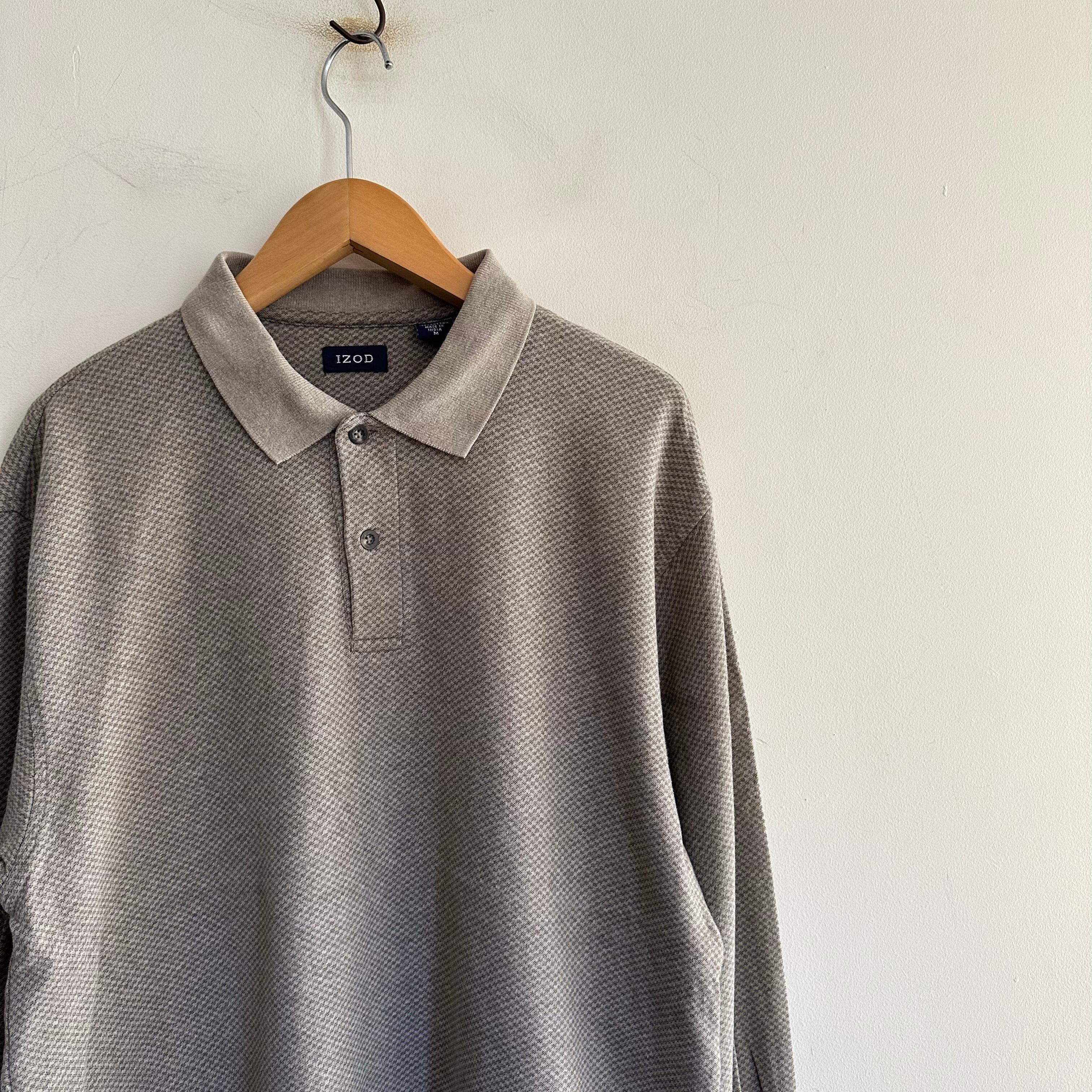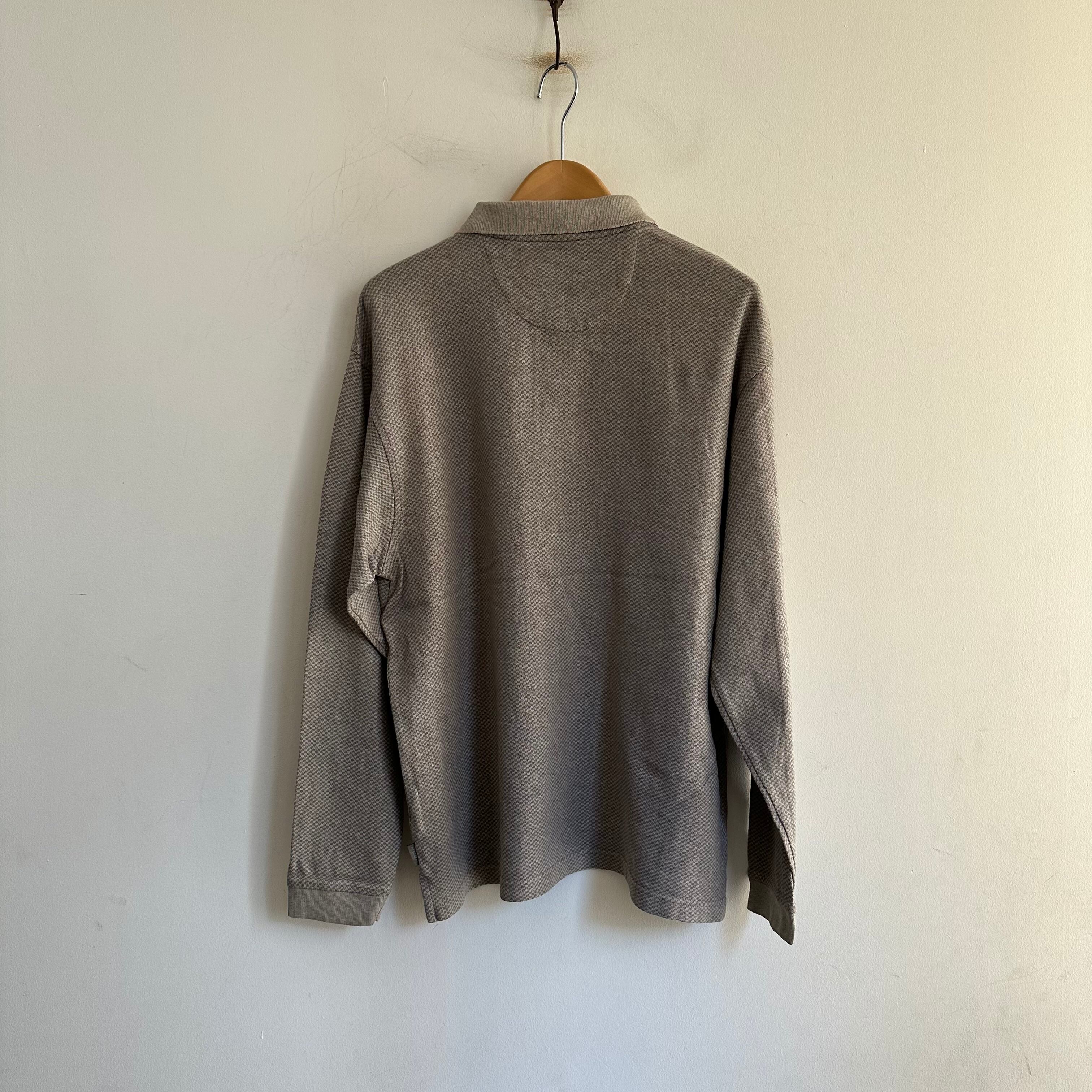 ポロシャツです。長袖。渋めで落ち着いた柄。身幅が広めの良い形。お好きな方、いかがでしょうか。
