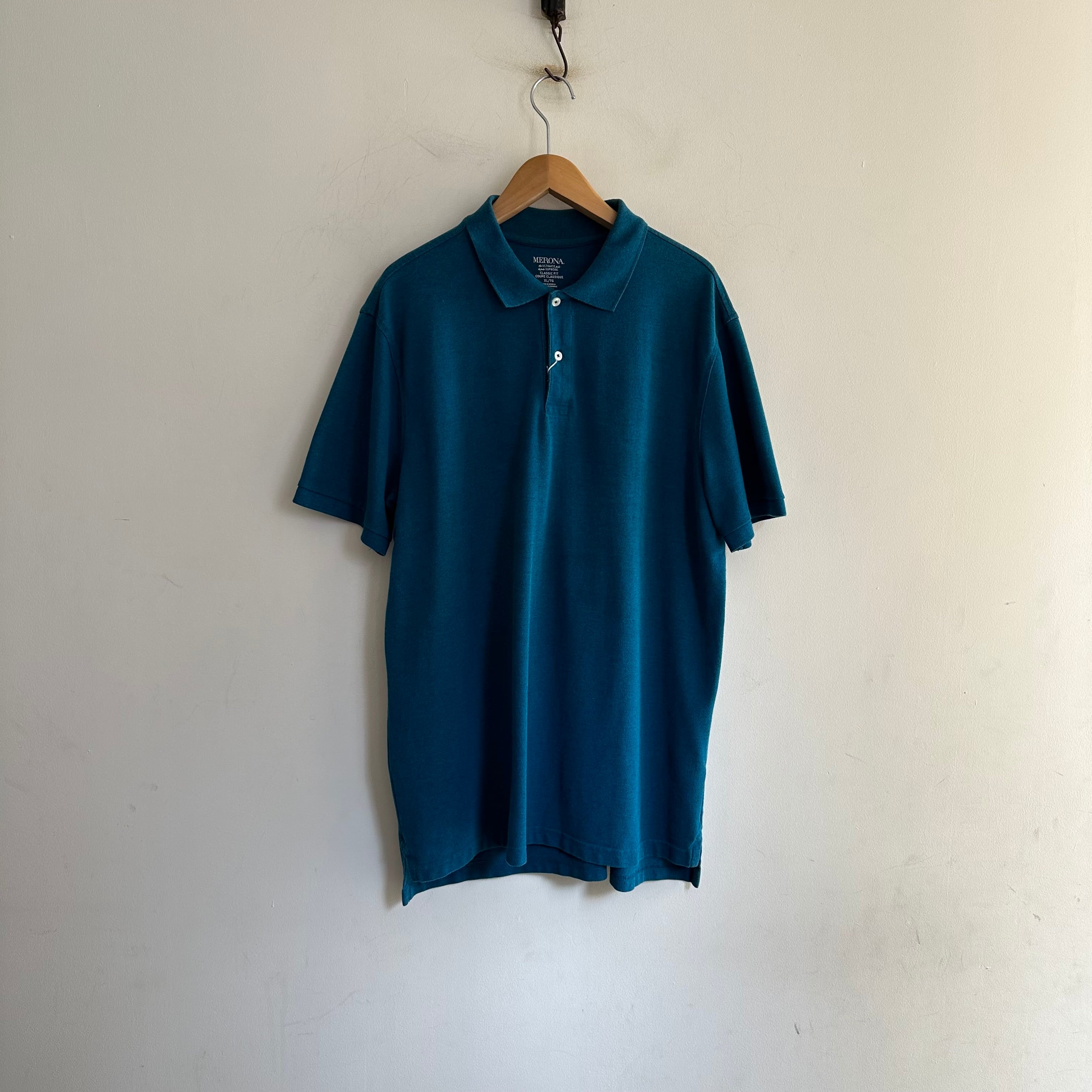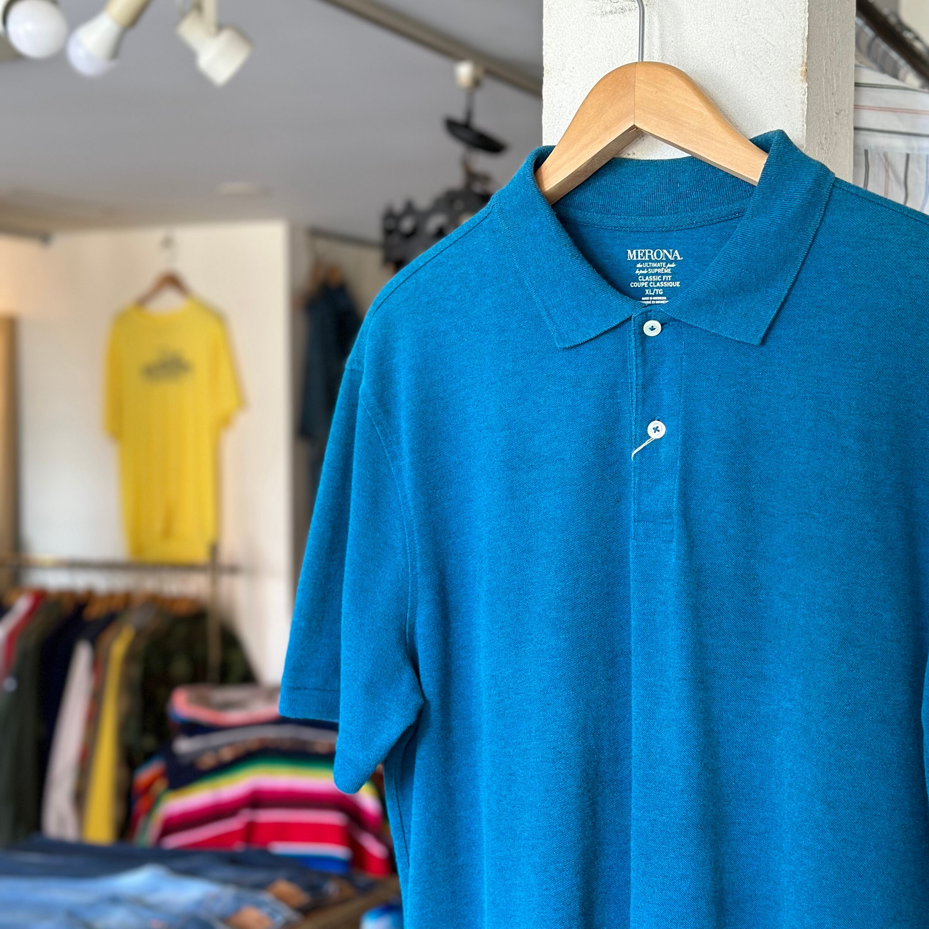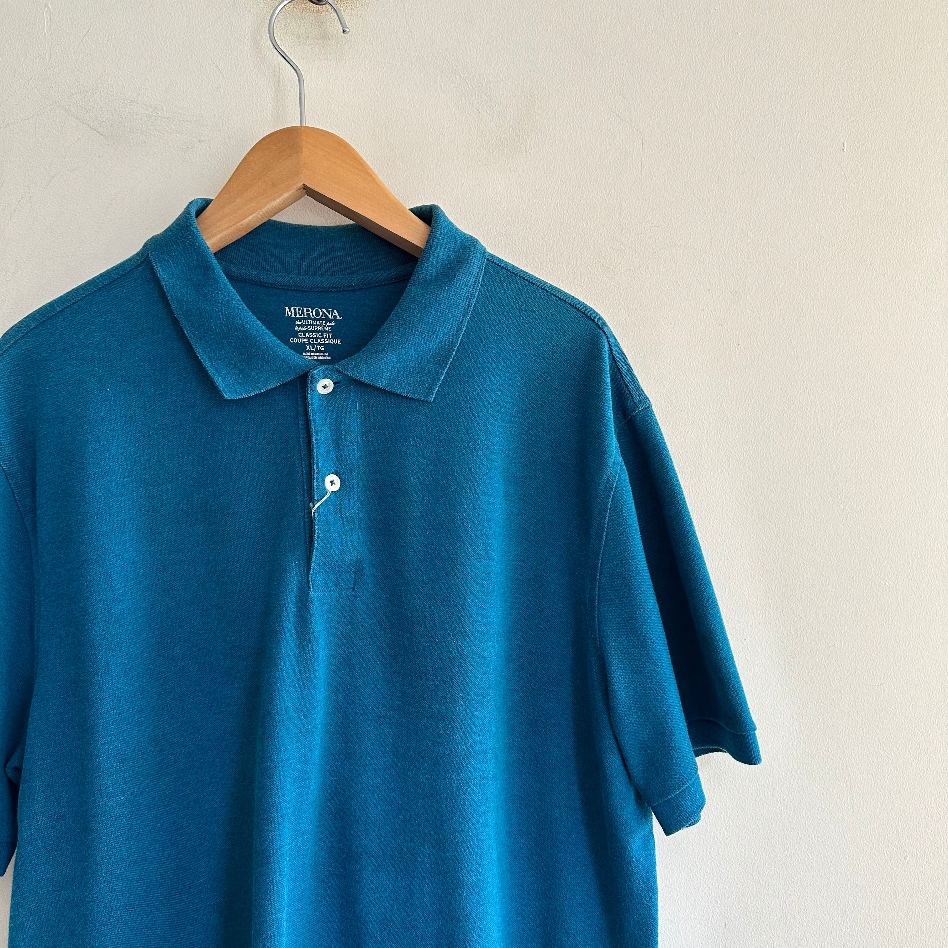 ポロシャツです。鮮やかなブルー無地。良いトーンです。ざっくり緩めのサイズ感で。お好きな方、いかがでしょうか。